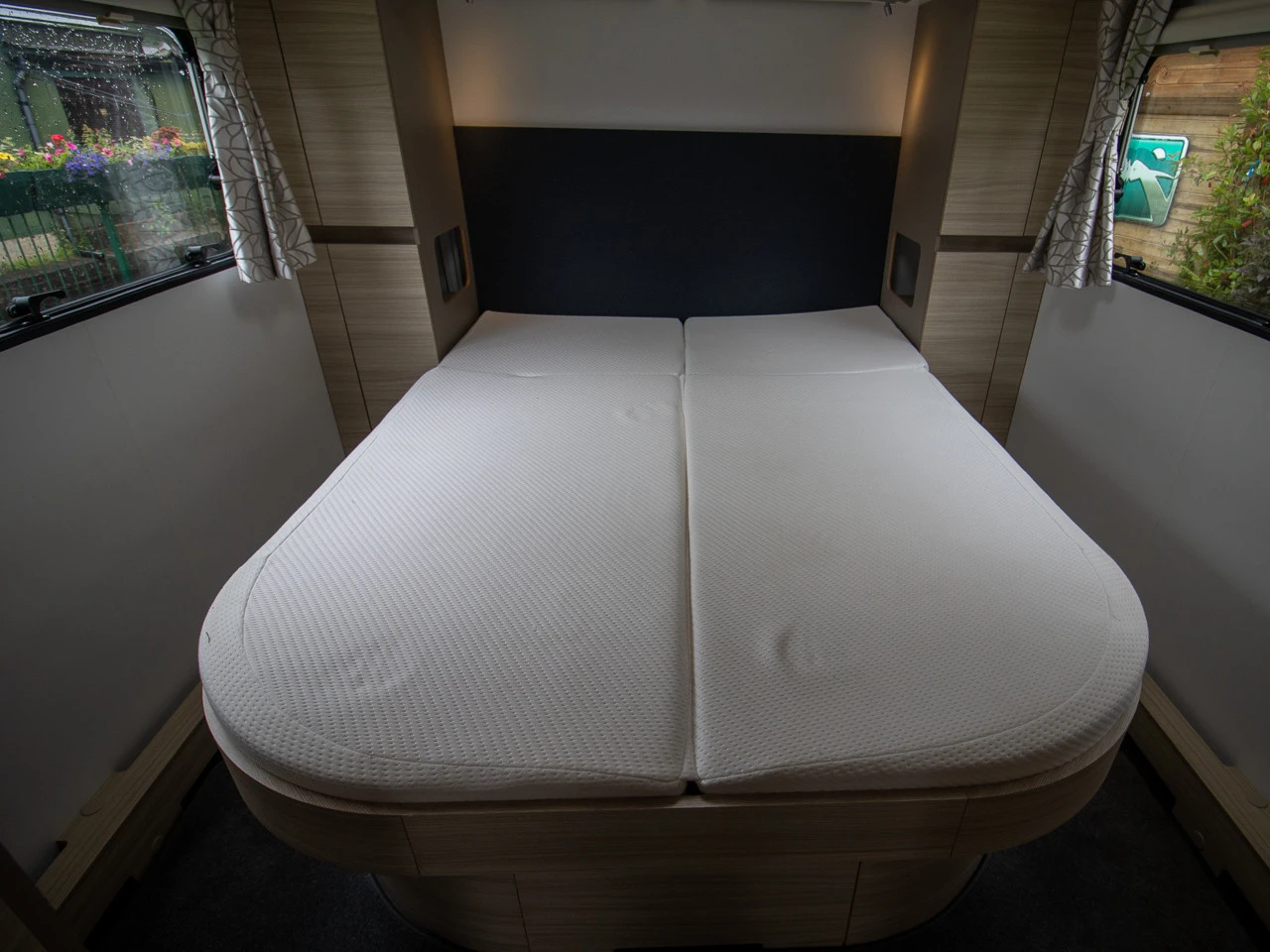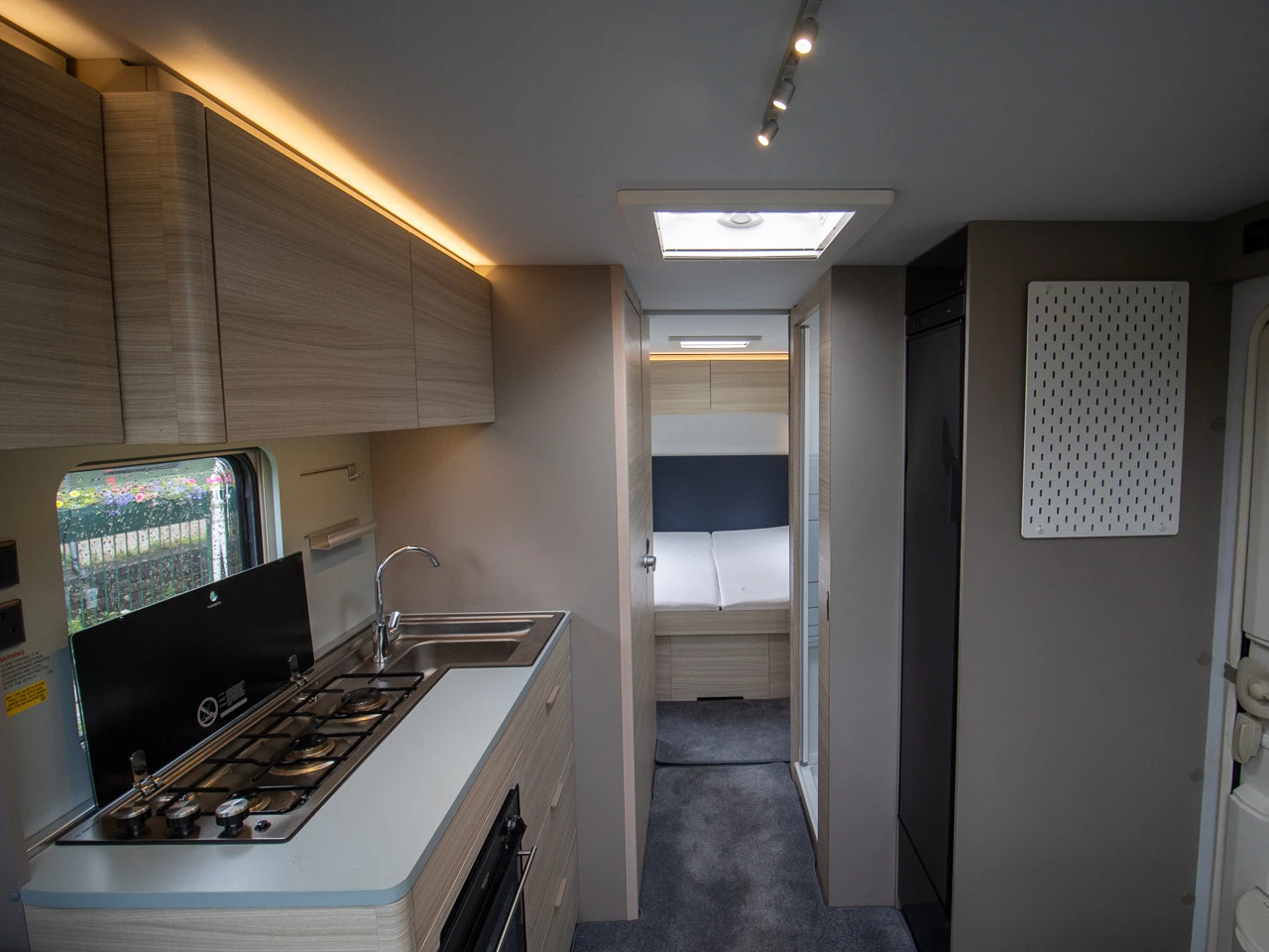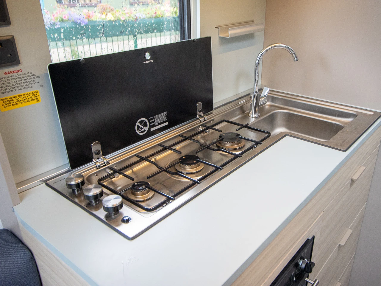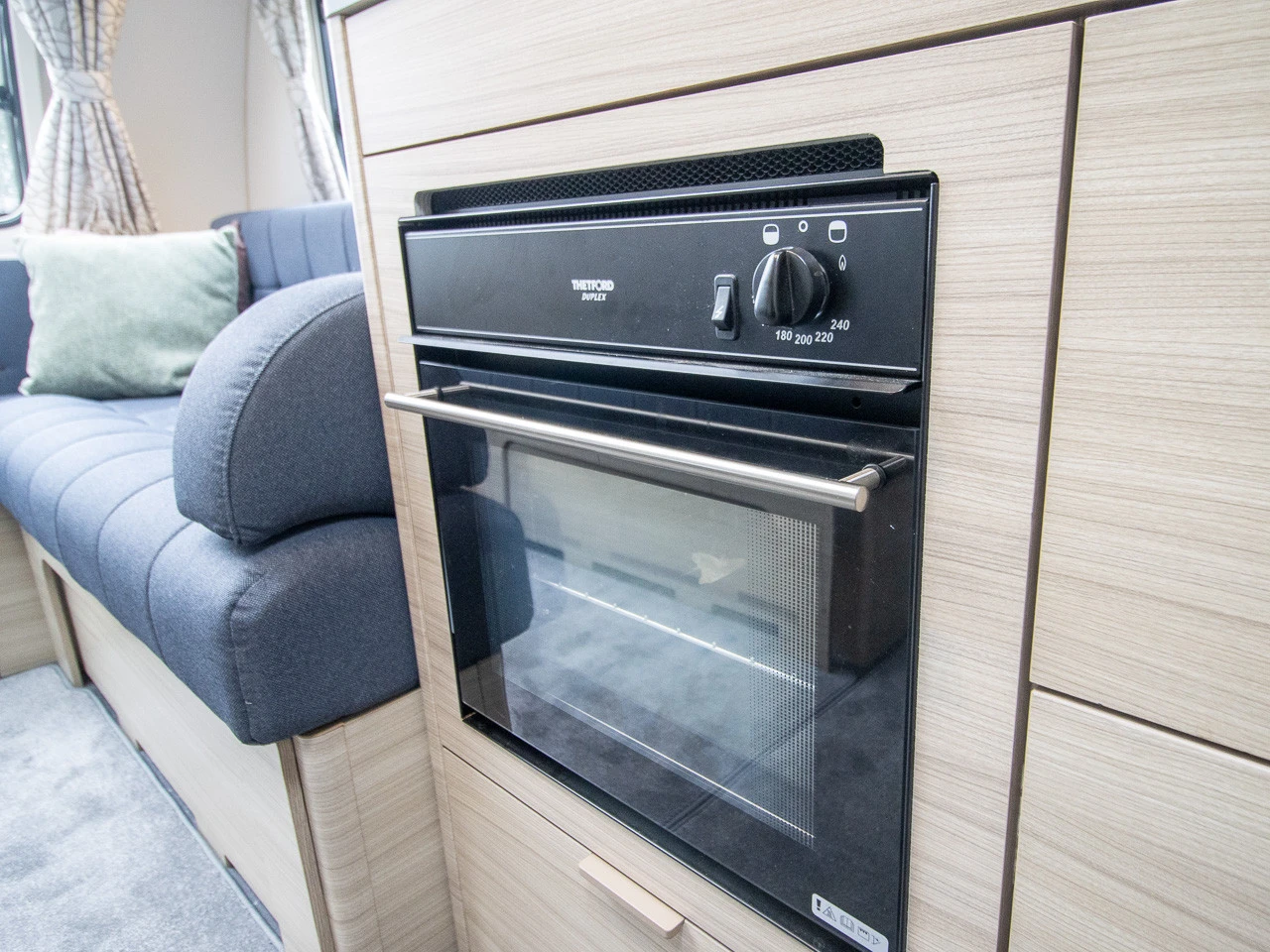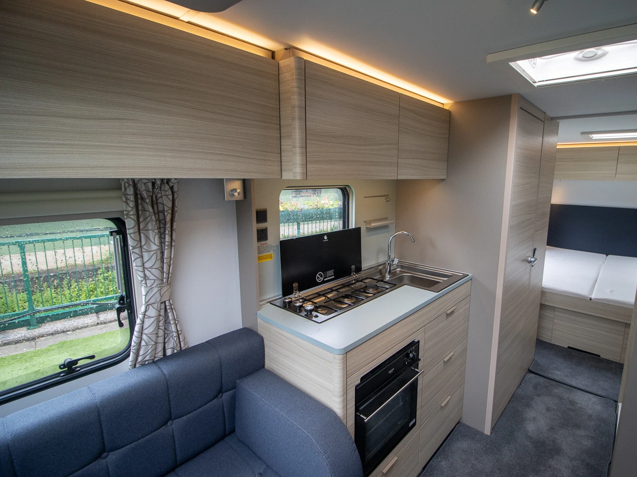 Key Features Well-Equipped Kitchen: The kitchen is fitted with a full oven, hob, grill, microwave, and fridge, offering everything you need to cook and dine comfortably while on the road
