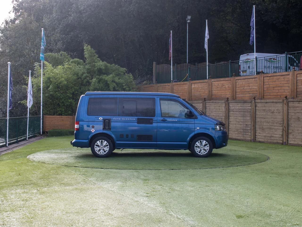 The Auto-Sleepers Trooper (2014) is a compact VW-based campervan that’s built for easy weekends away and longer road trips, with a smart elevating roof and a sociable end lounge setup. Powered by a 2.0-litre diesel (110BHP) with a manual gearbox, it’s a great fit if you want classic campervan practicality with everyday comforts like cab air con, cruise control and swivel cab seats.