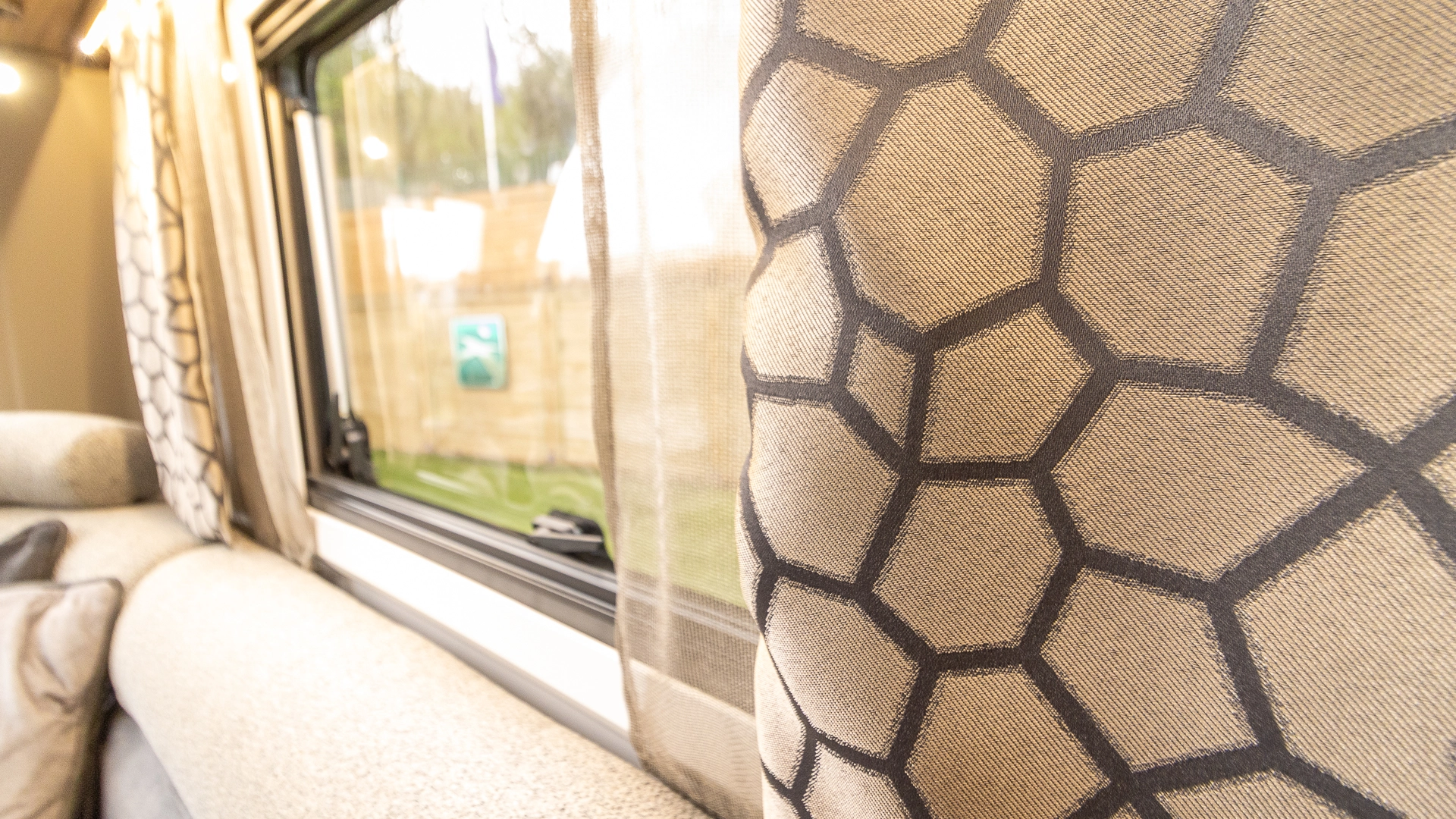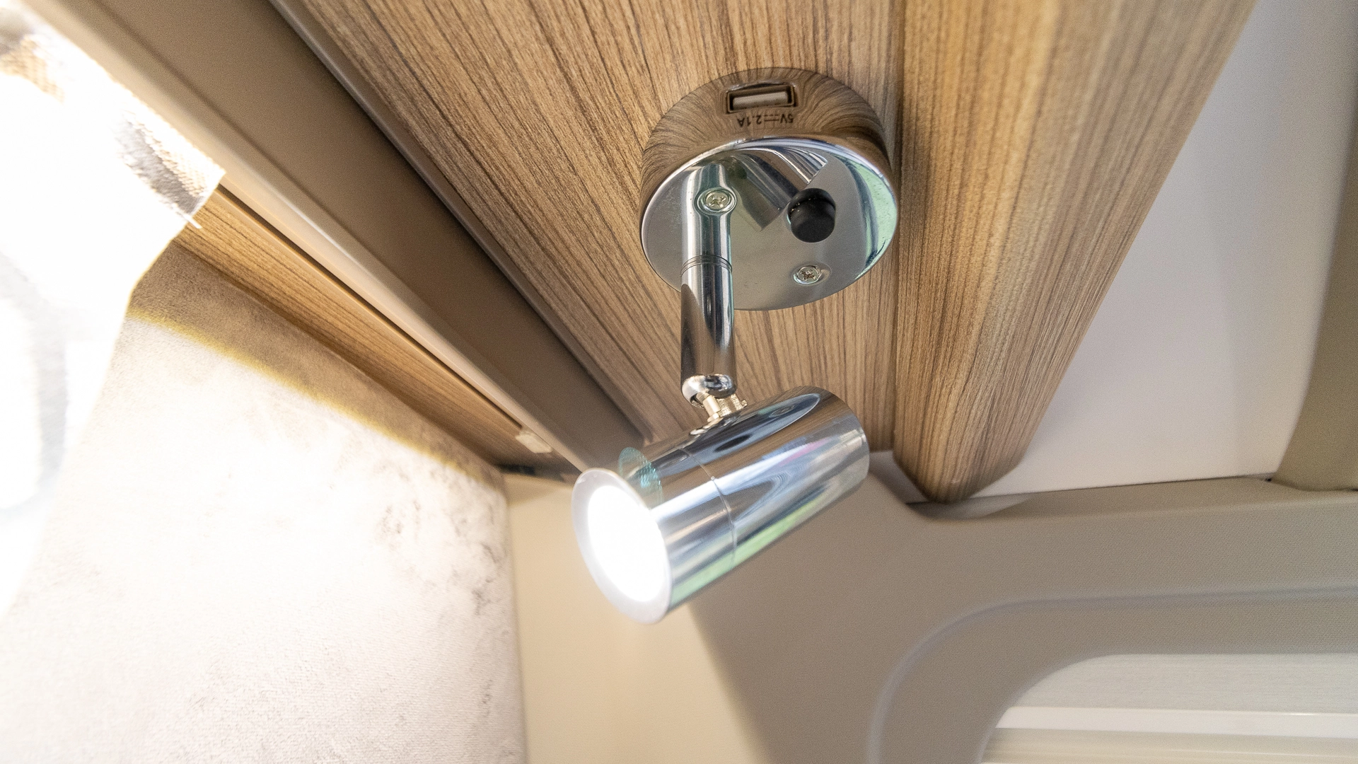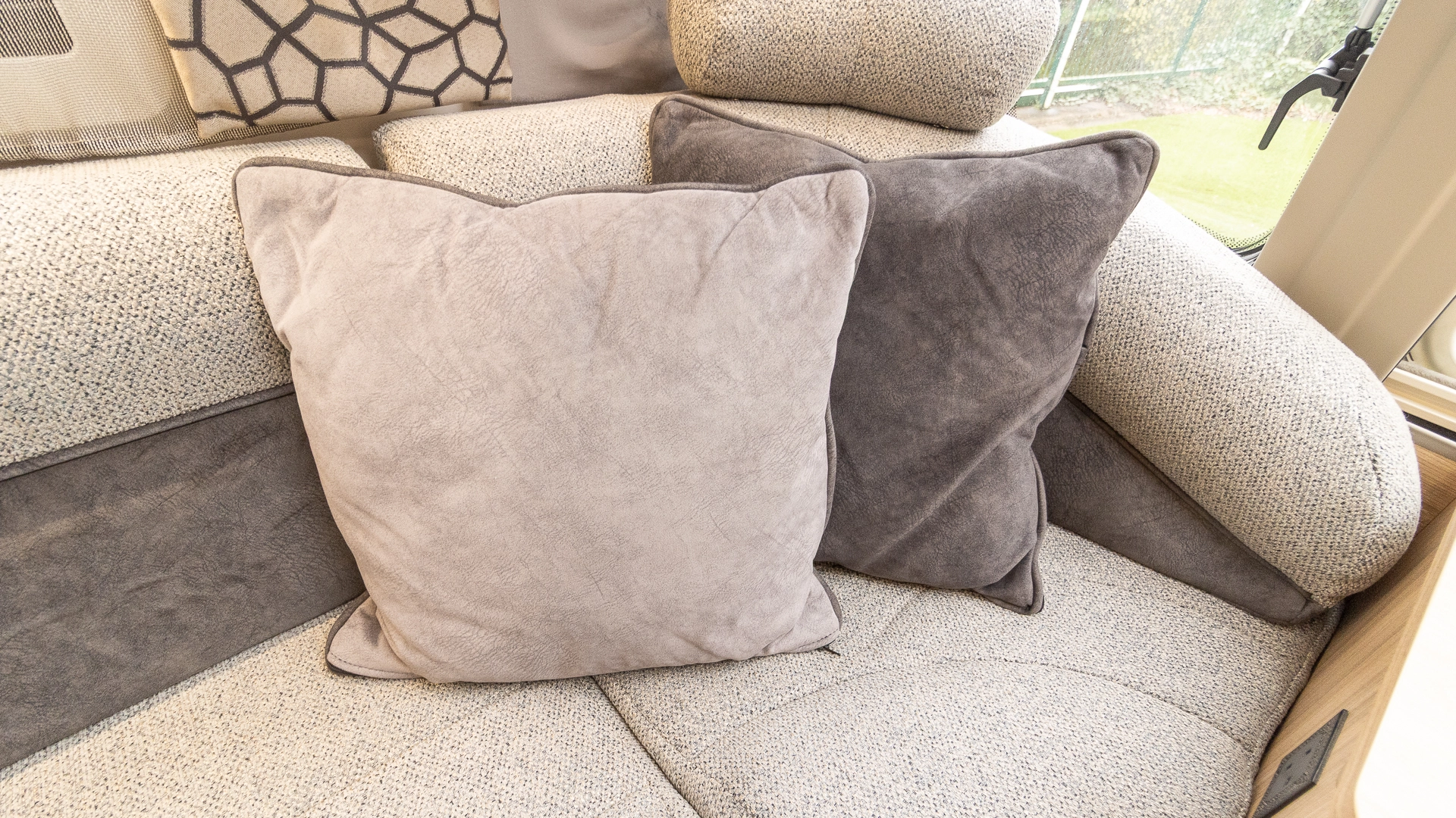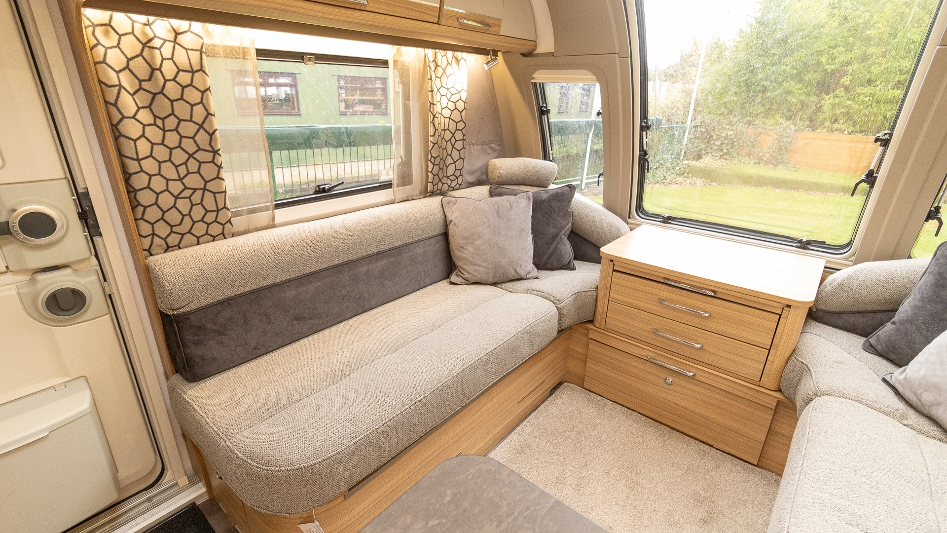 The front lounge features twin sofas that create a bright, sociable living area during the day, and can convert into a comfortable double bed at night.