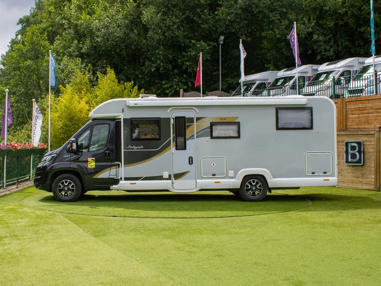 Bailey Autograph 79-4T 2020 - 4 Berth, 4 Seatbelts, Luxury Touring The 2020 Bailey Autograph 79-4T is a premium 4 berth motorhome with 4 travel seatbelts, offering a luxurious layout and top-quality features for comfortable and stylish adventures. Key Features: End Bedroom - A dedicated rear bedroom provides a private and relaxing retreat at the end of the day. Awning - A roll-out awning creates an extended outdoor living space, perfect for relaxing or dining. TV Aerial - Stay entertained on the go with a fitted TV aerial for reliable reception. Solar Panels - Roof-mounted solar panels provide off-grid power, ideal for extended stays. Fridge & Freezer - Keep your food fresh and well-stocked with a spacious fridge and separate freezer compartments. Oven & Microwave - Fully equipped kitchen with oven and microwave for convenient meal preparation wherever you are. 4 Berth, 4 Seatbelts - Designed for couples or small families, with safe travel seating and comfortable sleeping arrangements. 12-Month Warranty - Supplied with a 12-month warranty for complete peace of mind. Finance Available - Flexible finance options available, subject to status. The Bailey Autograph 79-4T 2020 combines style, practicality, and comfort, making it the ideal motorhome for both weekend getaways and extended touring adventures.