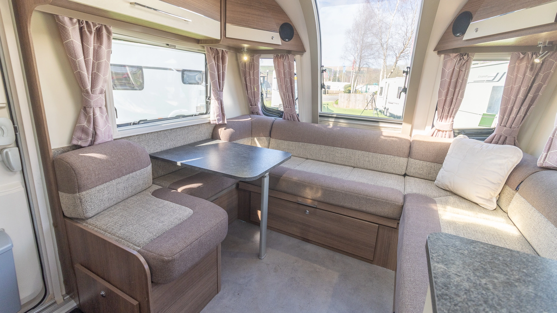 The spacious L‑shaped lounge provides a large, sociable living area during the day, and at night, converts into additional sleeping space when needed.