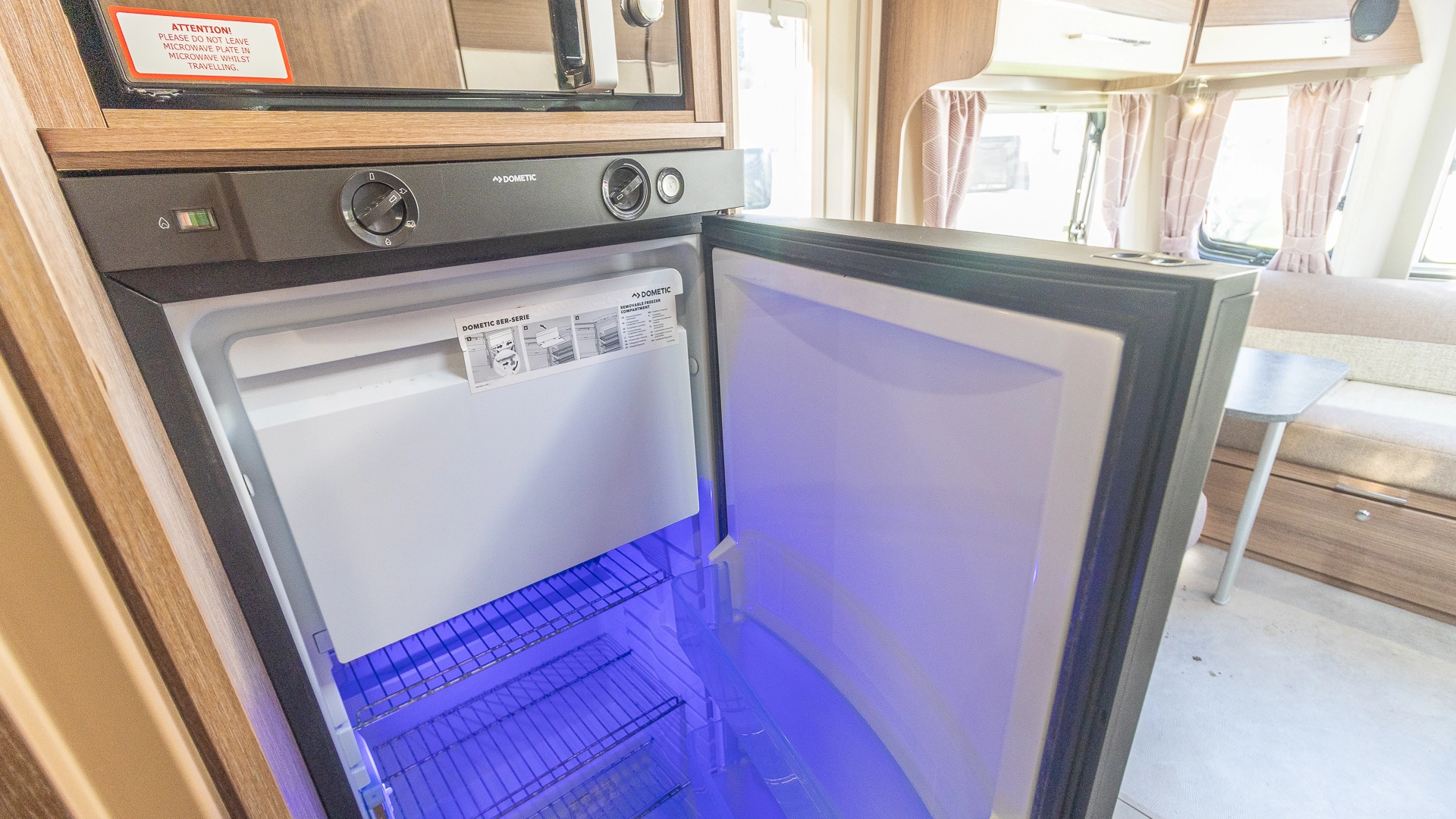 The kitchen comes with a microwave, hob, oven and grill, fridge‑freezer and plenty of worktop space, allowing you to prepare full meals on site.