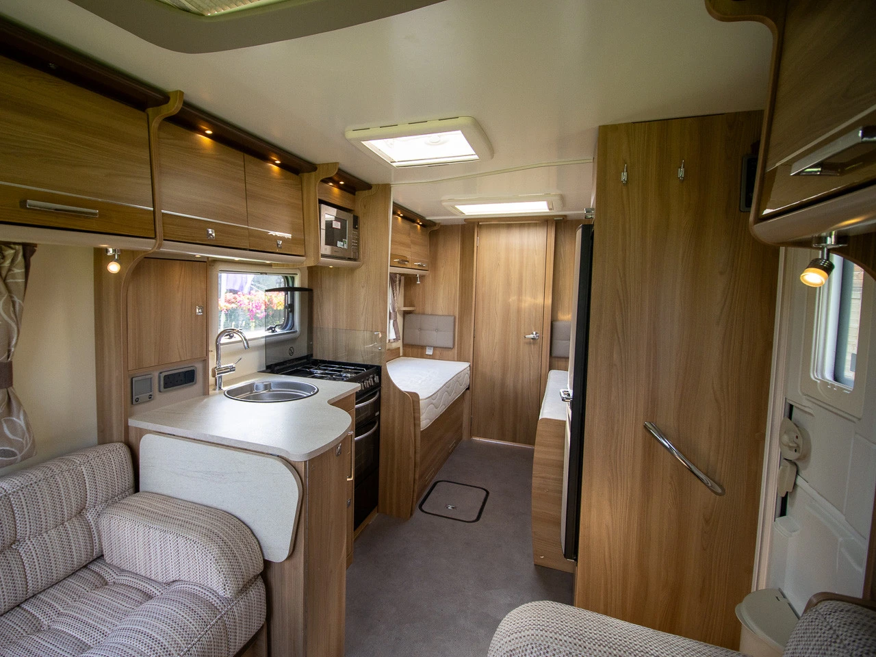 Parallel-seating bed: The front lounge features twin sofas that provide a comfortable daytime living and lounge area. At night they convert into a double bed, giving flexibility without compromising on daytime comfort.