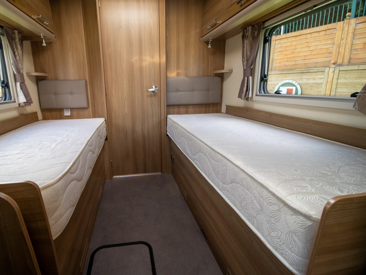 Twin single beds: At the rear, the Cadiz offers two fixed single beds which are perfect for no nightly setup and convenience.