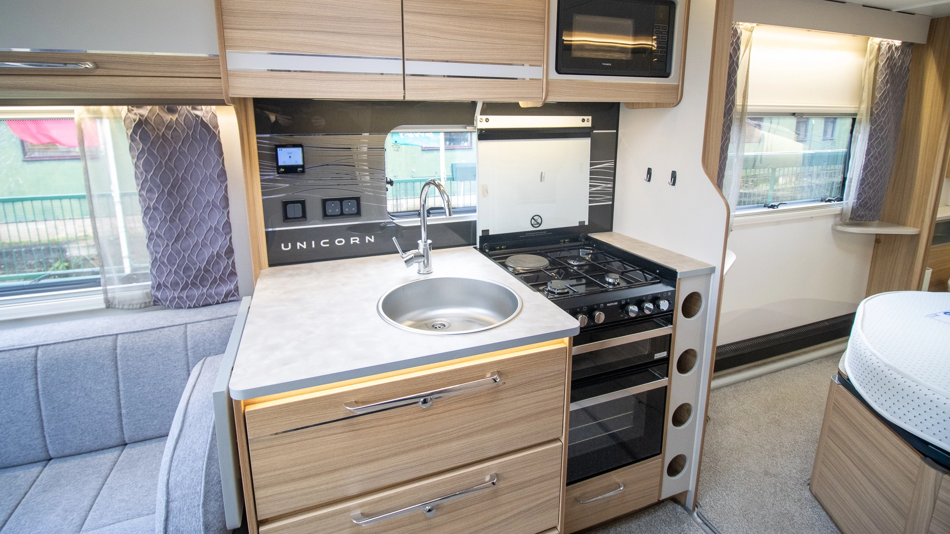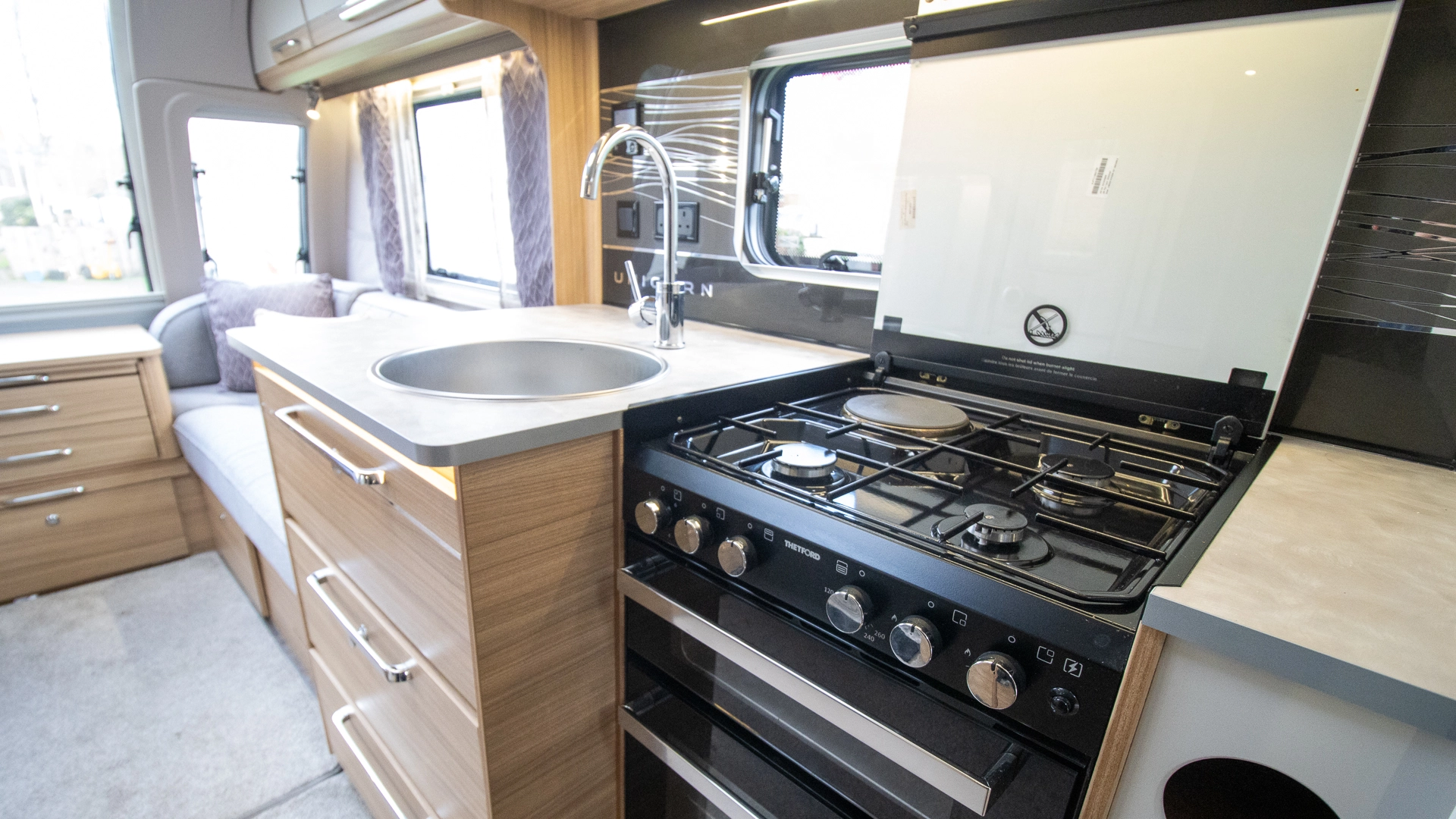 The Alde-wet central heating system delivers consistent and efficient warmth throughout the interior, perfect for extending your touring season into colder months.