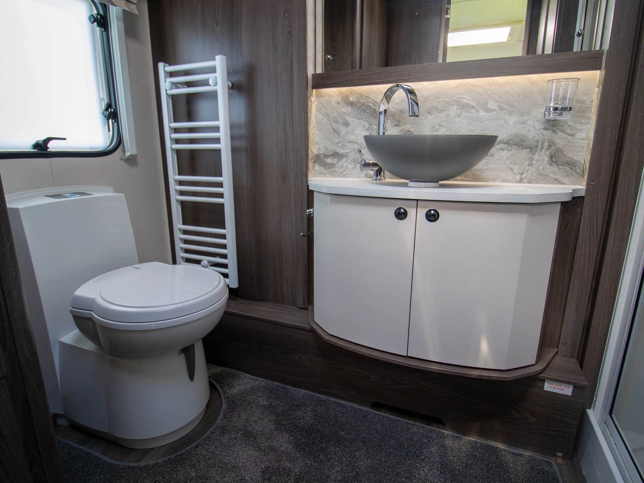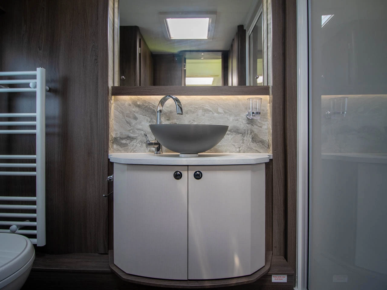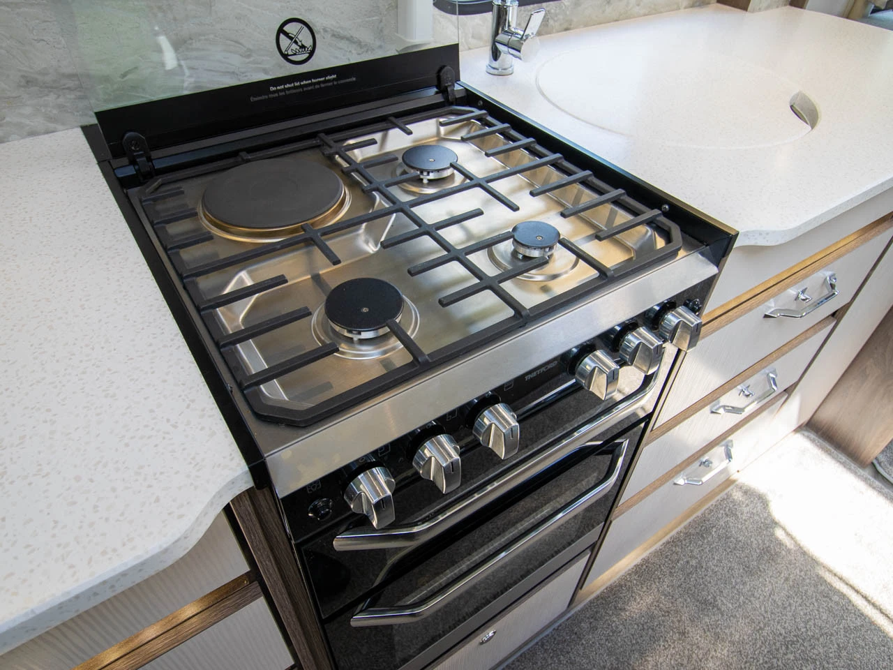 Fitted above the cooking area, the extractor fan efficiently removes steam and cooking odours from the interior, helping to maintain a fresh and comfortable atmosphere inside the caravan.