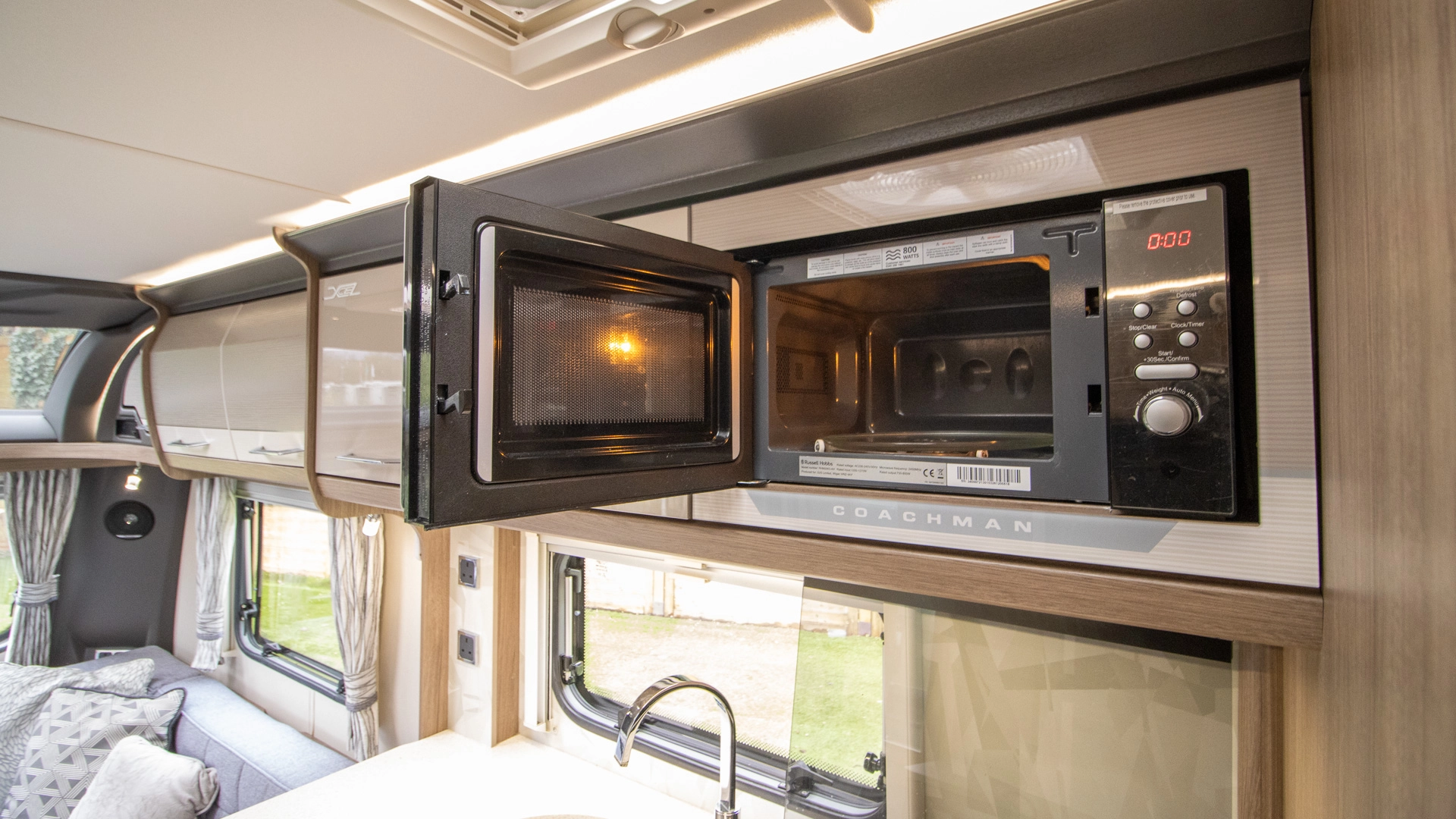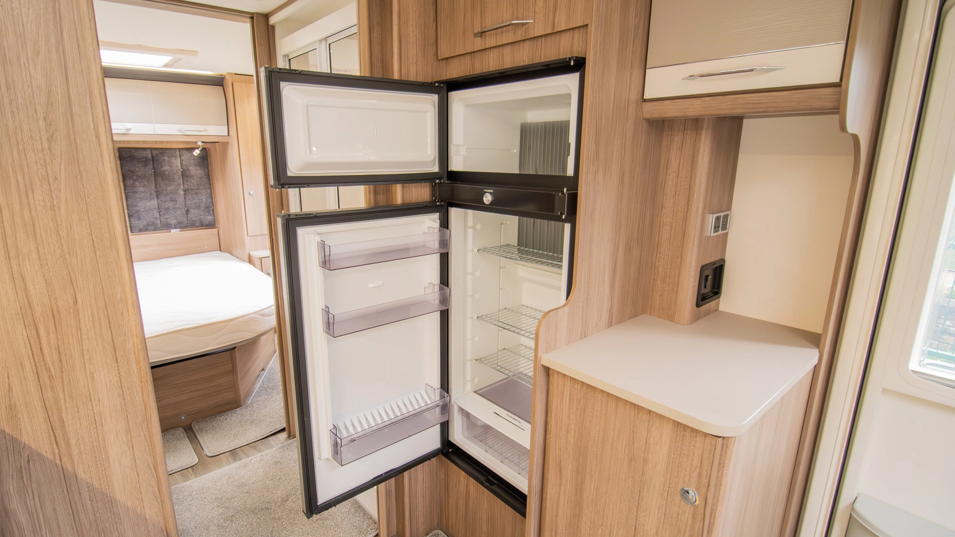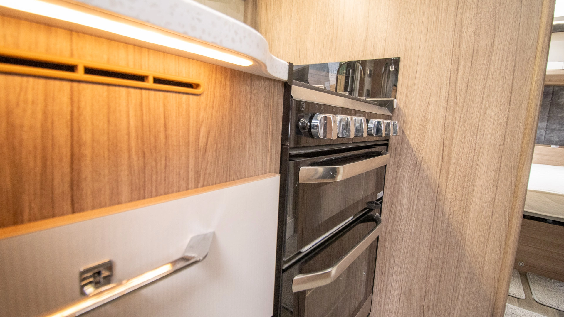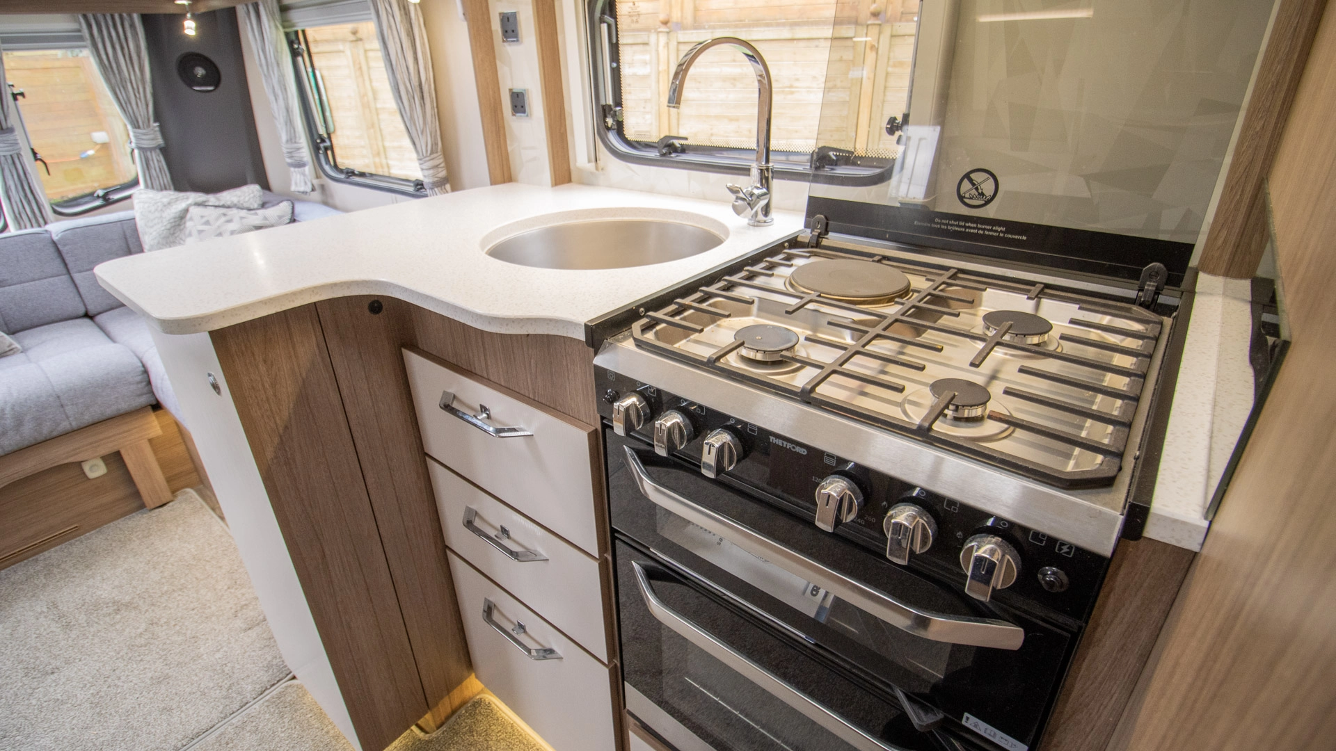 Fitted above the cooking area, the extractor fan maintains the caravan’s fresh atmosphere by efficiently removing cooking odours from the kitchen.