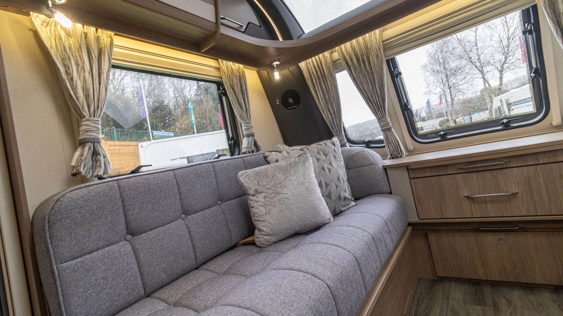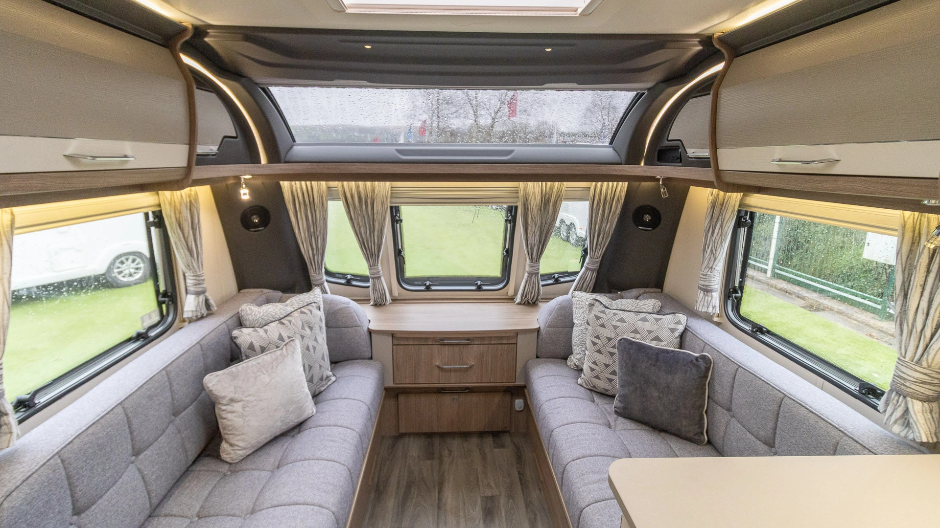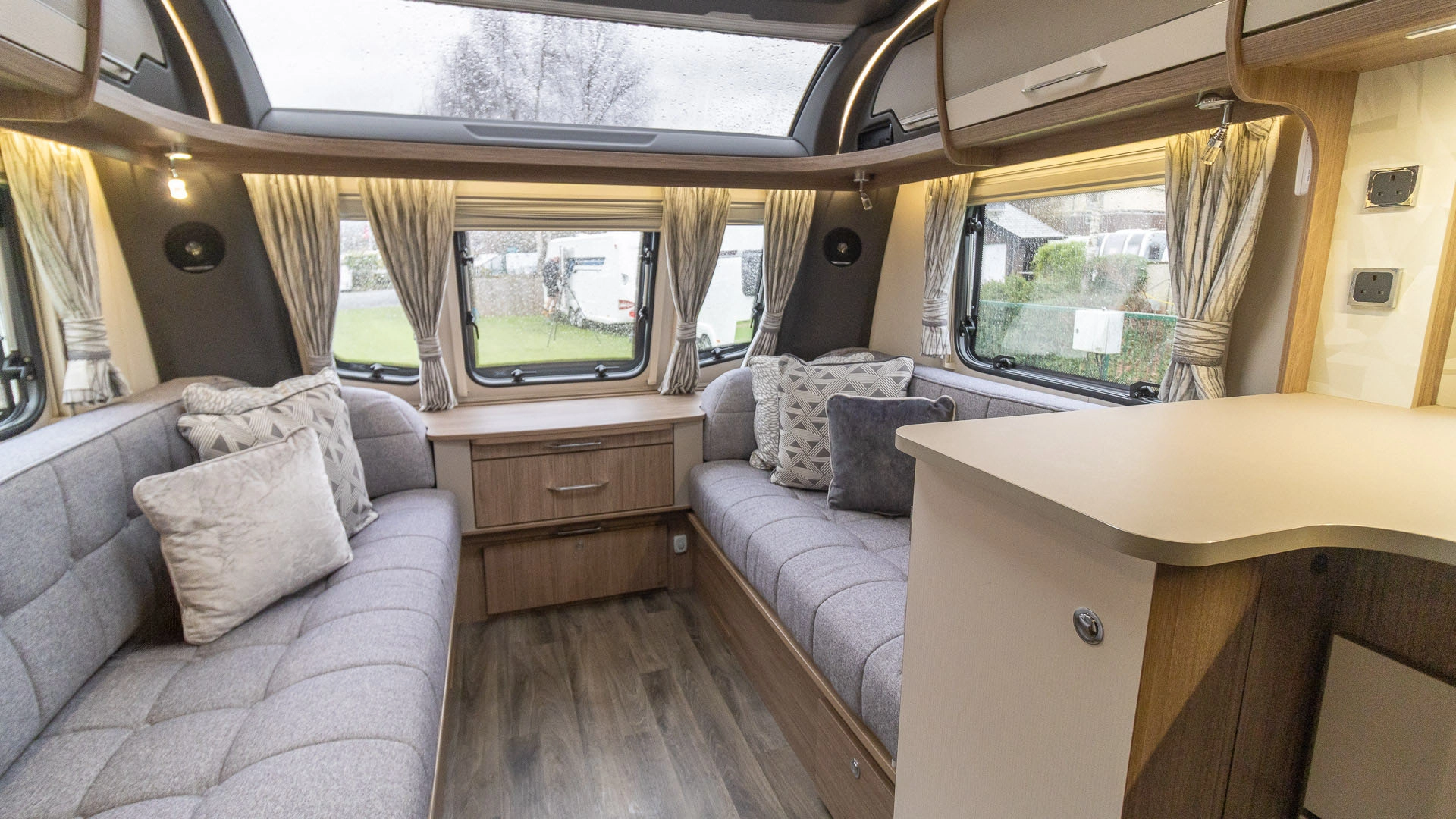 Parallel Seating Bed The front lounge features twin sofas that create a bright, sociable living area during the day, and can convert into a comfortable double bed at night