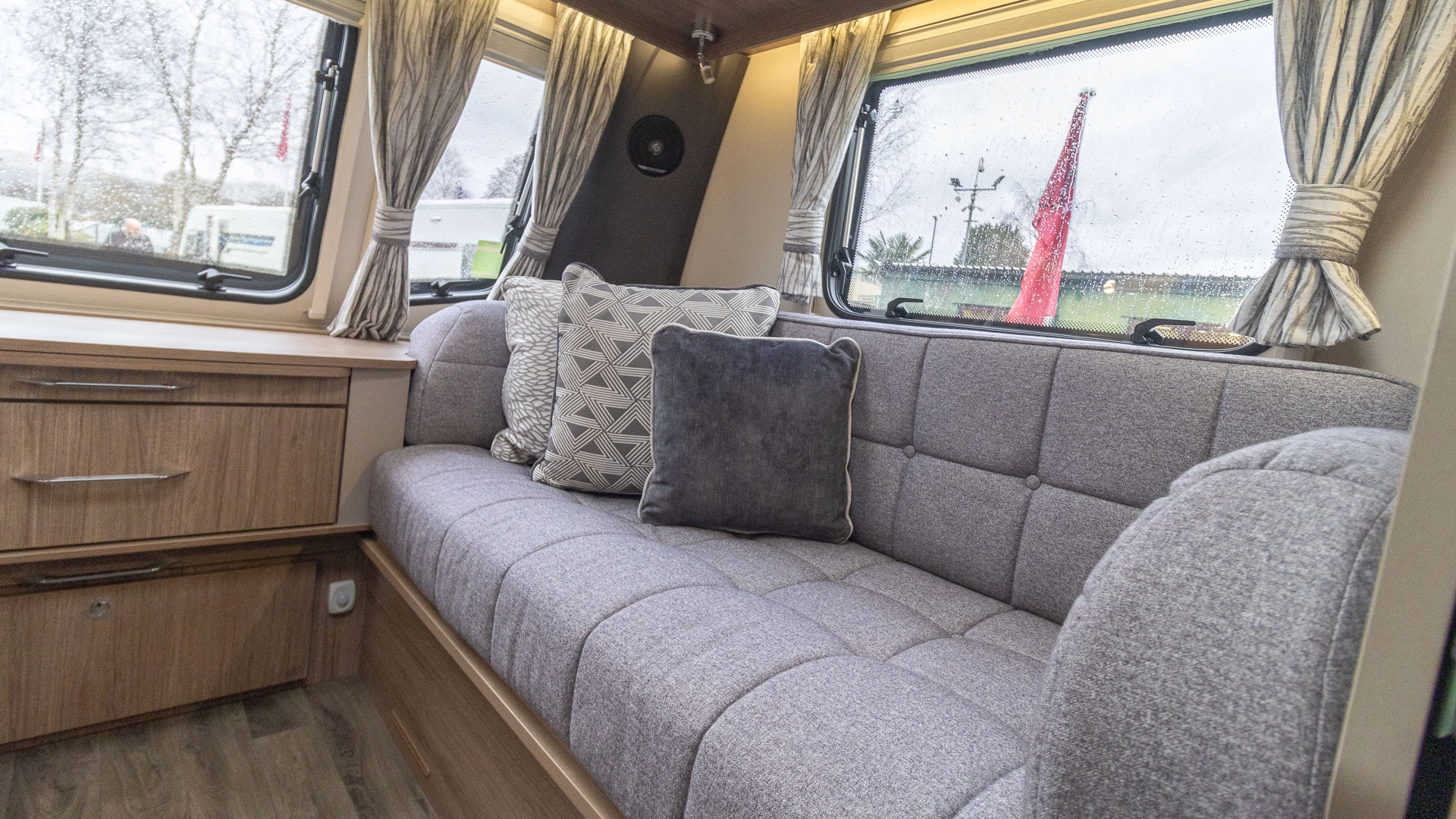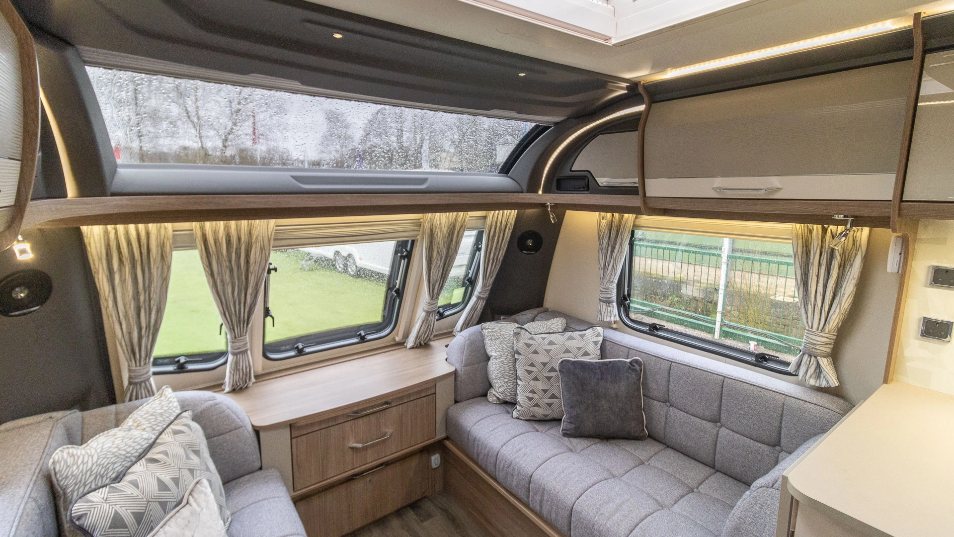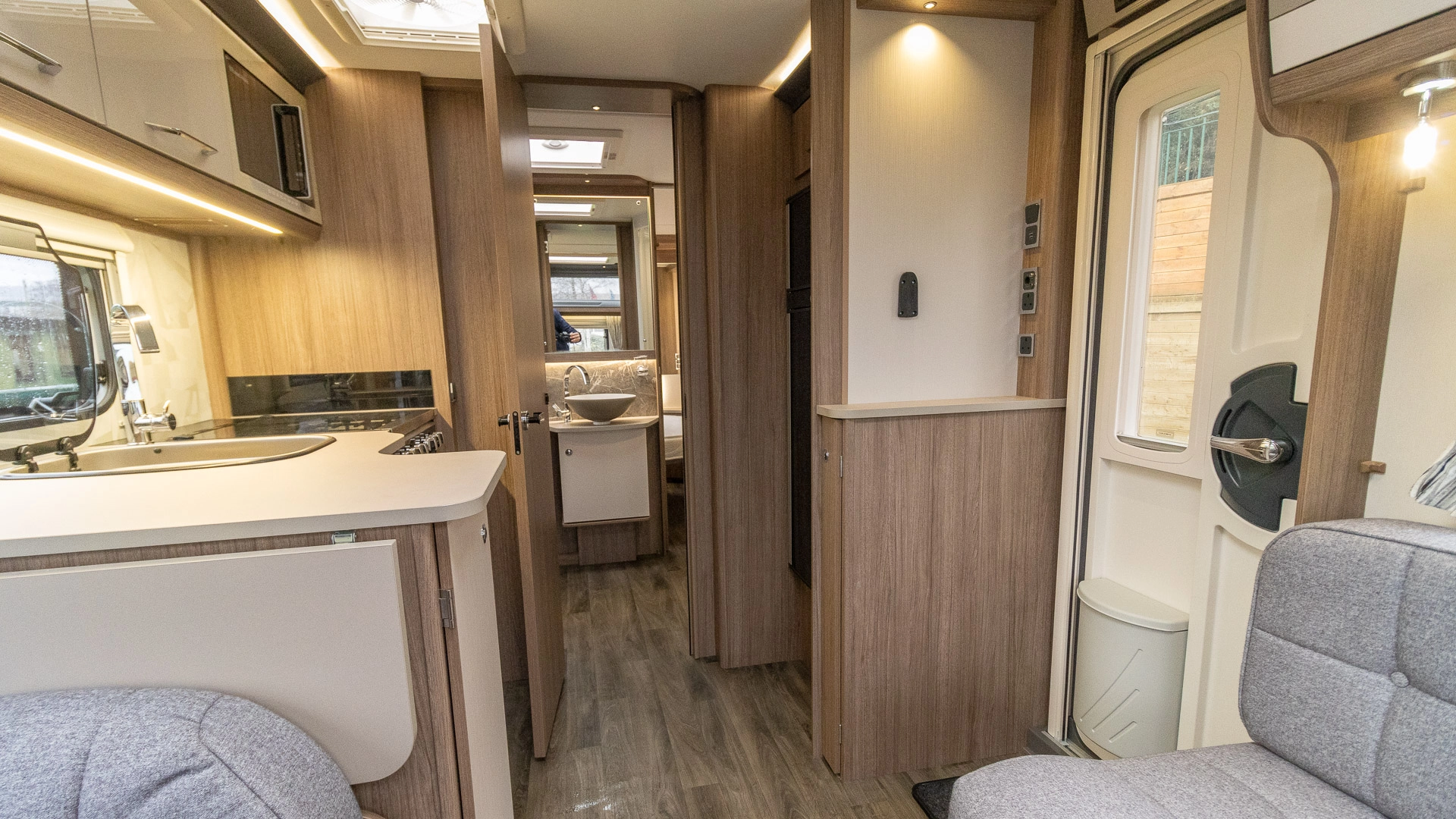 Parallel Seating Bed The front lounge features twin sofas that create a bright, sociable living area during the day, and can convert into a comfortable double bed at night