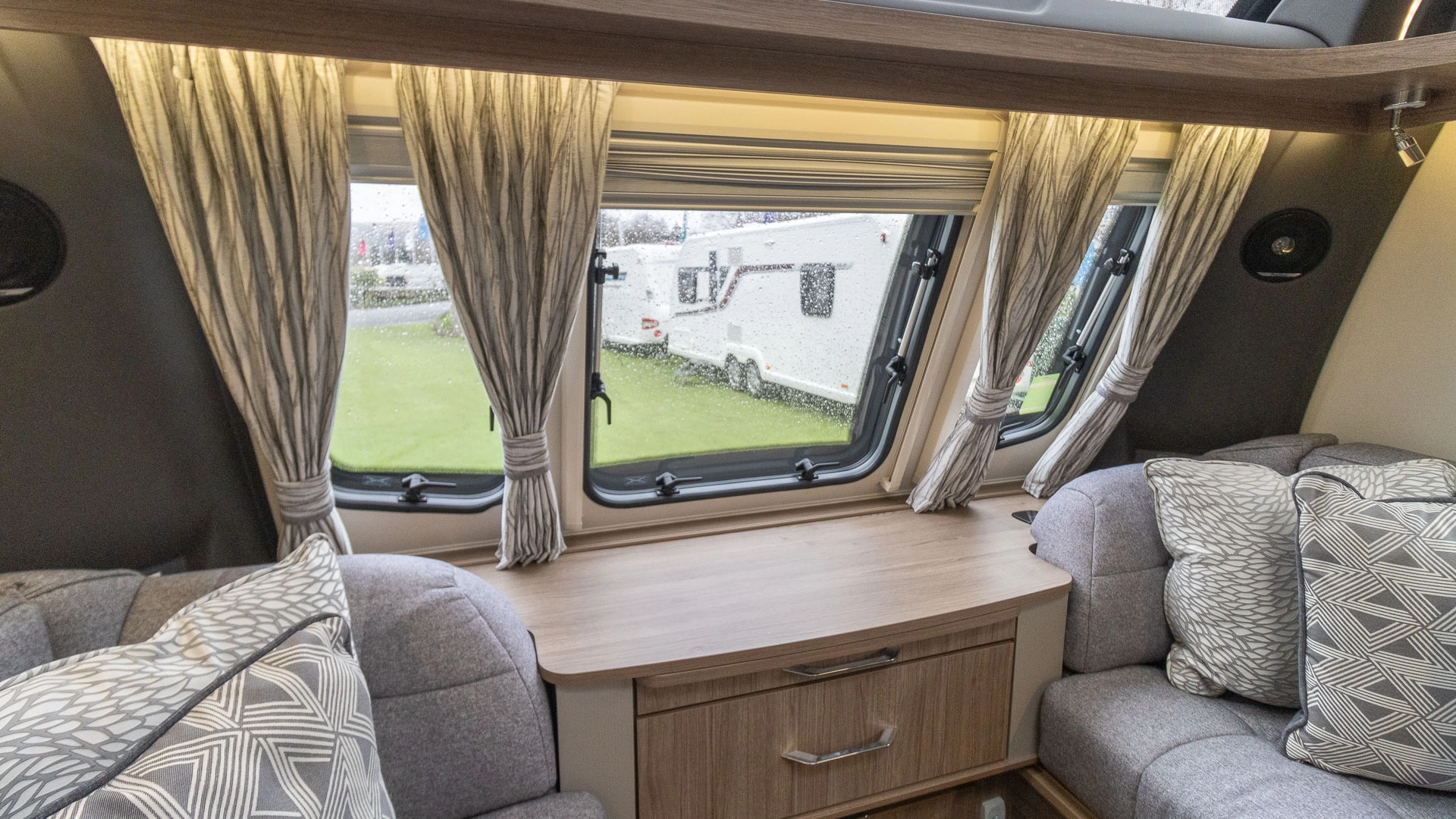 Self-levelling legs At the touch of a button, the caravan automatically levels itself, saving valuable setup time on site and ensuring a stable, solid feel inside, even on uneven pitches