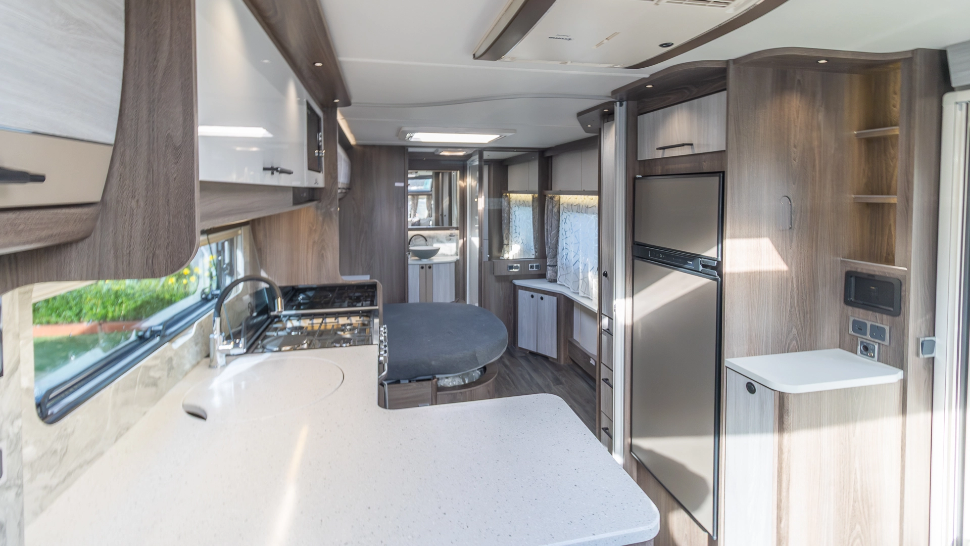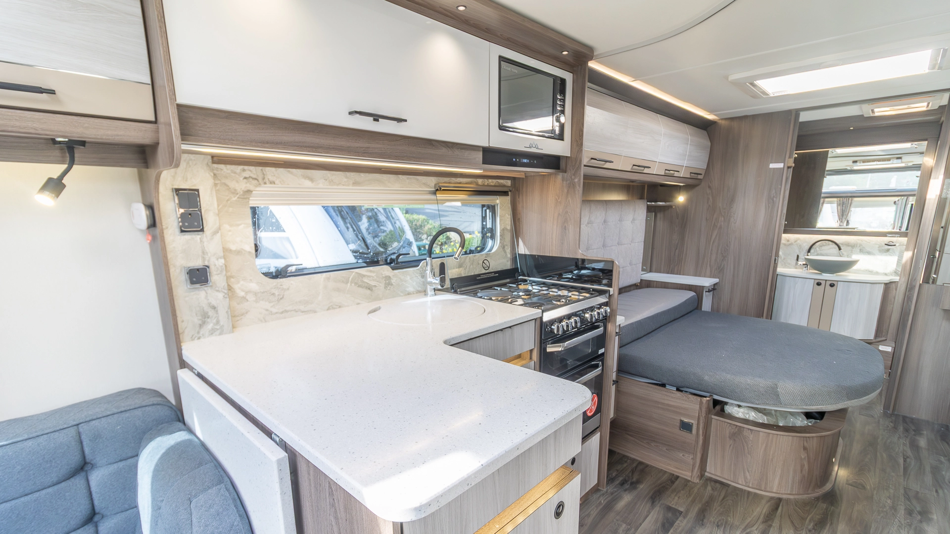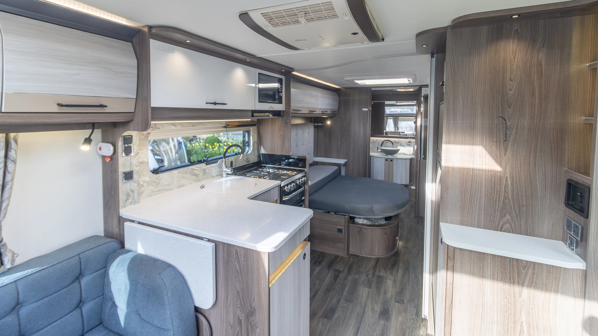 At the touch of a button, the caravan automatically levels itself, saving valuable setup time on site and ensuring a stable, solid feel inside, even on uneven pitches.