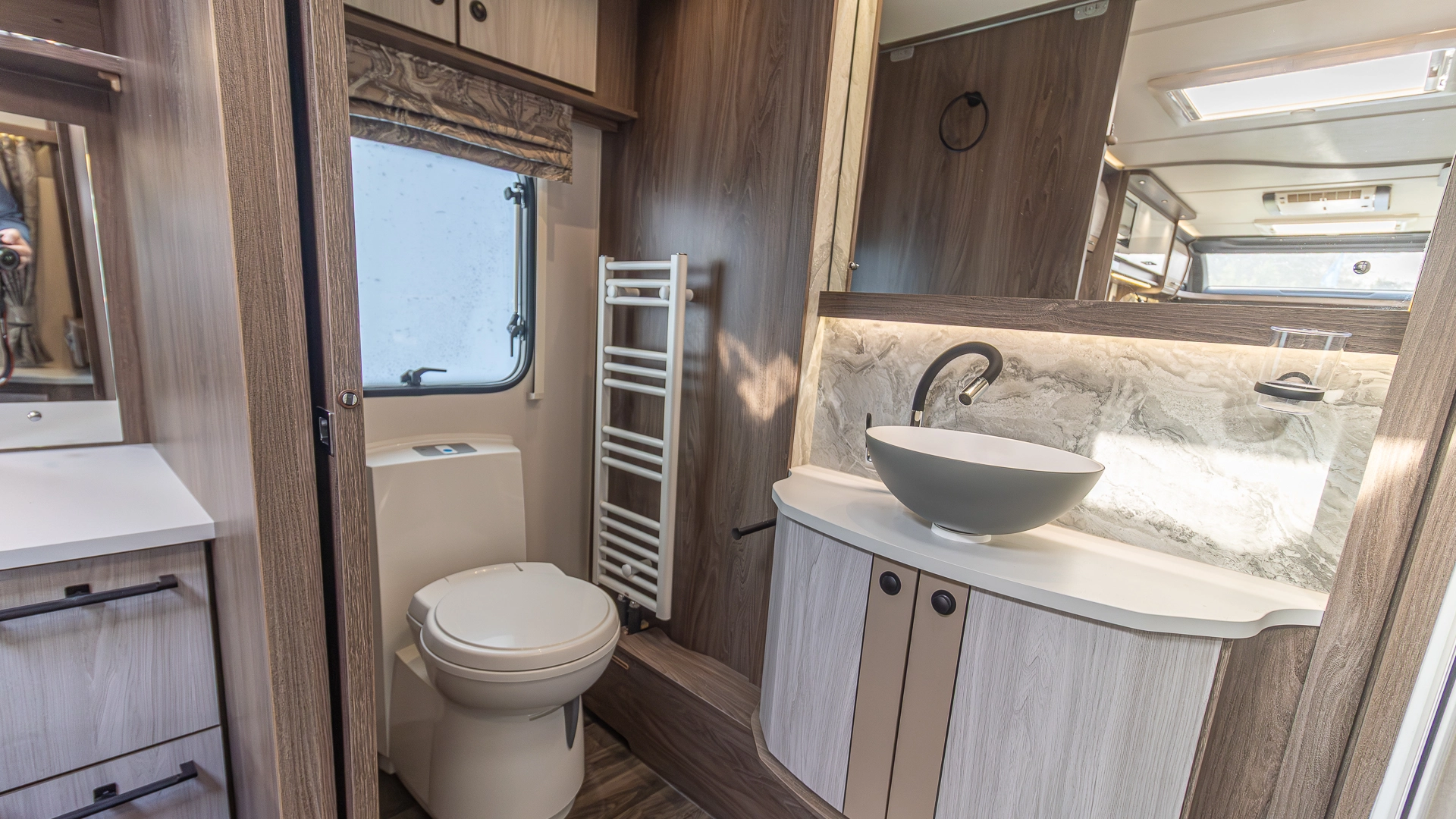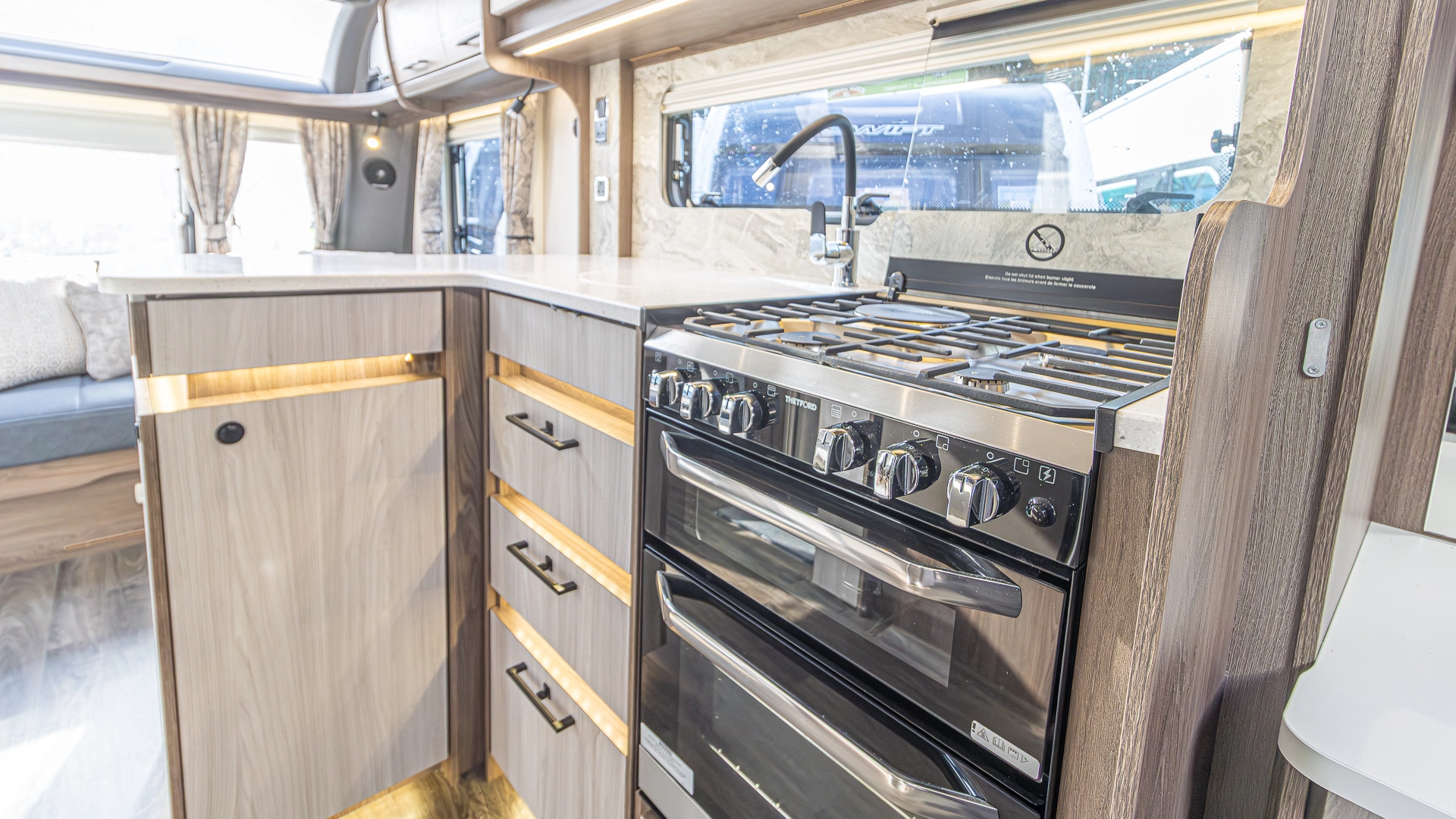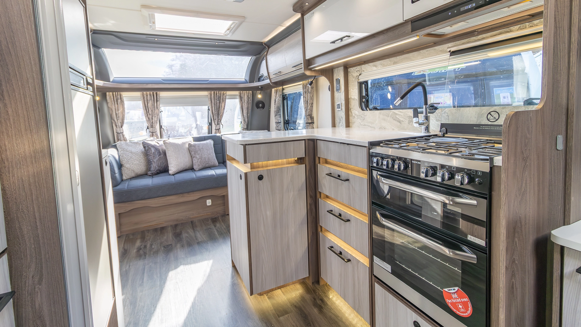 At the touch of a button, the caravan automatically levels itself, saving valuable setup time on site and ensuring a stable, solid feel inside, even on uneven pitches.