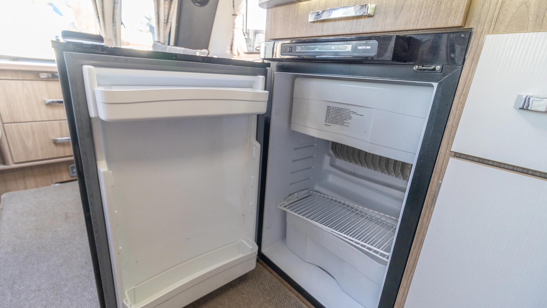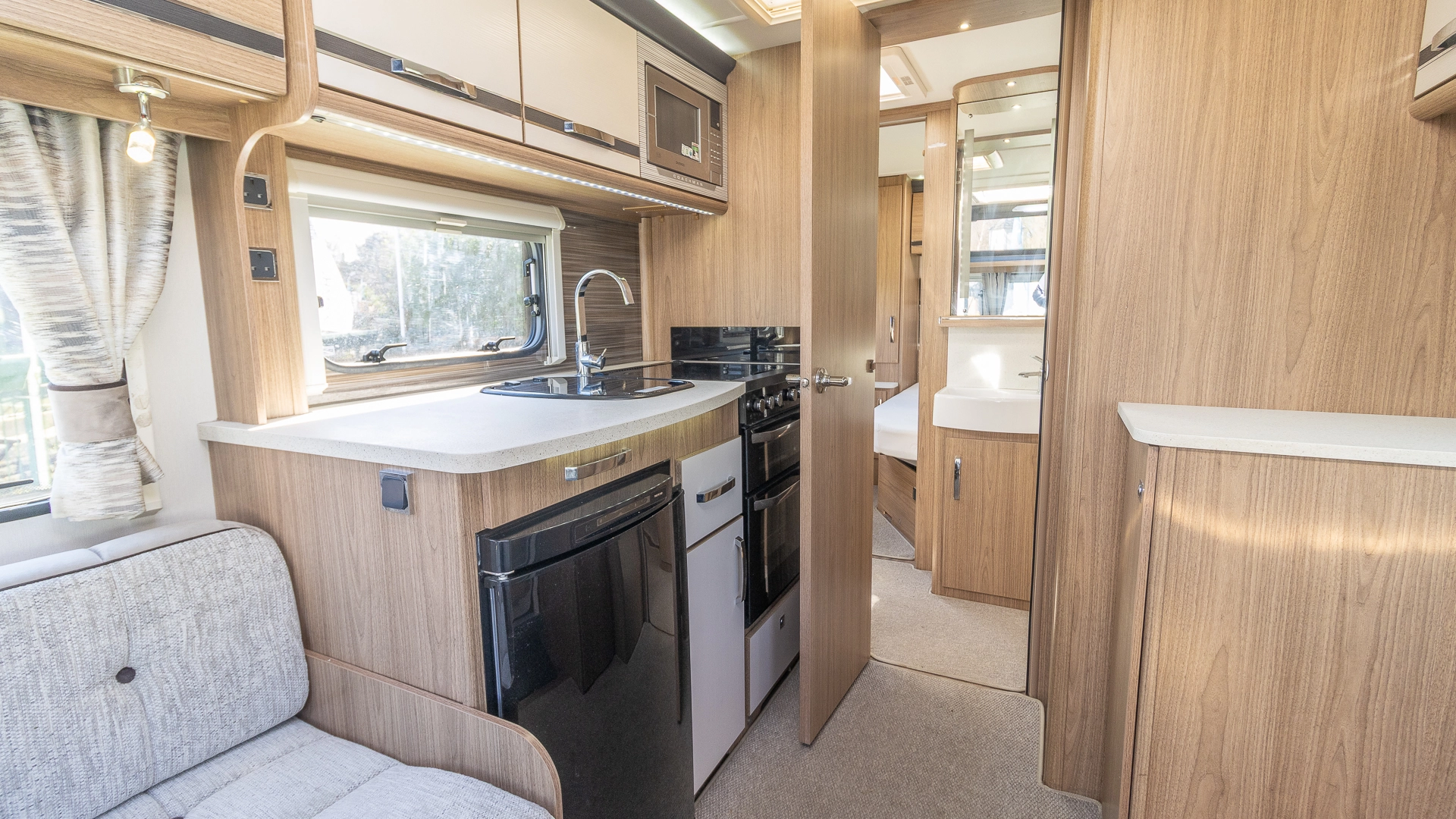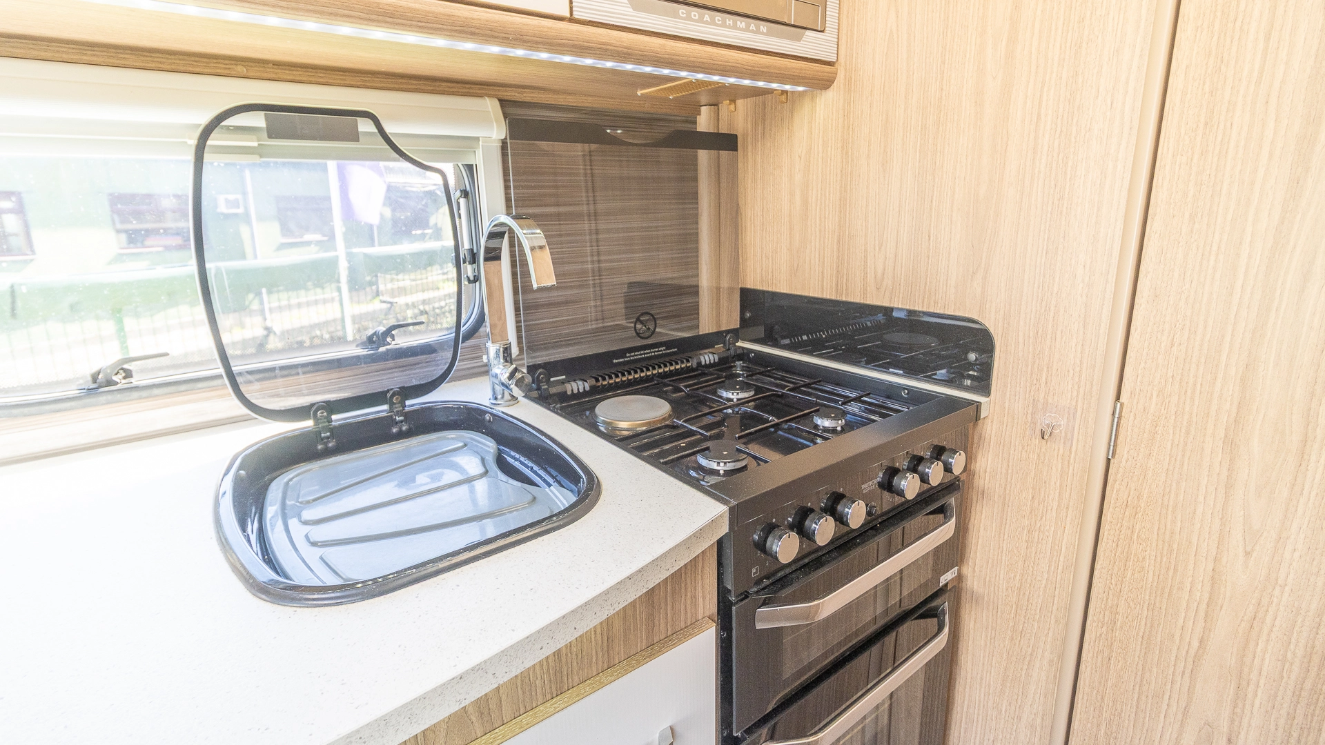 Fitted above the cooking area, the extractor fan maintains the caravan’s fresh atmosphere by efficiently removing cooking odours from the kitchen.