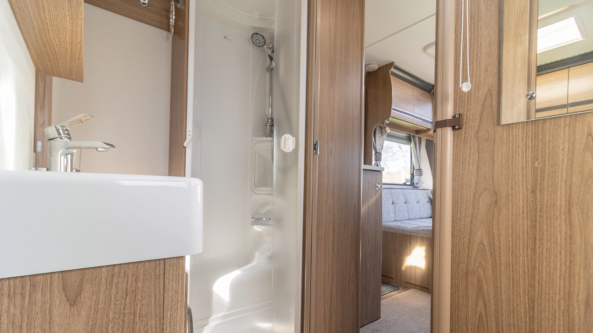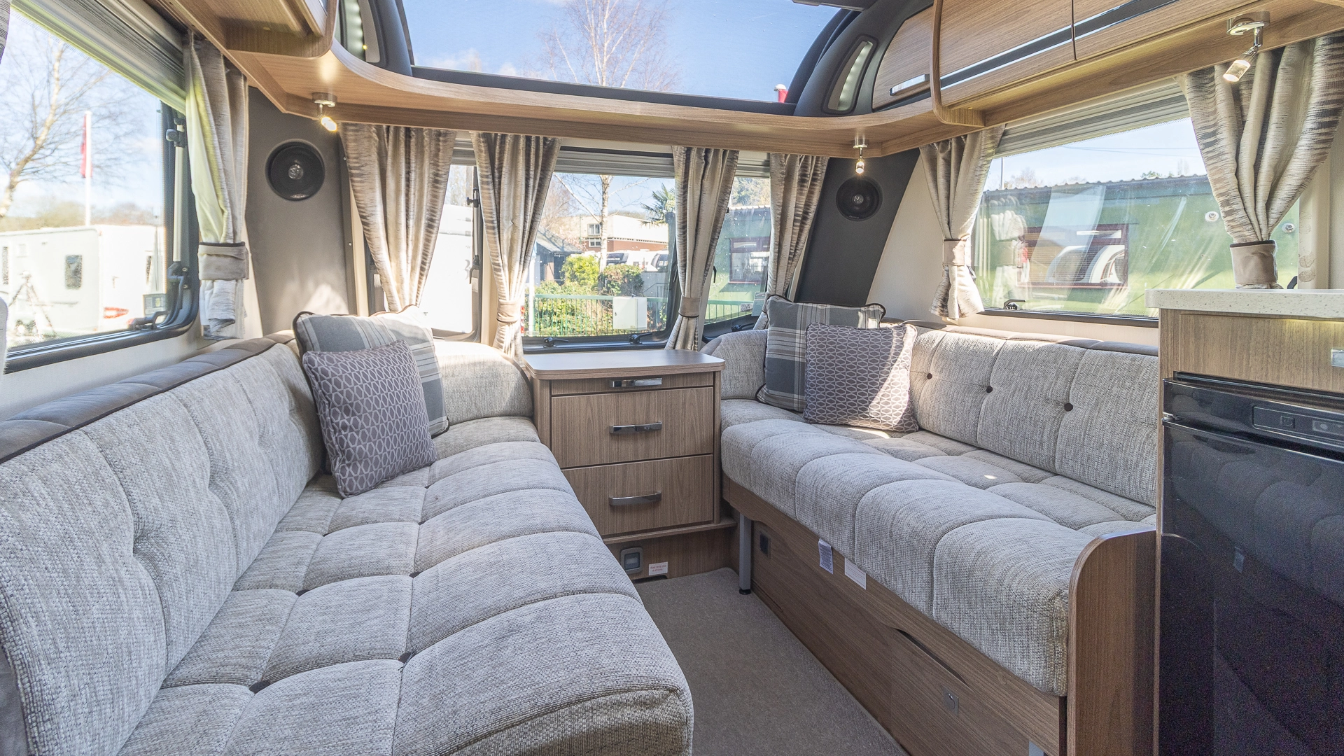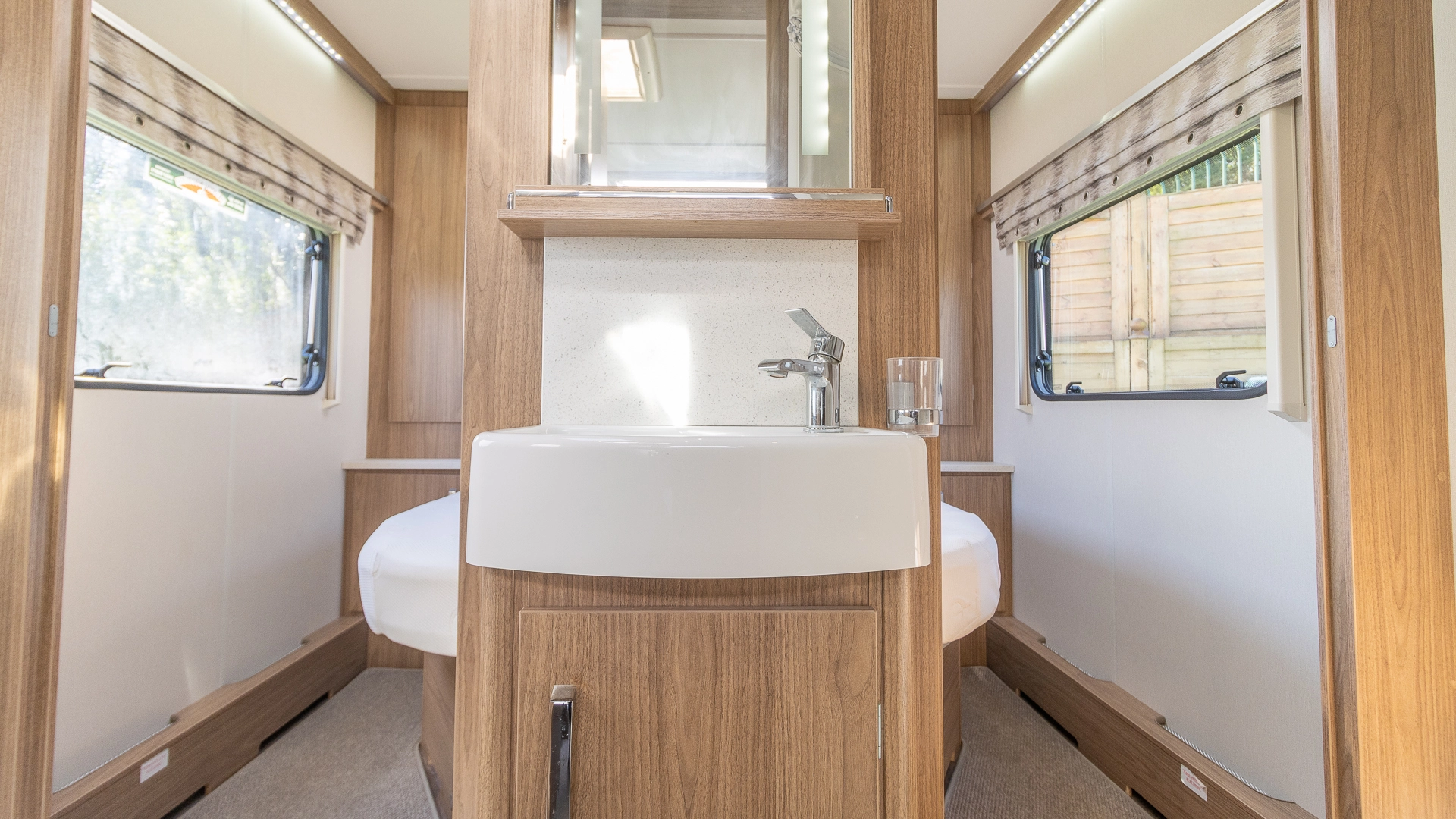 Fitted above the cooking area, the extractor fan maintains the caravan’s fresh atmosphere by efficiently removing cooking odours from the kitchen.