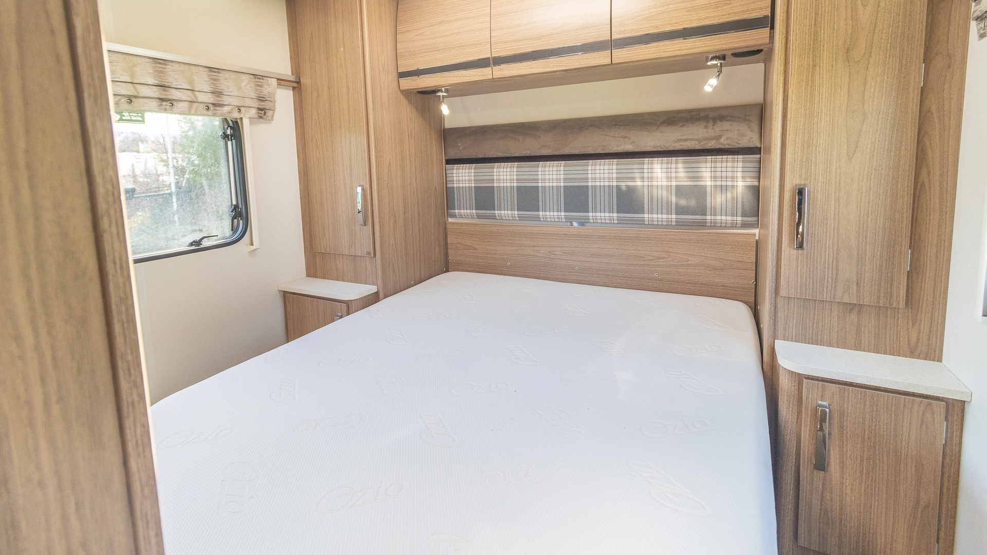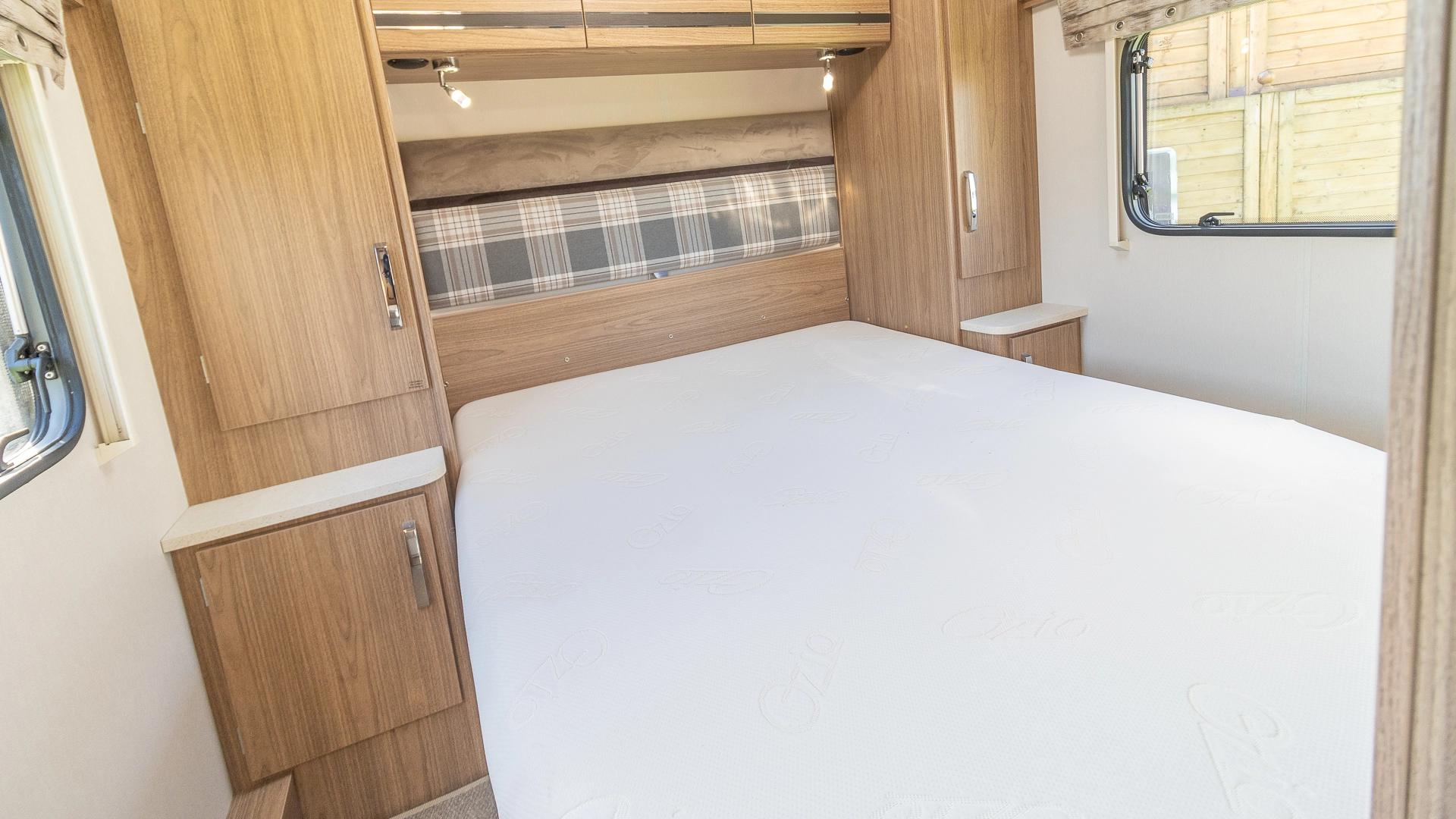 Requiring no nightly bed making, the fixed island bed provides a dedicated sleeping zone with walk around access and generous under bed storage.