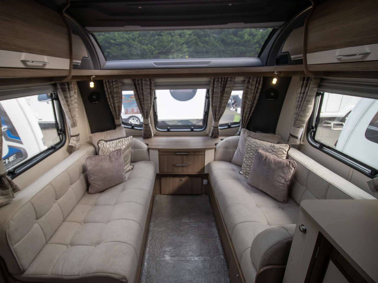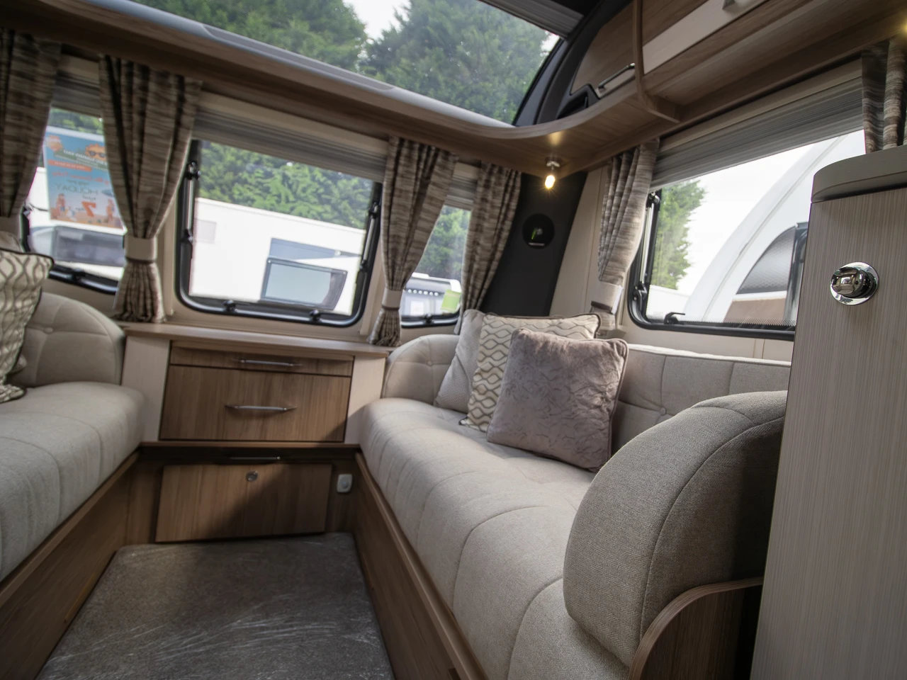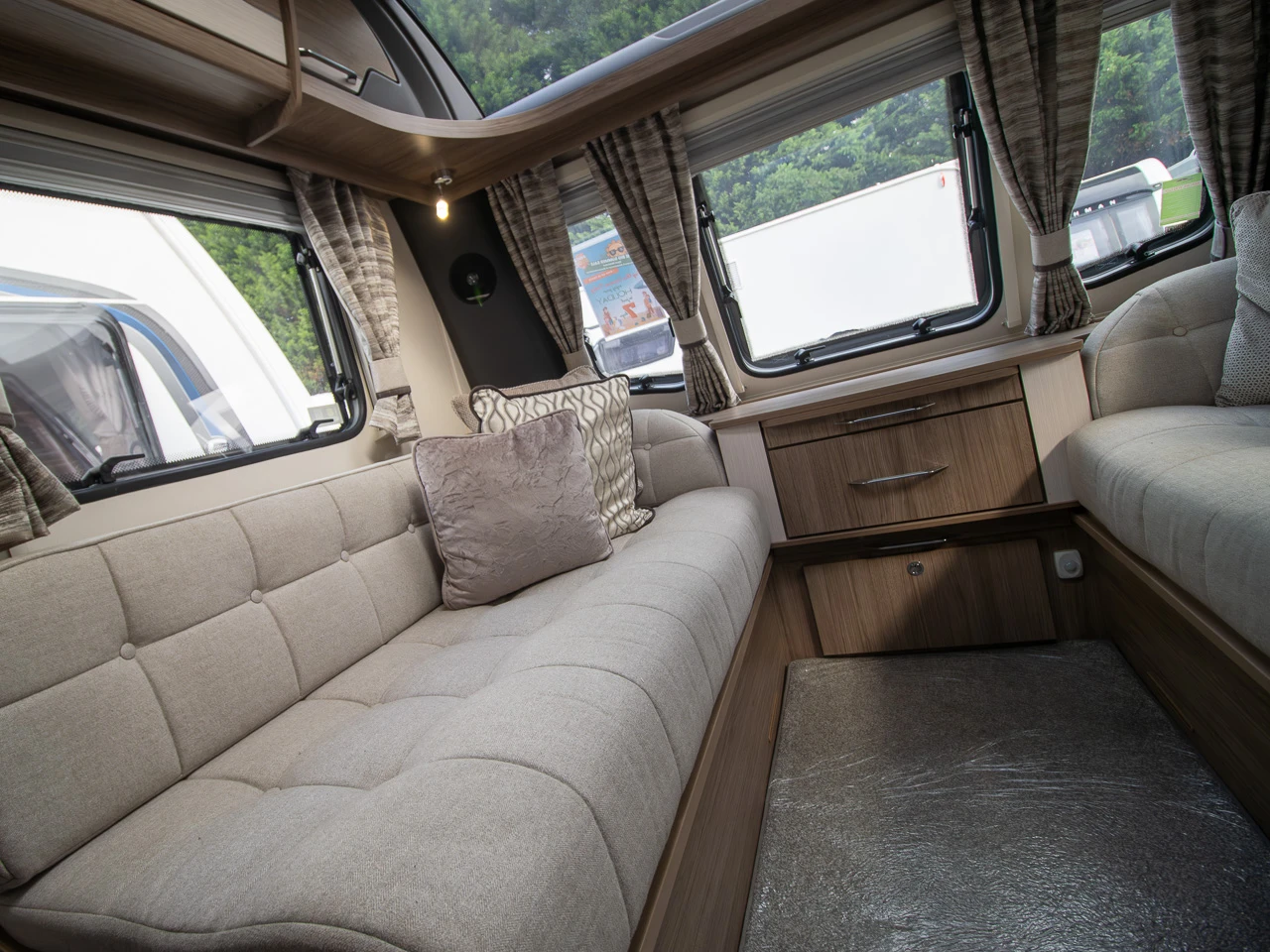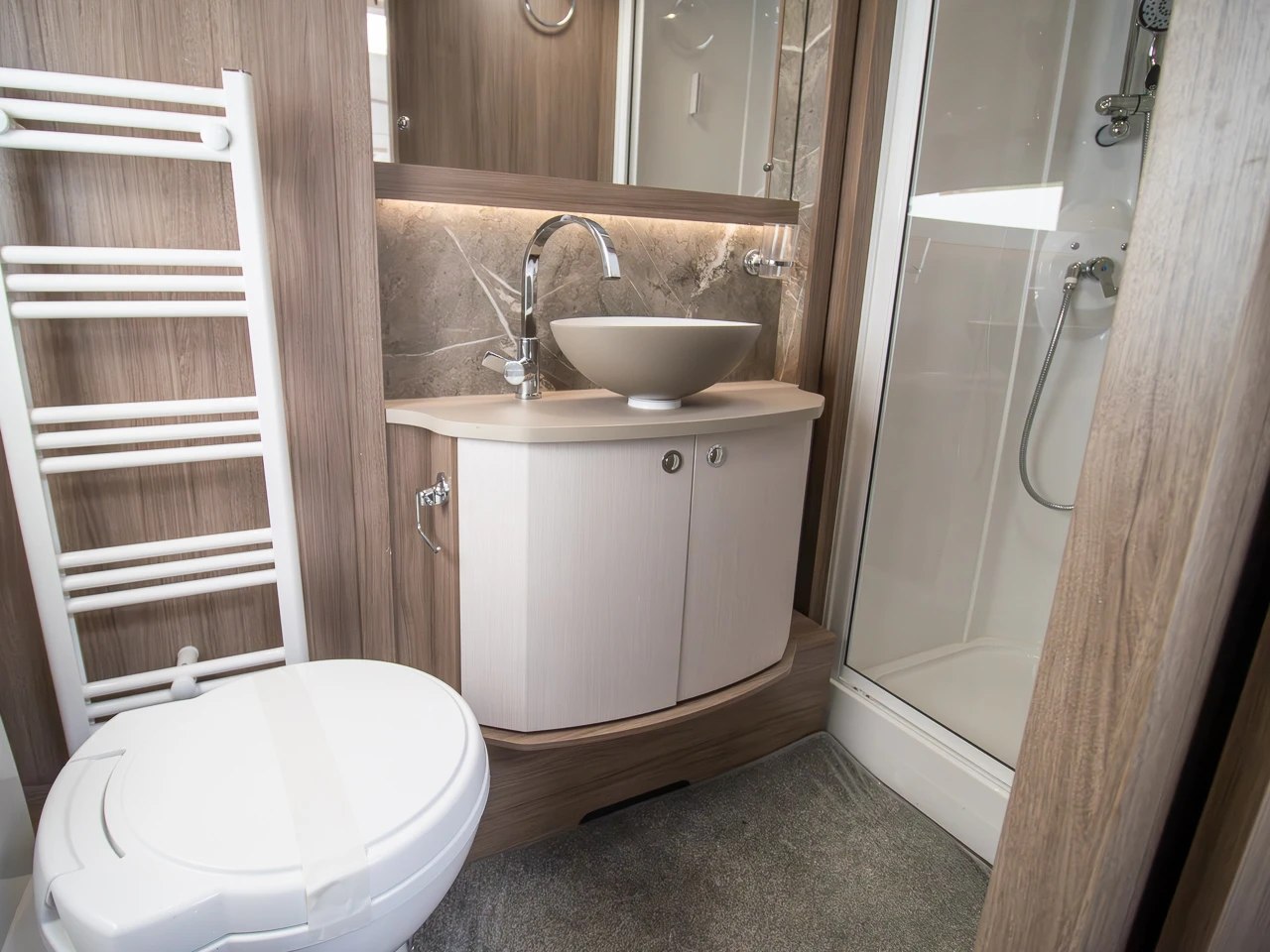 Wet central heating (Alde system): A domestic-style wet-water heating system ensures even warmth throughout the caravan, enabling year-round touring.