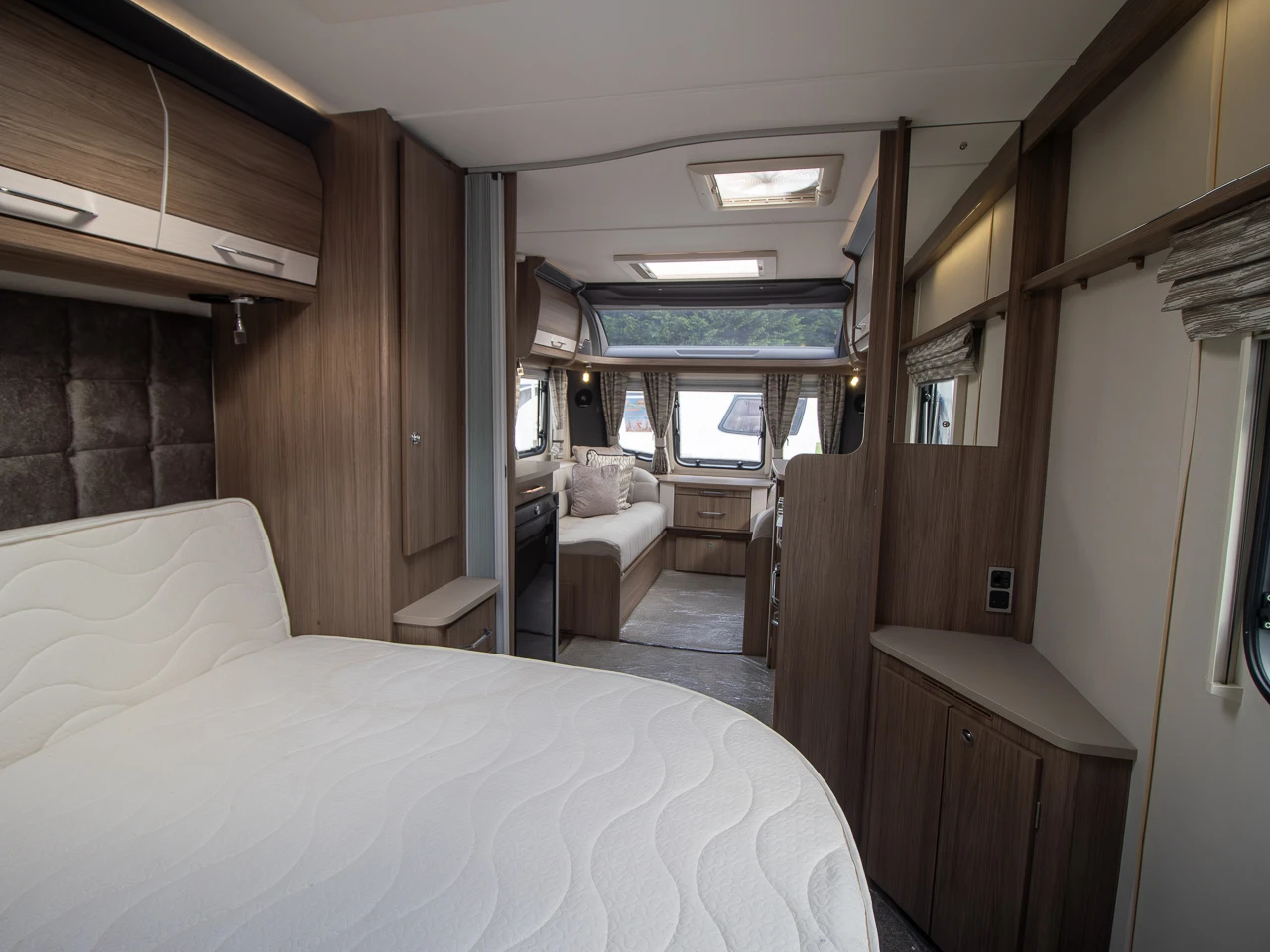 The Coachman VIP 575 2021 has a blend of premium comfort and practical touring features. With a dedicated fixed bed and versatile front lounge, it offers both restful sleep and spacious living, while the high-spec kitchen, extractor fan and external BBQ make on-site cooking enjoyable, and the wet central heating ensures you’re comfortable no matter the season.