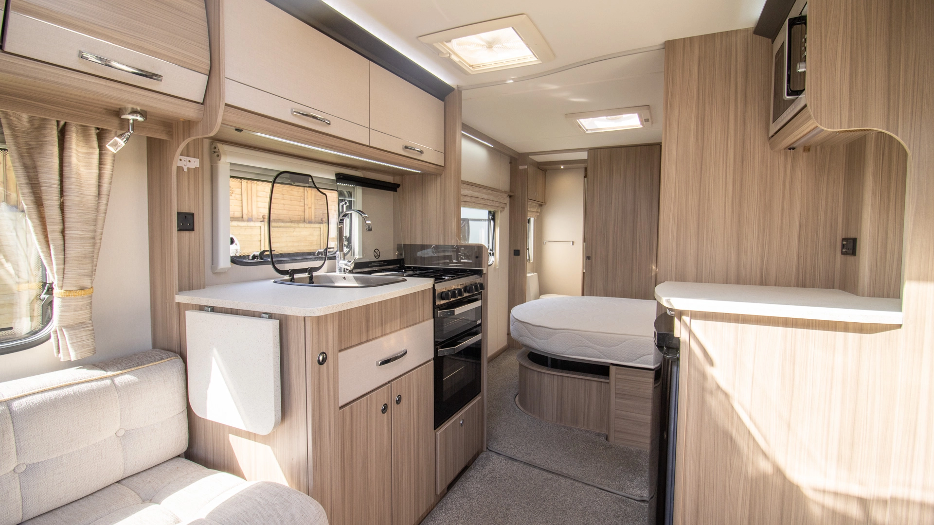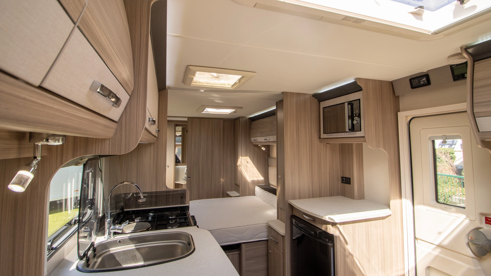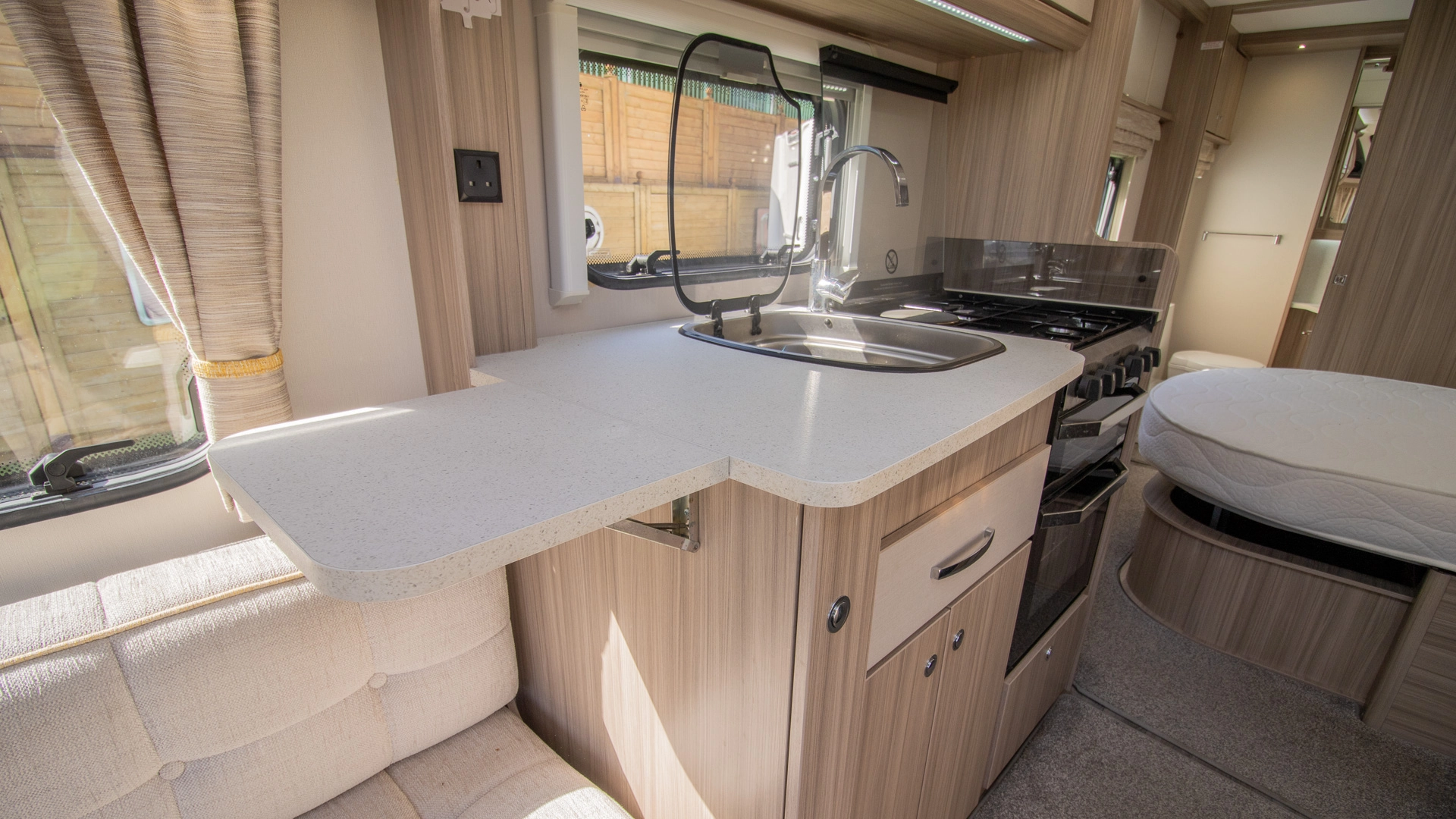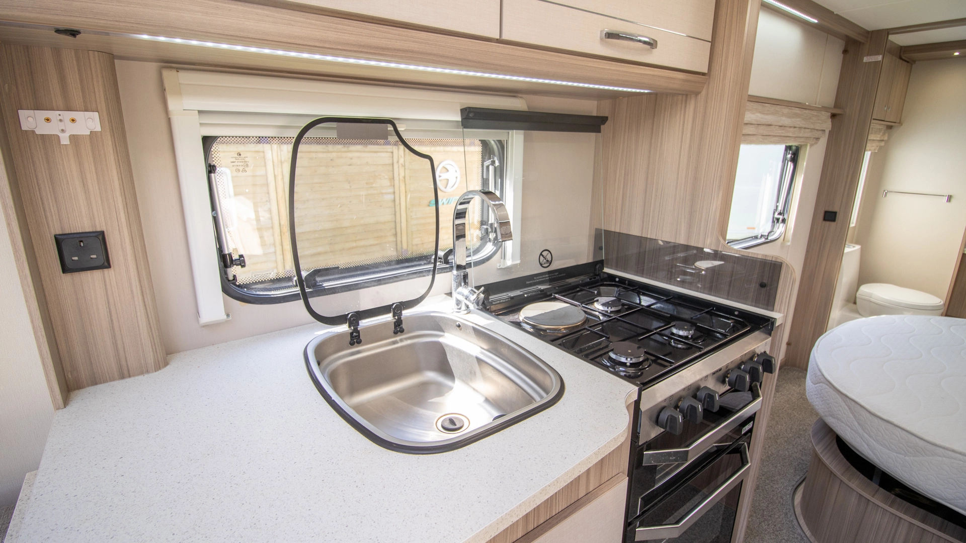 Fitted above the cooking area, the extractor fan maintains the caravan’s fresh atmosphere by efficiently removing cooking odours from the kitchen.