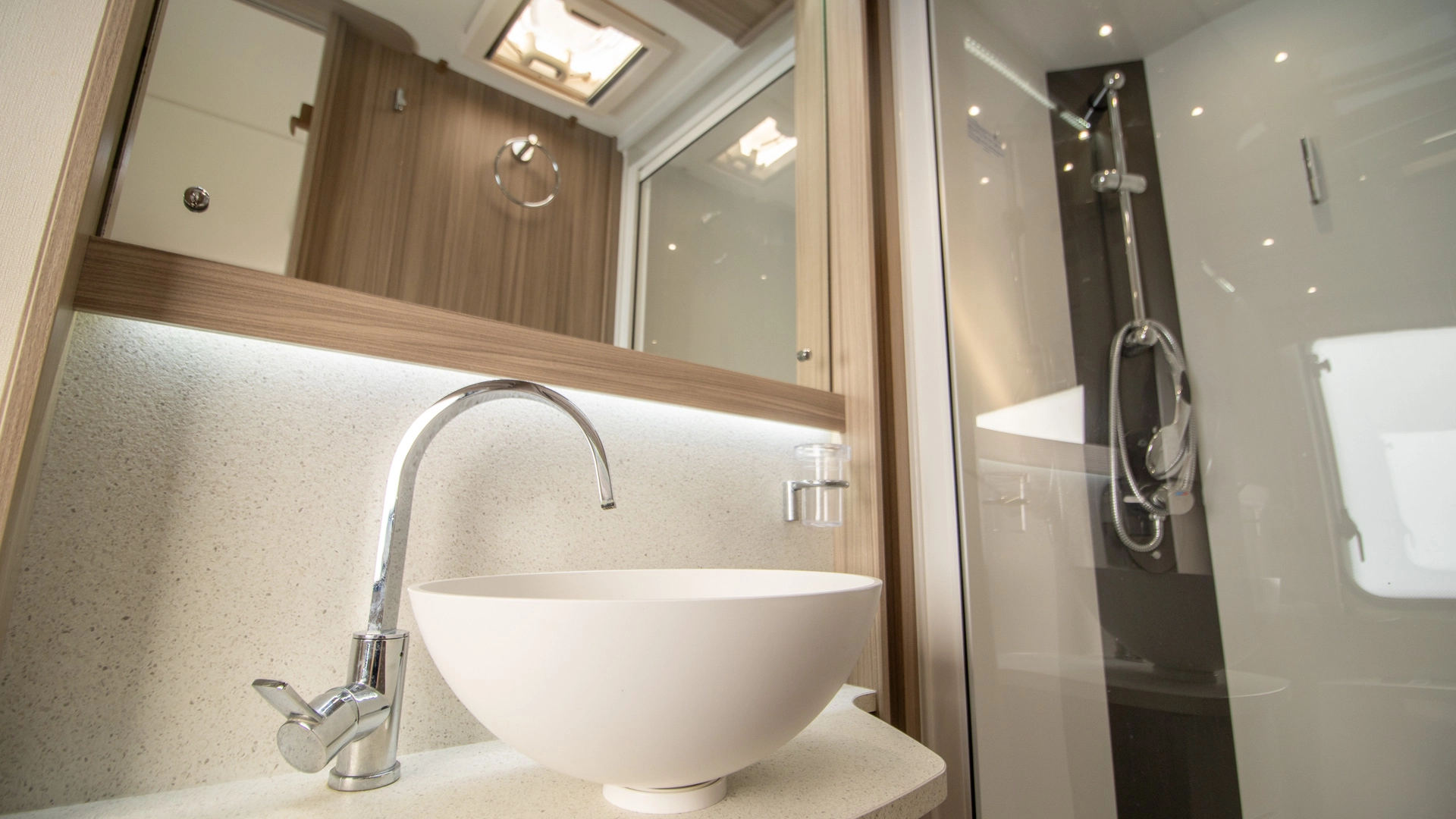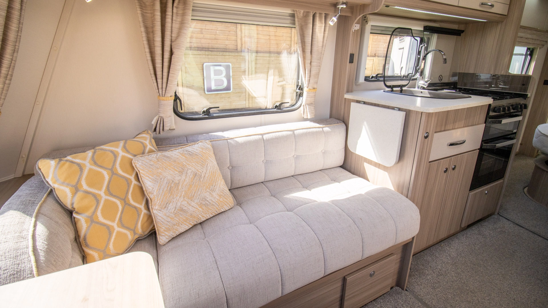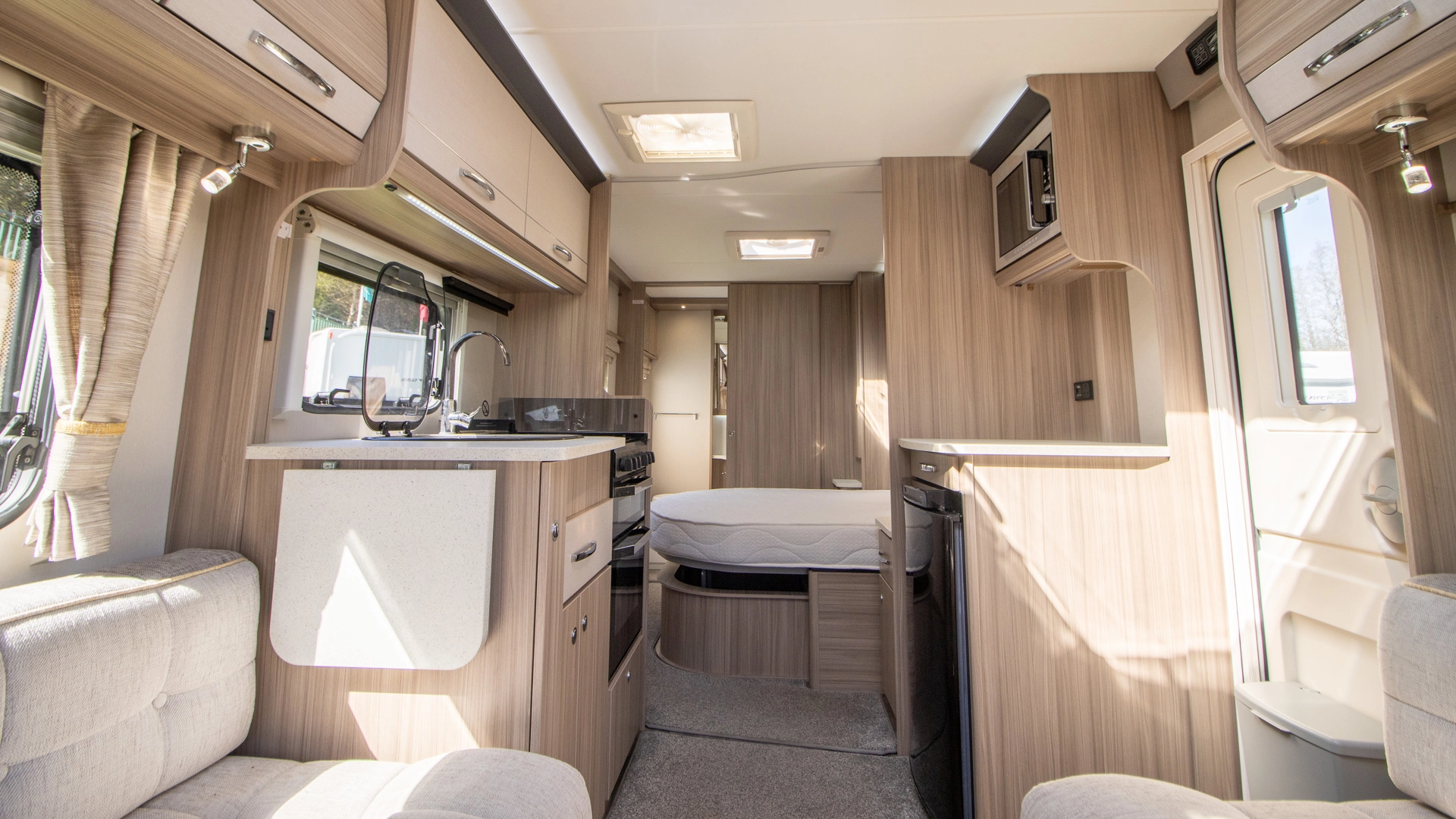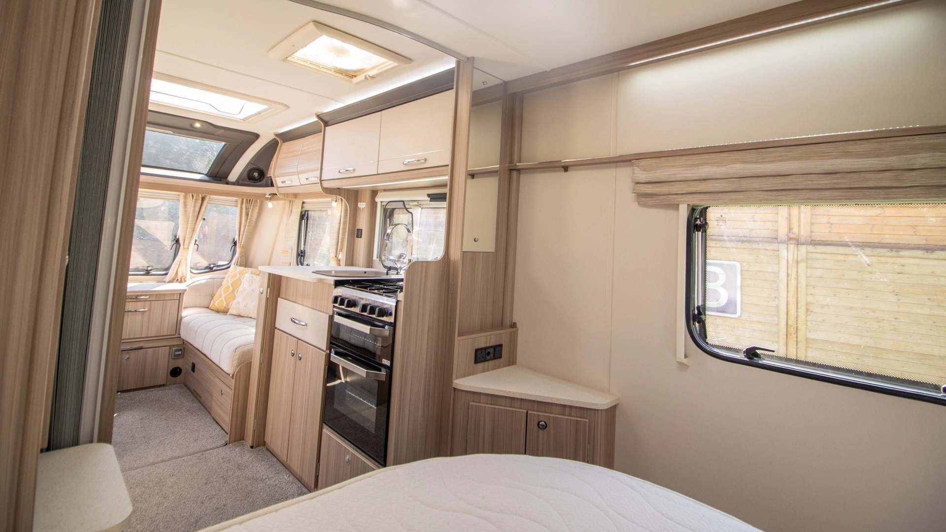 Fitted above the cooking area, the extractor fan maintains the caravan’s fresh atmosphere by efficiently removing cooking odours from the kitchen.