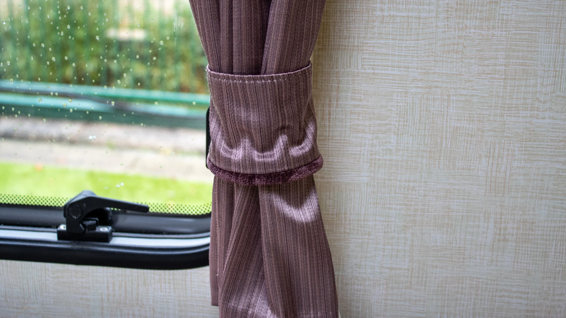 Bright interior design: Large panoramic windows and rooflights fill the caravan with natural light, while modern upholstery and LED lighting create a warm and homely feel.
