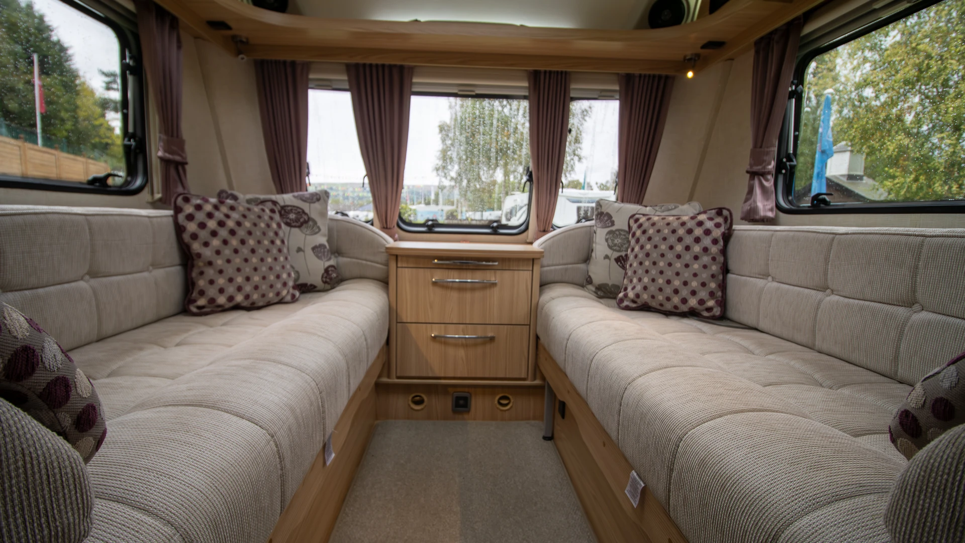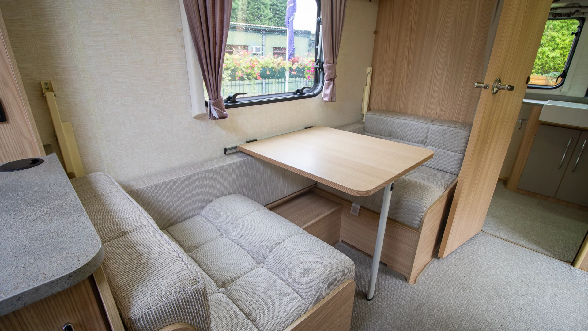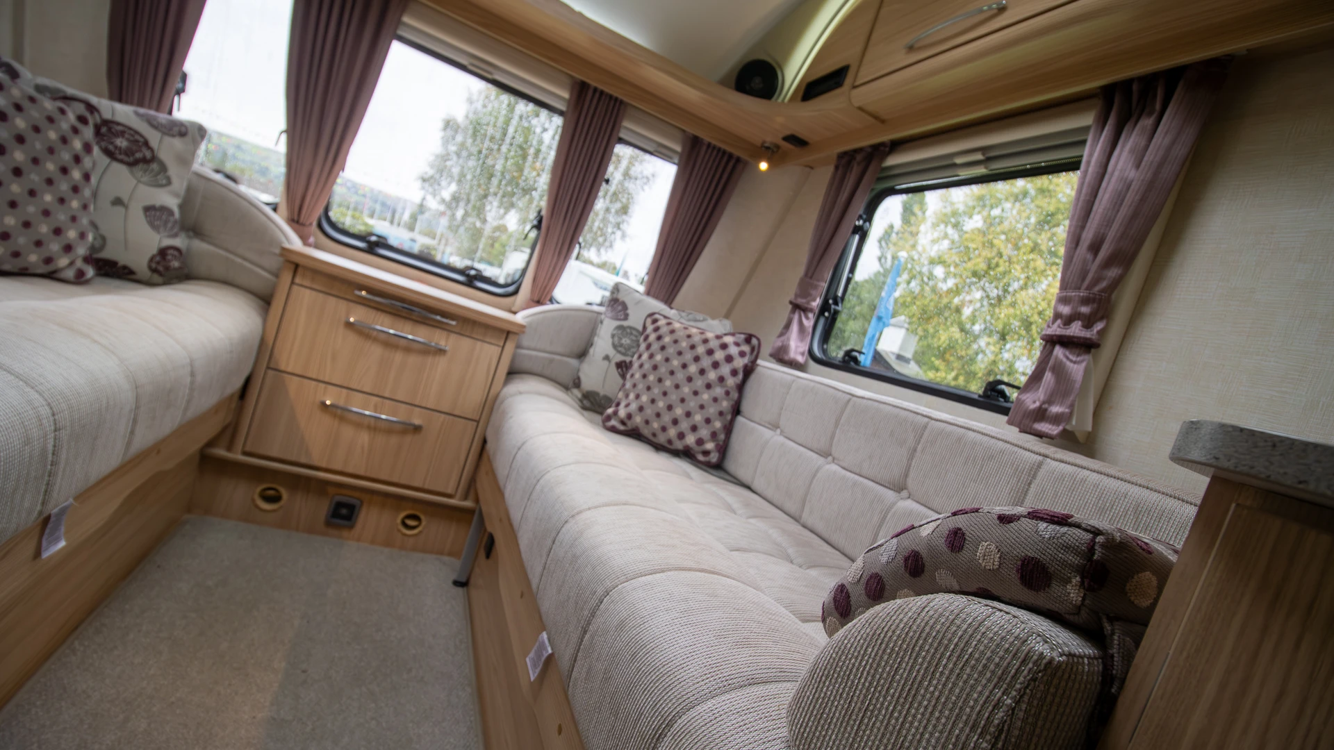 Parallel-seating bed: The front lounge with twin sofas creates a bright and welcoming daytime space. At night, it quickly converts into a generous double bed, offering flexible sleeping arrangements.