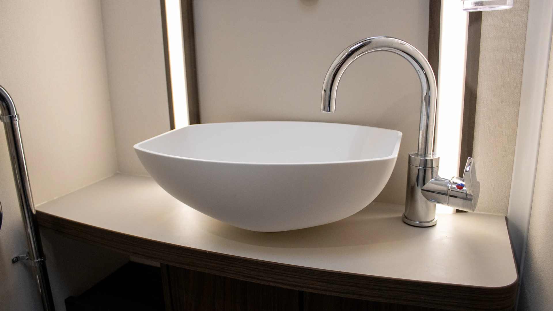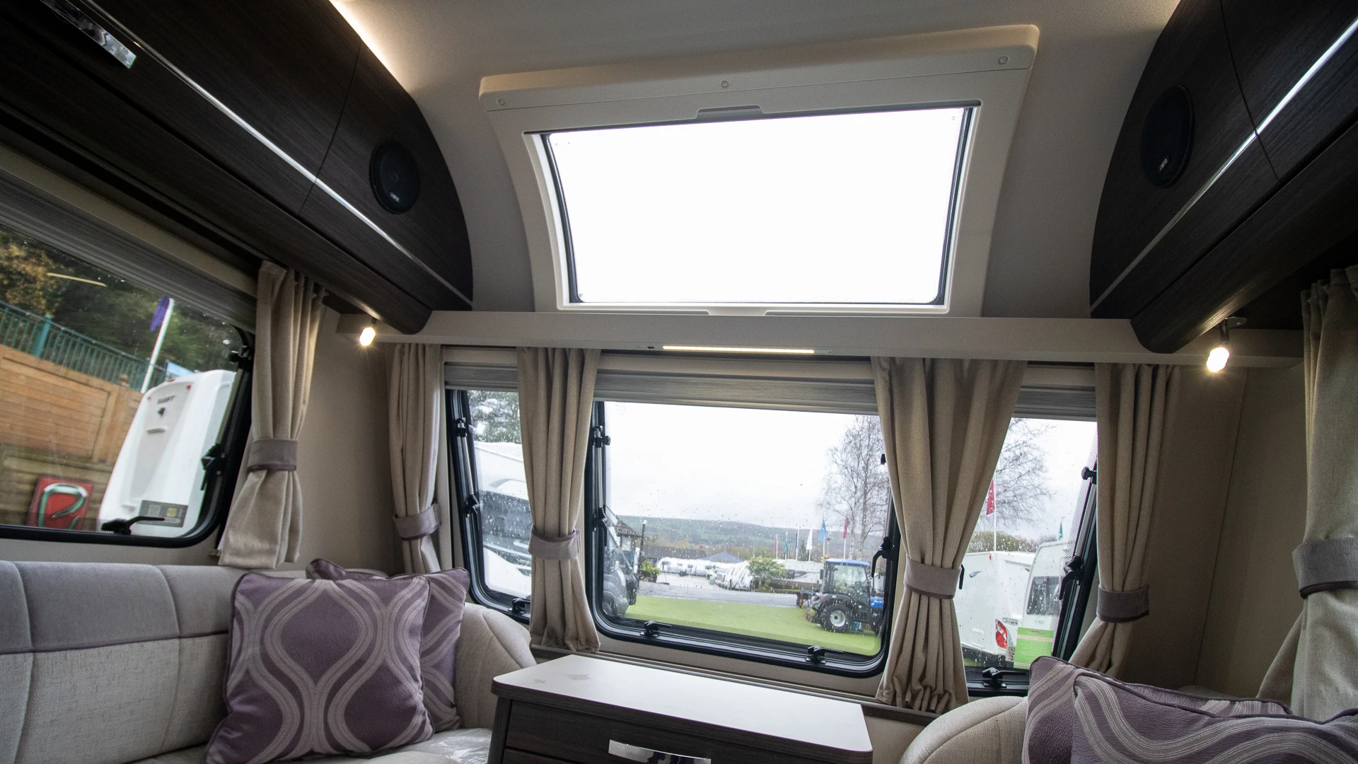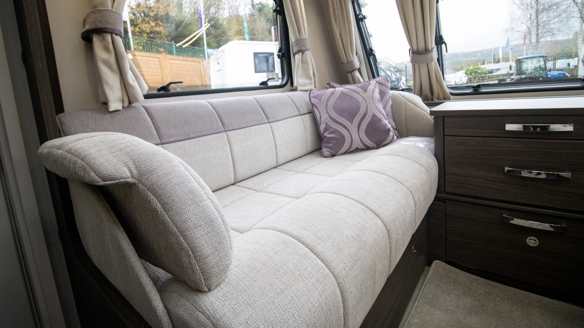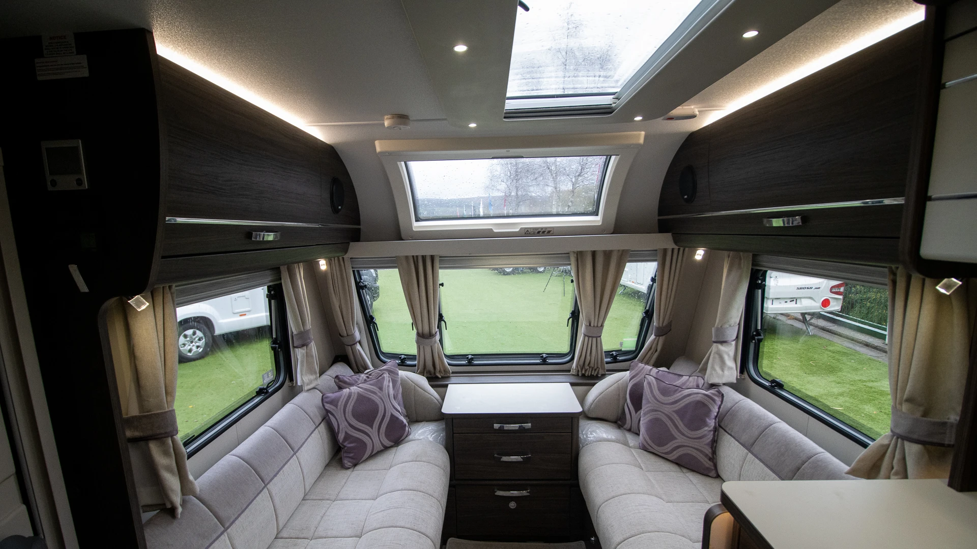 The front lounge features twin sofas that create a bright, sociable living area during the day, and can convert into a comfortable double bed at night.