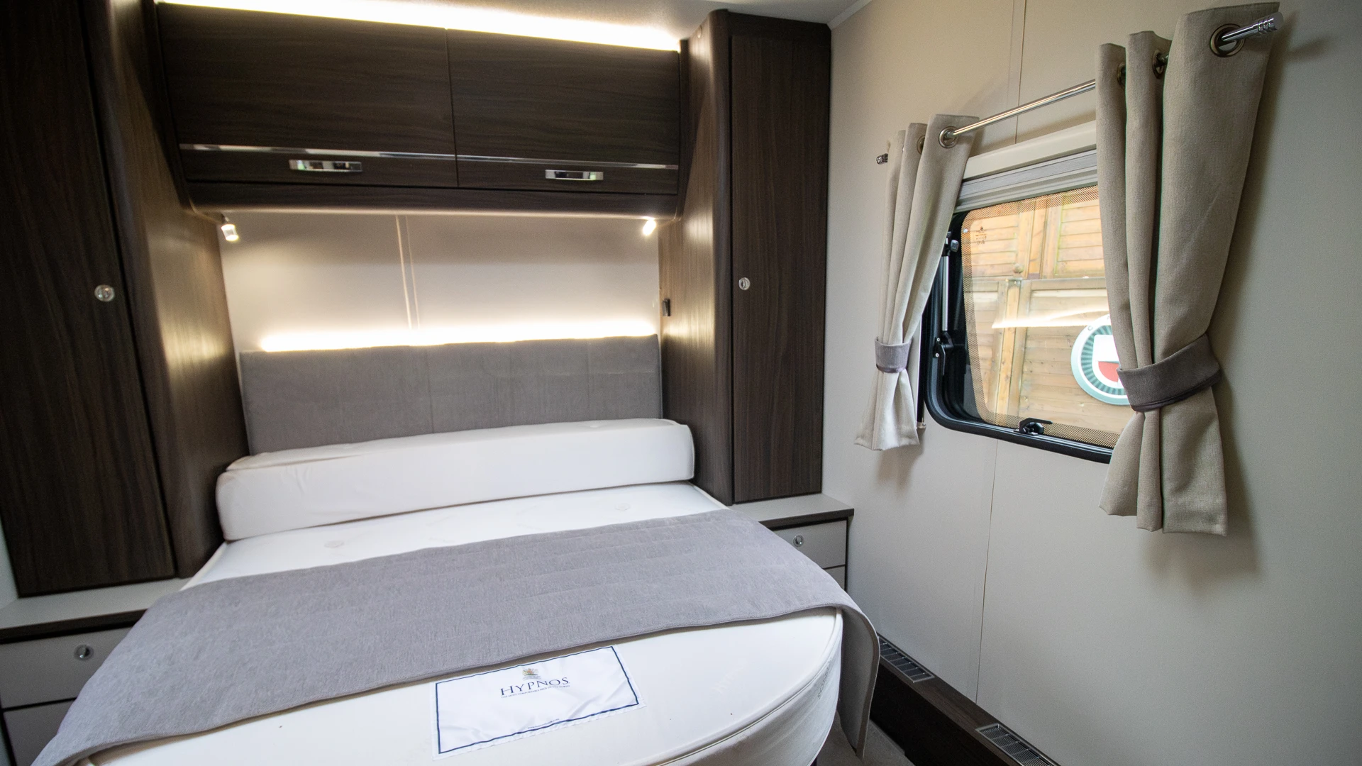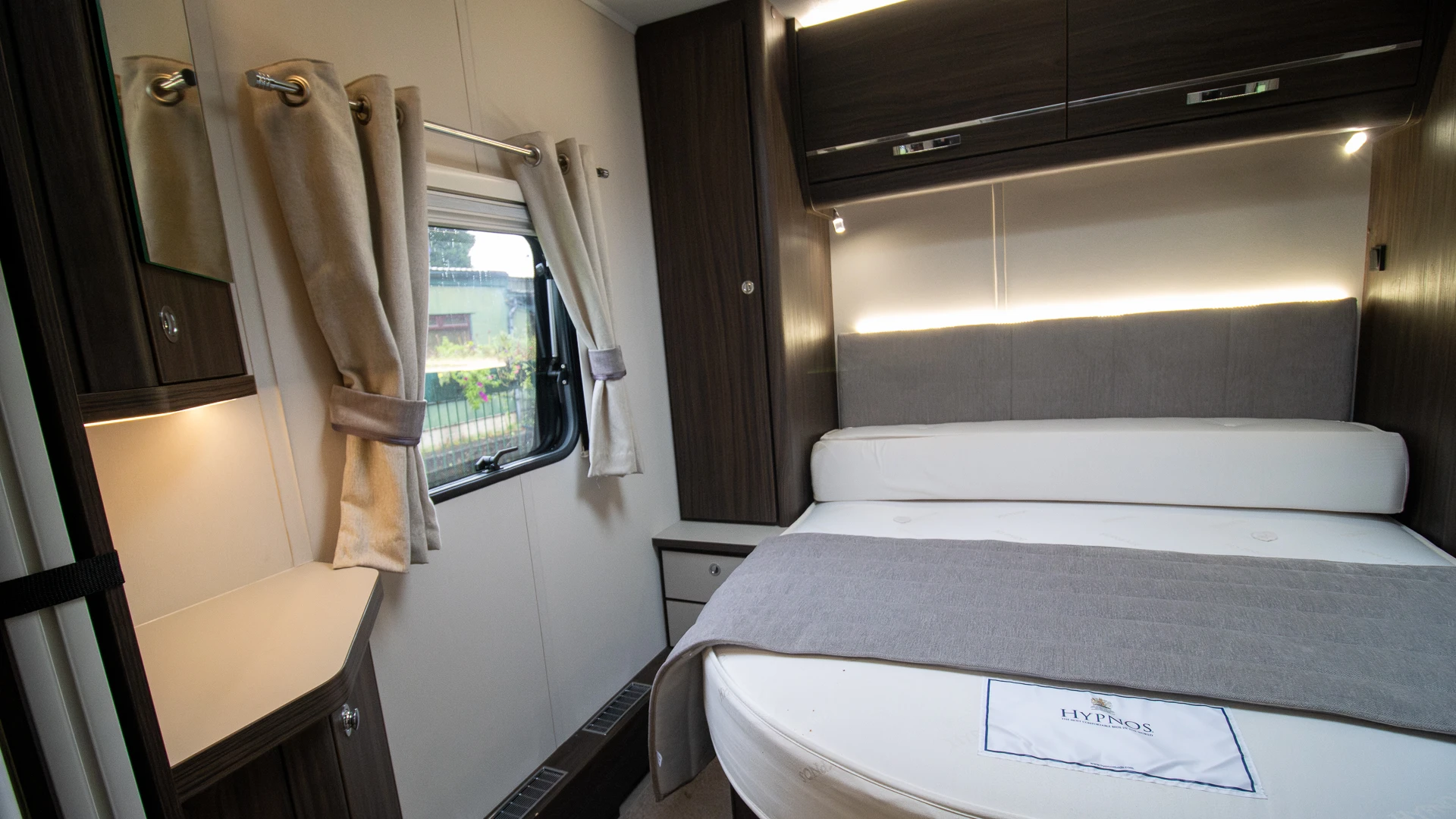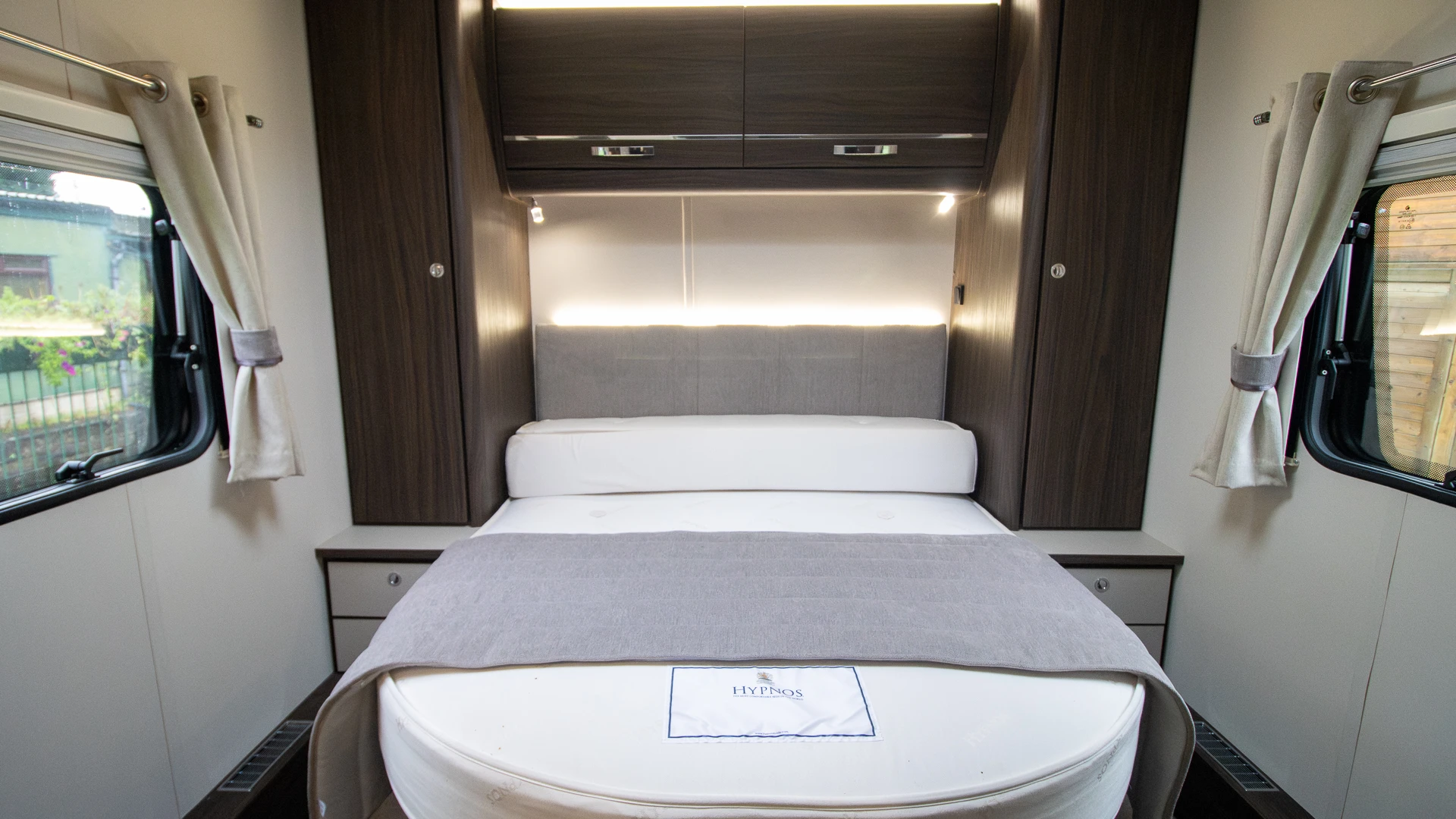 Requiring no nightly bed making, the fixed island bed provides a dedicated sleeping zone with walk‑around access and generous under‑bed storage.