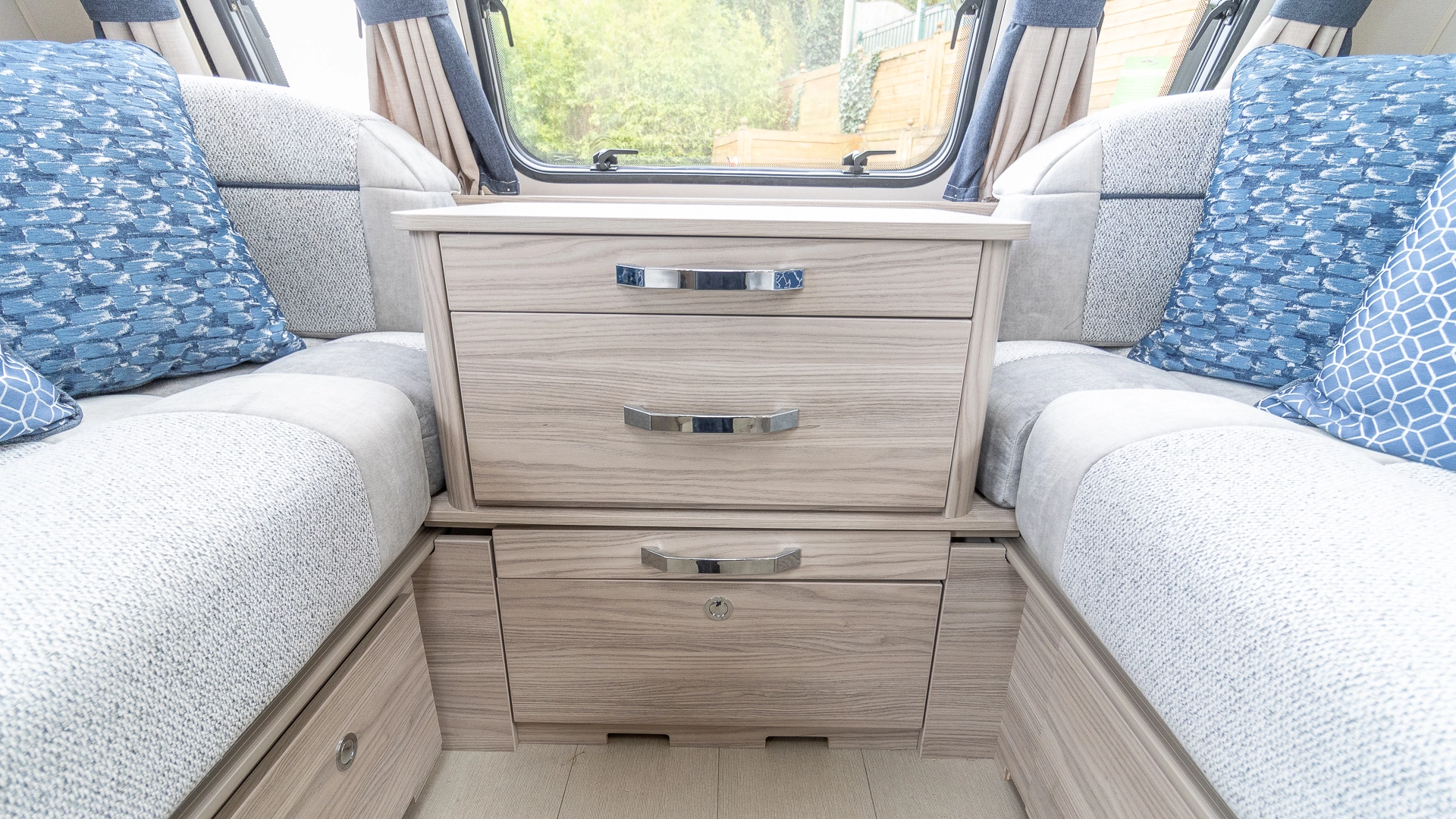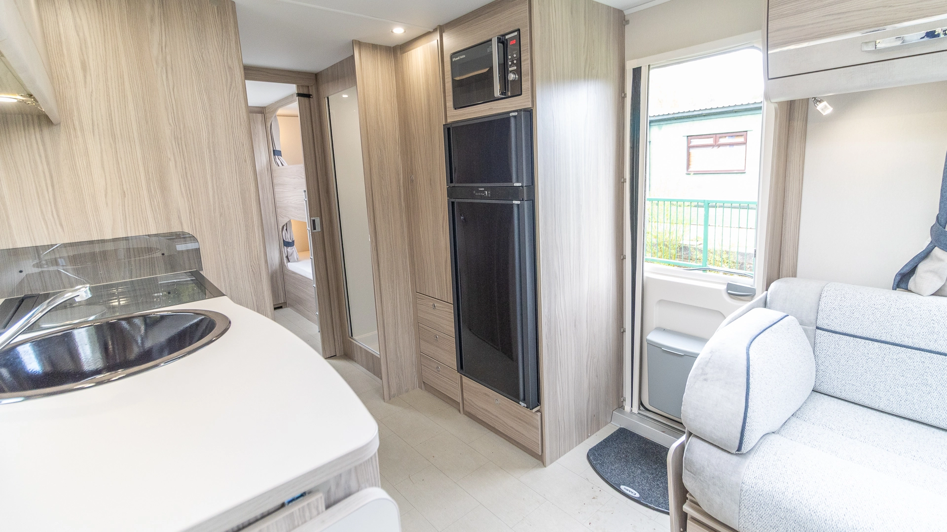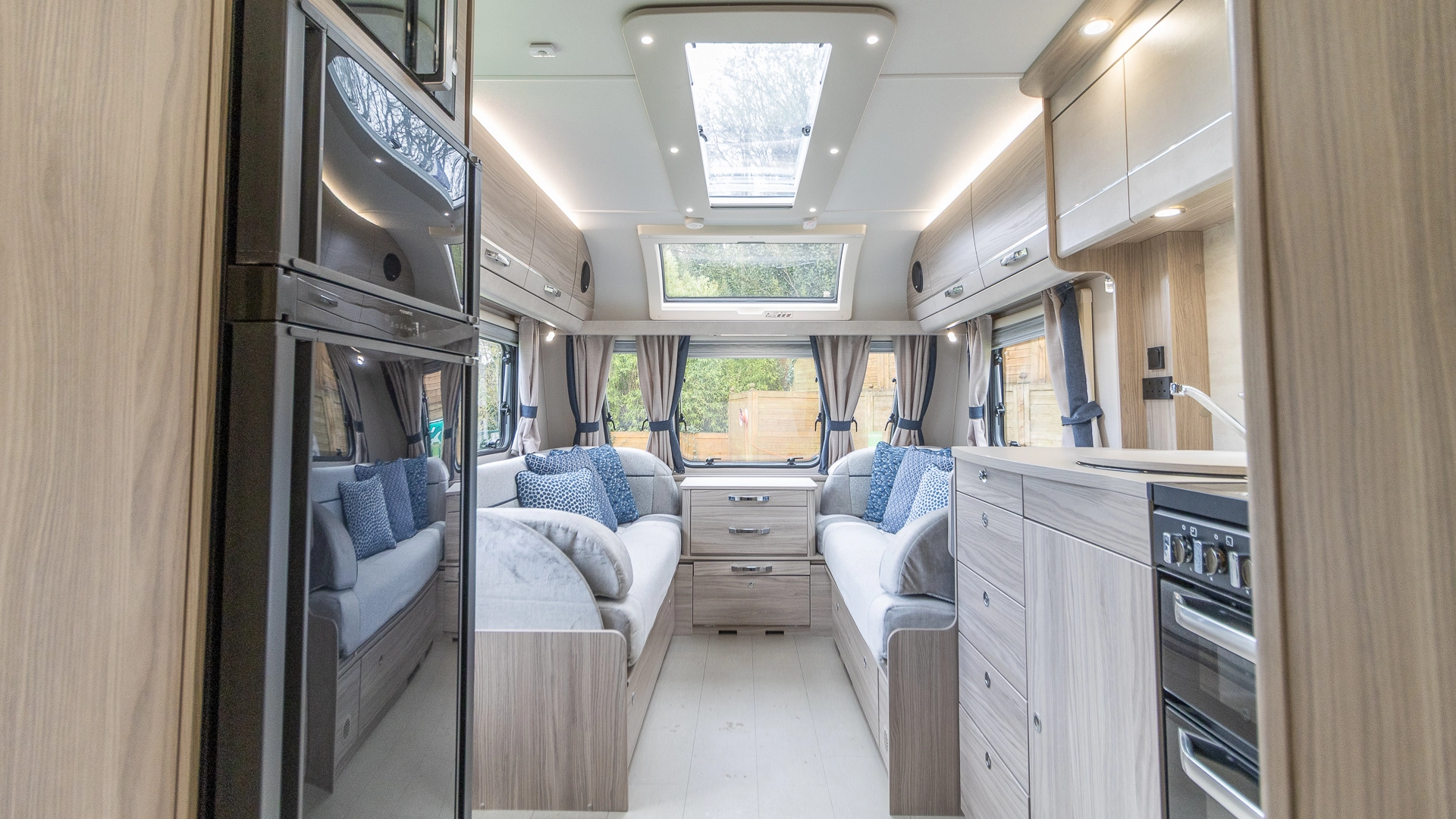 With its full-spec kitchen and extractor fan, flexible living and sleeping areas, centre washroom, awning warmer, and external BBQ point, this caravan delivers year-round comfort