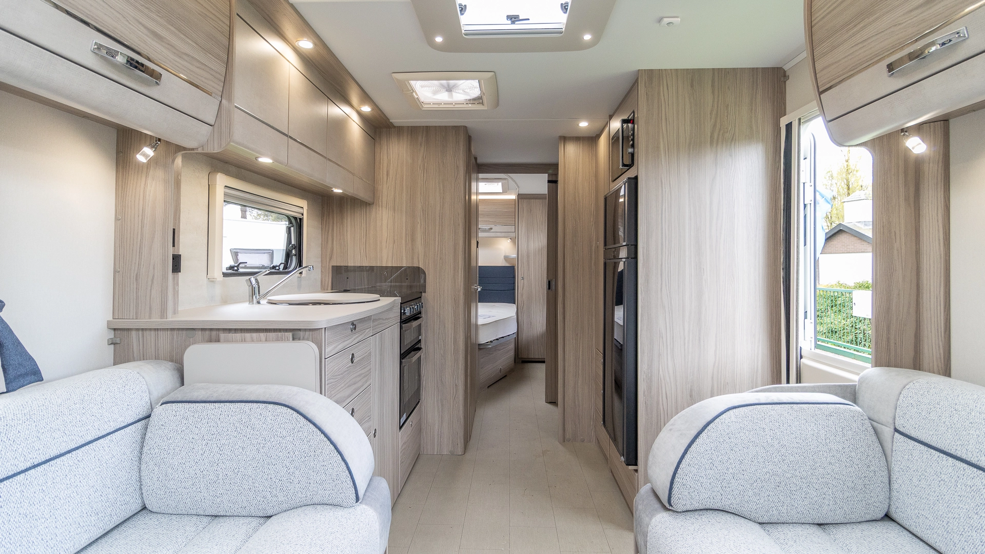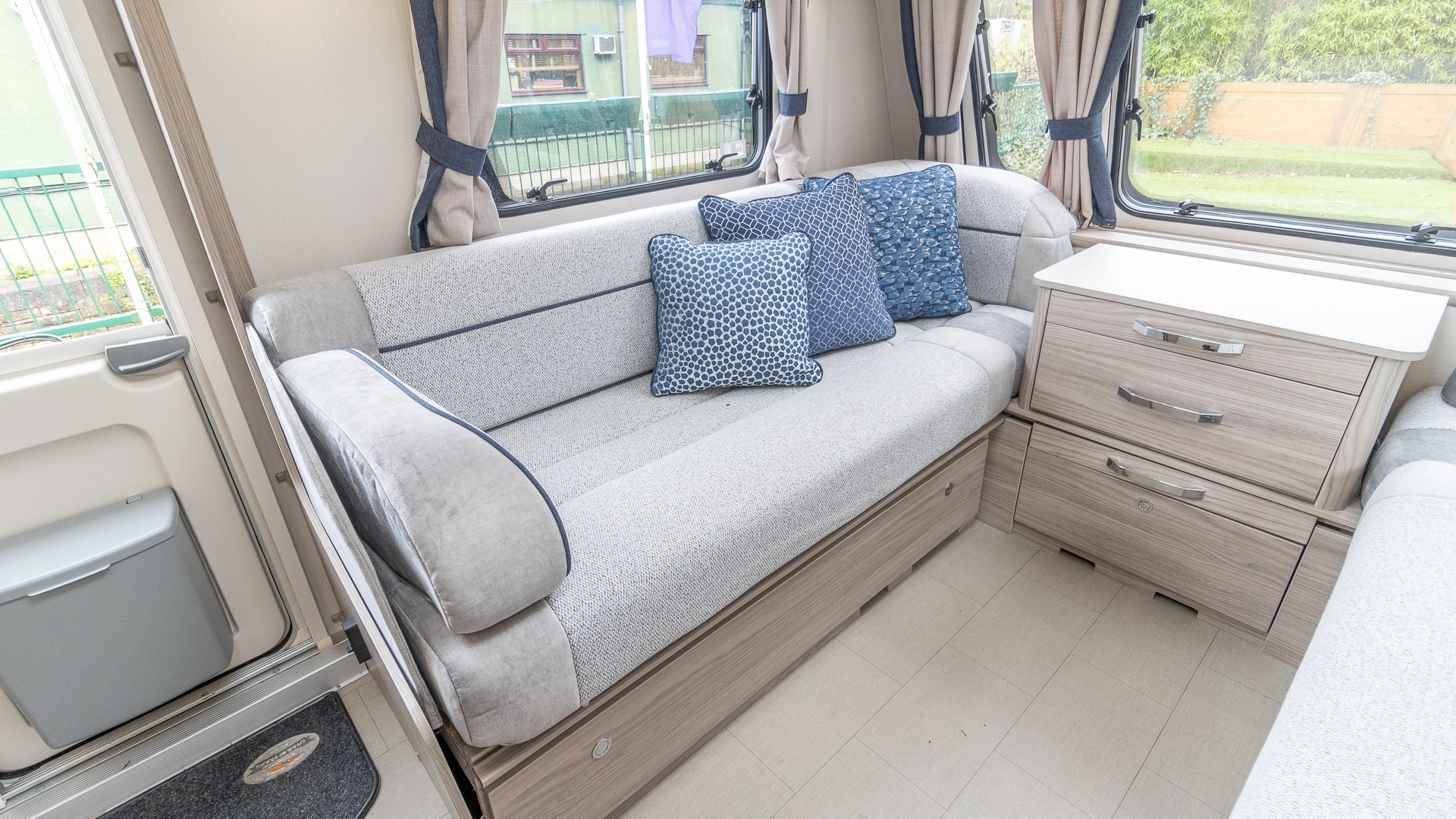 Parallel Seating Bed The front lounge features twin sofas that create a bright, sociable living area during the day, and can convert into a comfortable double bed at night