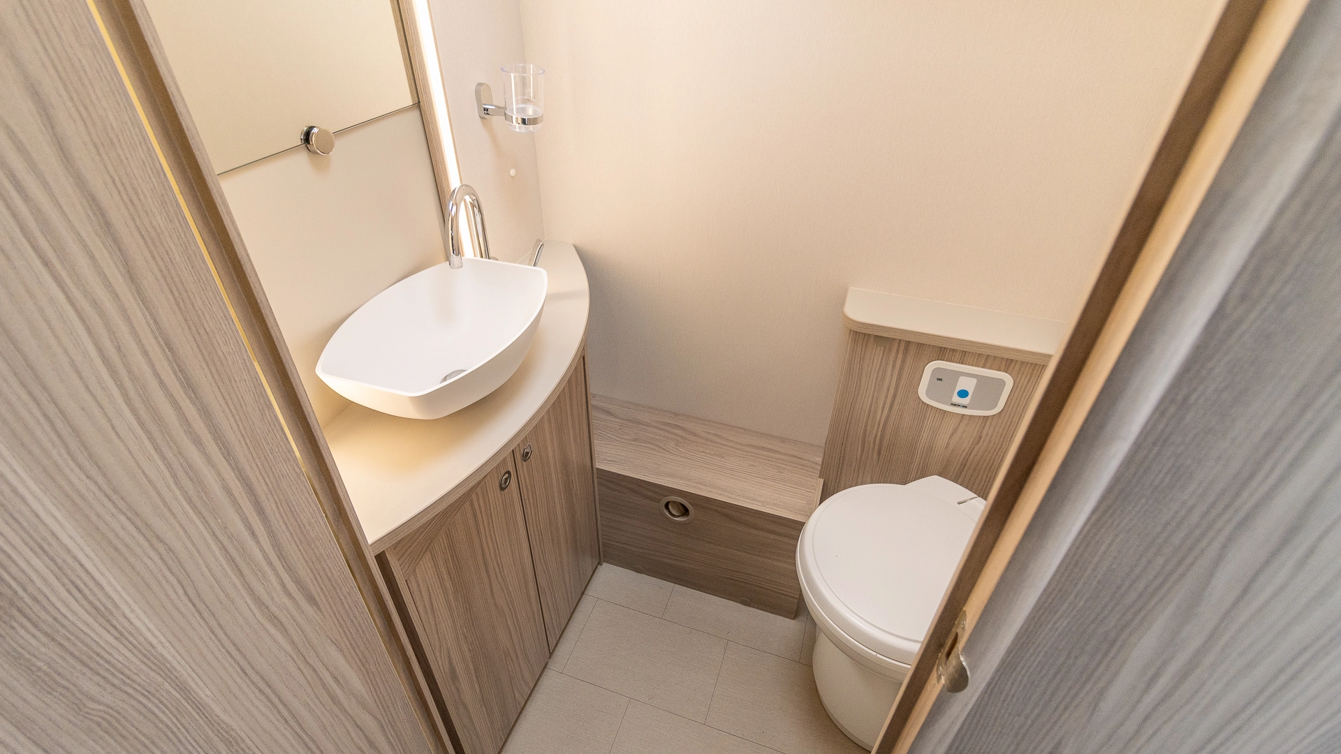 Centre Washroom The centre washroom features a dedicated shower, toilet and basin while separating the living and sleeping areas, offering both convenience and privacy