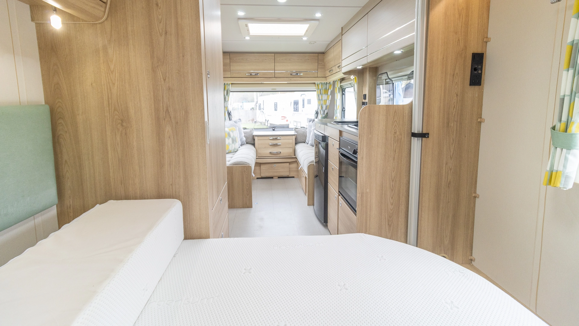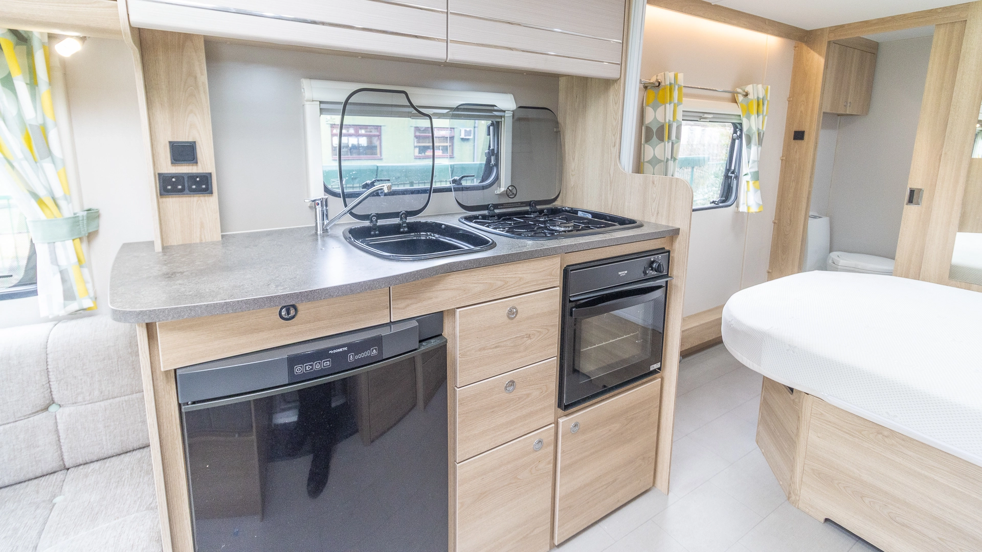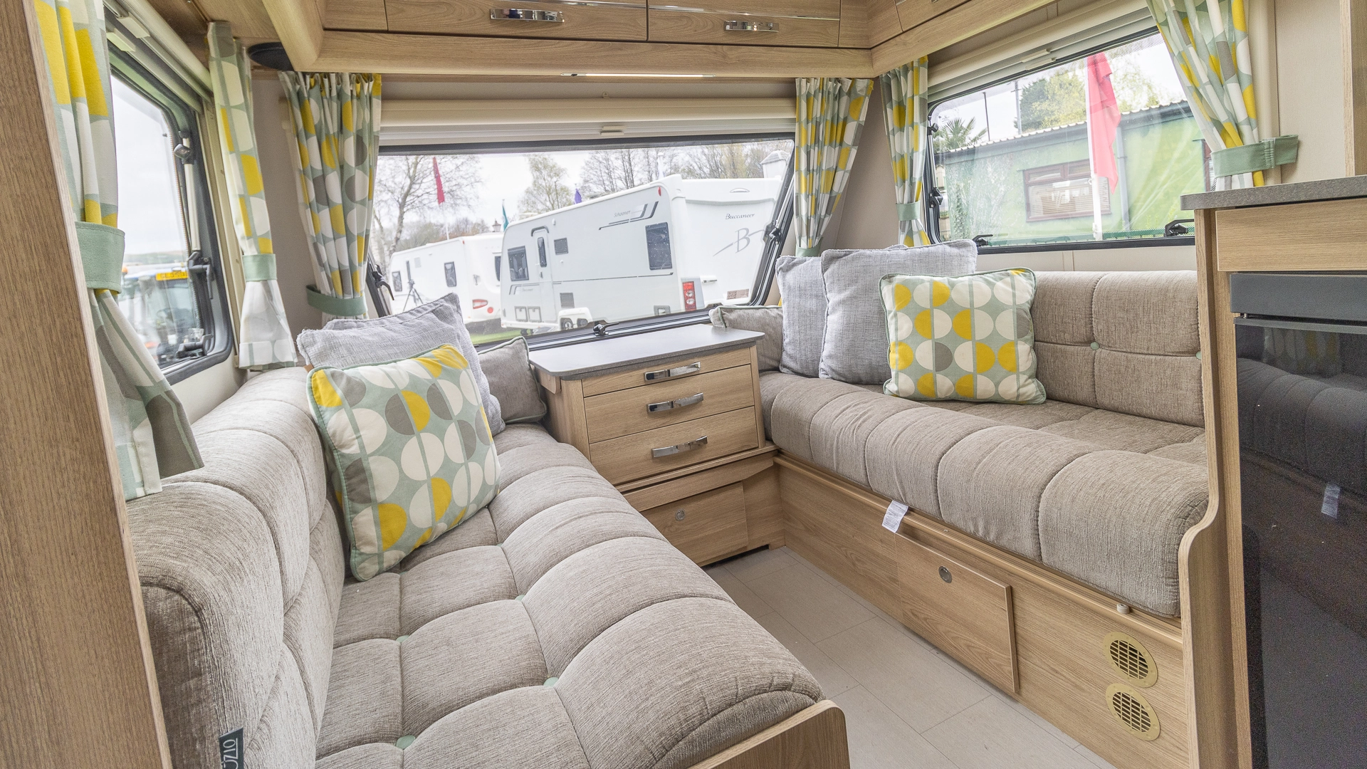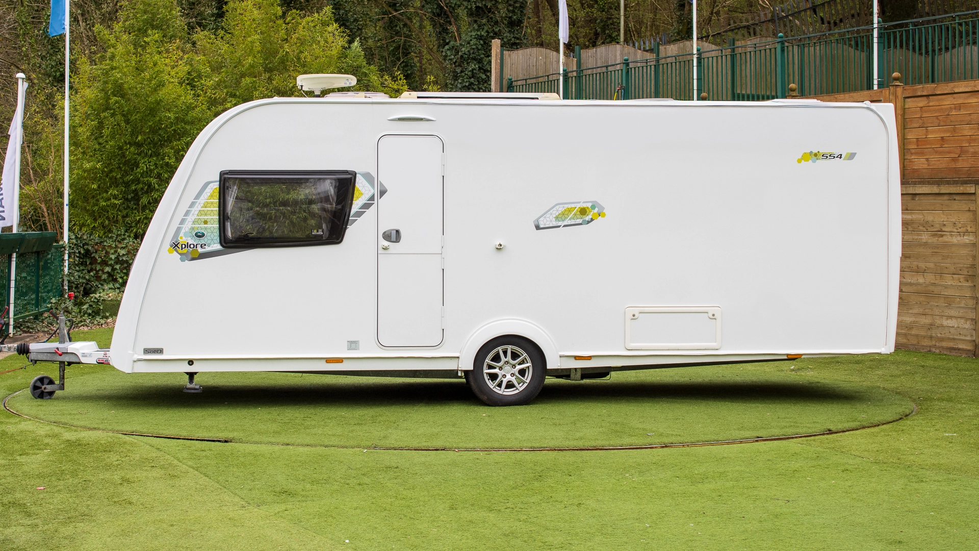 Xplore 554 2019 – Lightweight Touring with Smart, Practical Comfort The 2019 Xplore 554 is a clever 4-berth caravan that brings together a popular family-friendly layout with a lighter, easier-to-tow design. It features a transverse island bed, front lounge conversion and a rear washroom, making it a very practical choice for couples or small families who want comfort without moving up to a heavier caravan. At the heart of the caravan is its well-equipped kitchen, which includes a gas hob, oven and grill, microwave and a fridge, along with very usable worktop space and impressive storage. That makes it easy to prepare proper meals on tour rather than relying on quick snacks, and the generous cupboard and drawer space helps keep everything tidy and organised. The bright front lounge forms the parallel-seating bed area, giving you a comfortable and sociable space to relax during the day before converting into an extra double bed at night. It’s a great layout because it keeps the caravan feeling open and airy while still giving you flexible sleeping space when needed. To the rear, the island bed is one of the Xplore 554’s standout features. The retractable design helps create more floor space when you need to move around, while still giving you the comfort and convenience of a fixed bed setup. That means less effort at bedtime and a much more relaxing touring experience overall. What really makes the Xplore 554 appealing is how it delivers this sought-after layout in a lightweight, compact package. It is widely noted as one of the lighter caravans in this style, which makes towing more manageable and opens it up to a wider range of tow cars. The Xplore 554 2019 is a superb choice for anyone wanting a modern fixed-bed layout, good kitchen facilities and everyday touring practicality in a caravan that remains easy to tow and easy to enjoy.