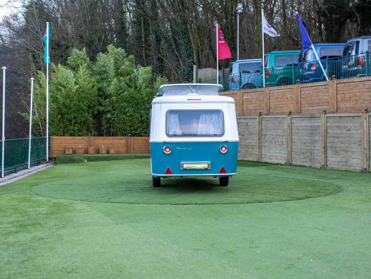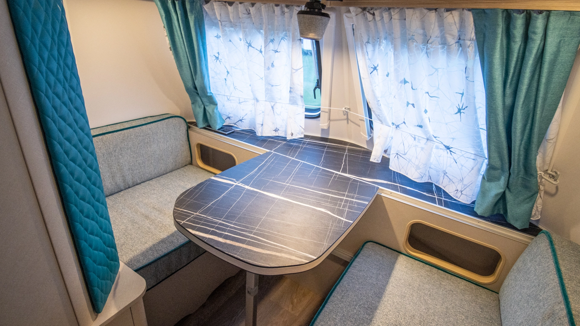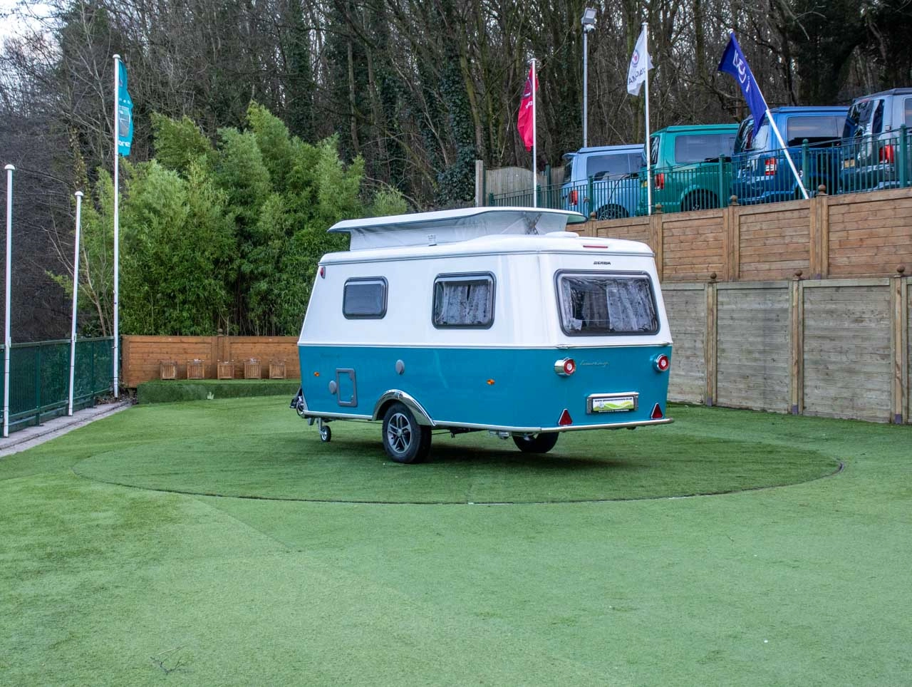 Eriba Touring 430 Urban (Harbour Blue) 2024 - Retro Cool Meets Modern Comfort With its standout Harbour Blue and White two-tone exterior, the Eriba Touring 430 Urban delivers the perfect mix of personality and practicality