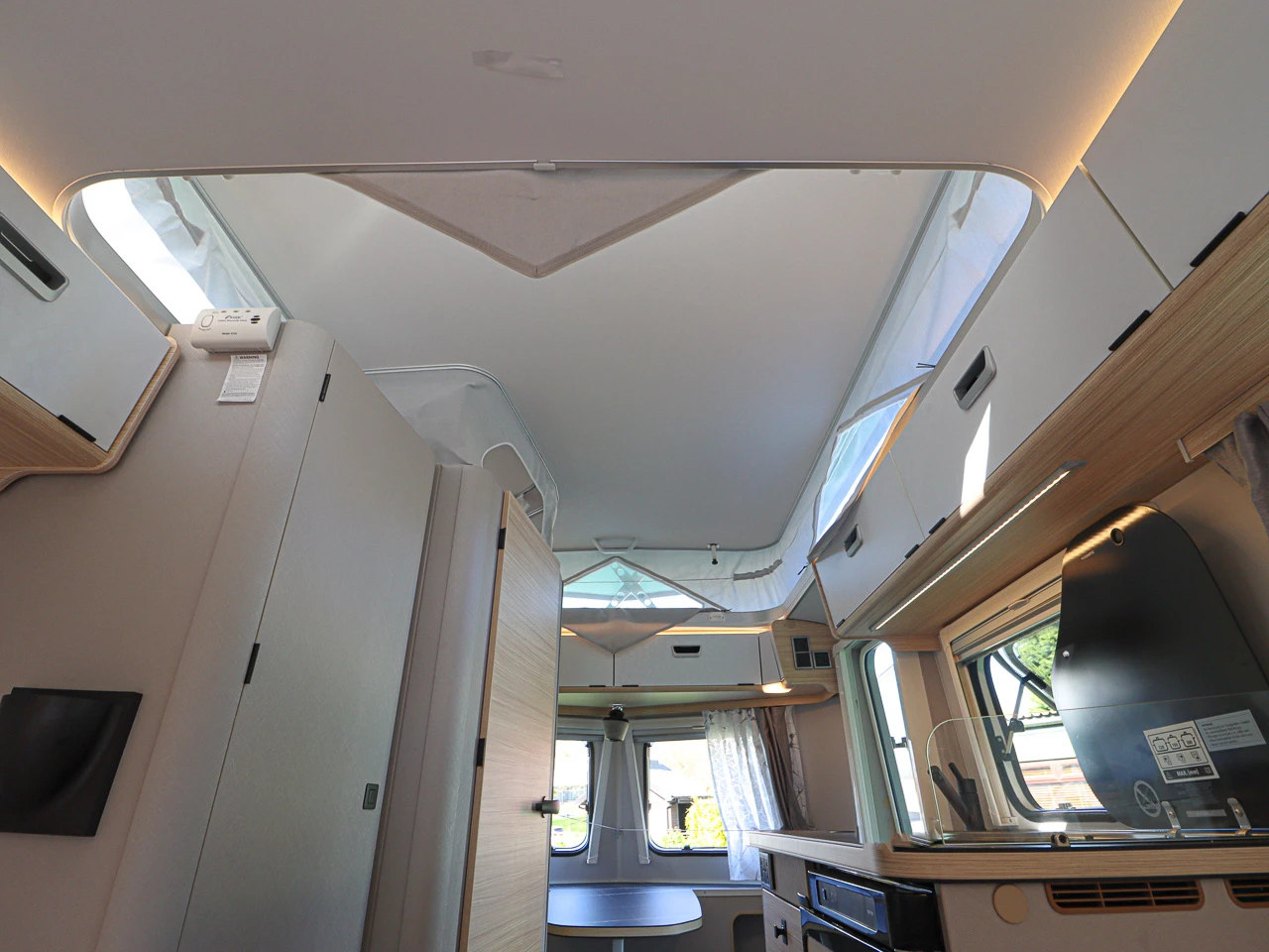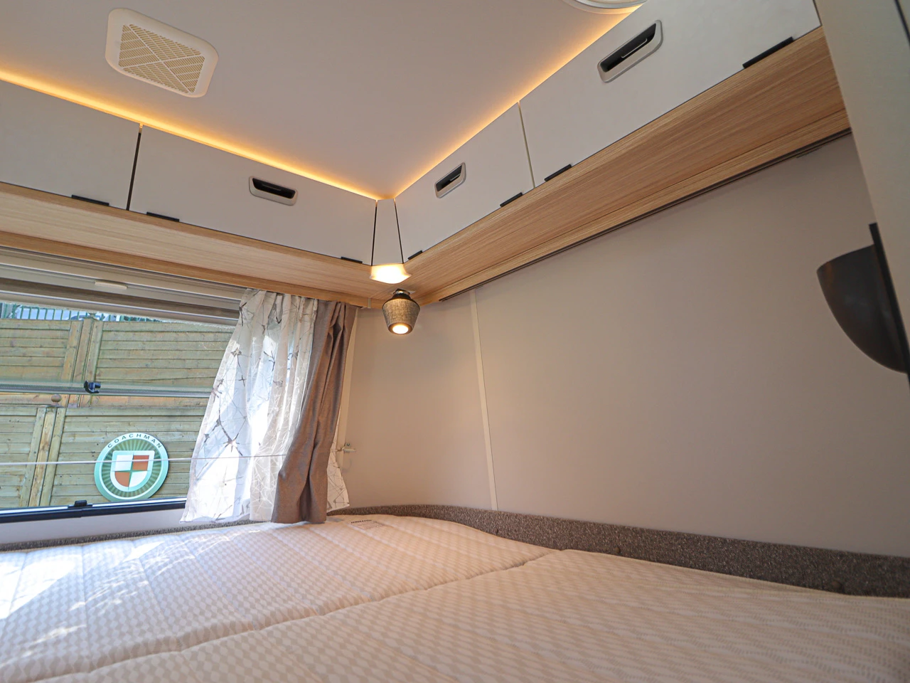 Urban Package: Exclusive white/silver exterior finish, Ambient XL lighting, 2 additional lights, 2 pillows with pillowcases, Tindari furniture finish, and Memphis fabric combination for the Urban line