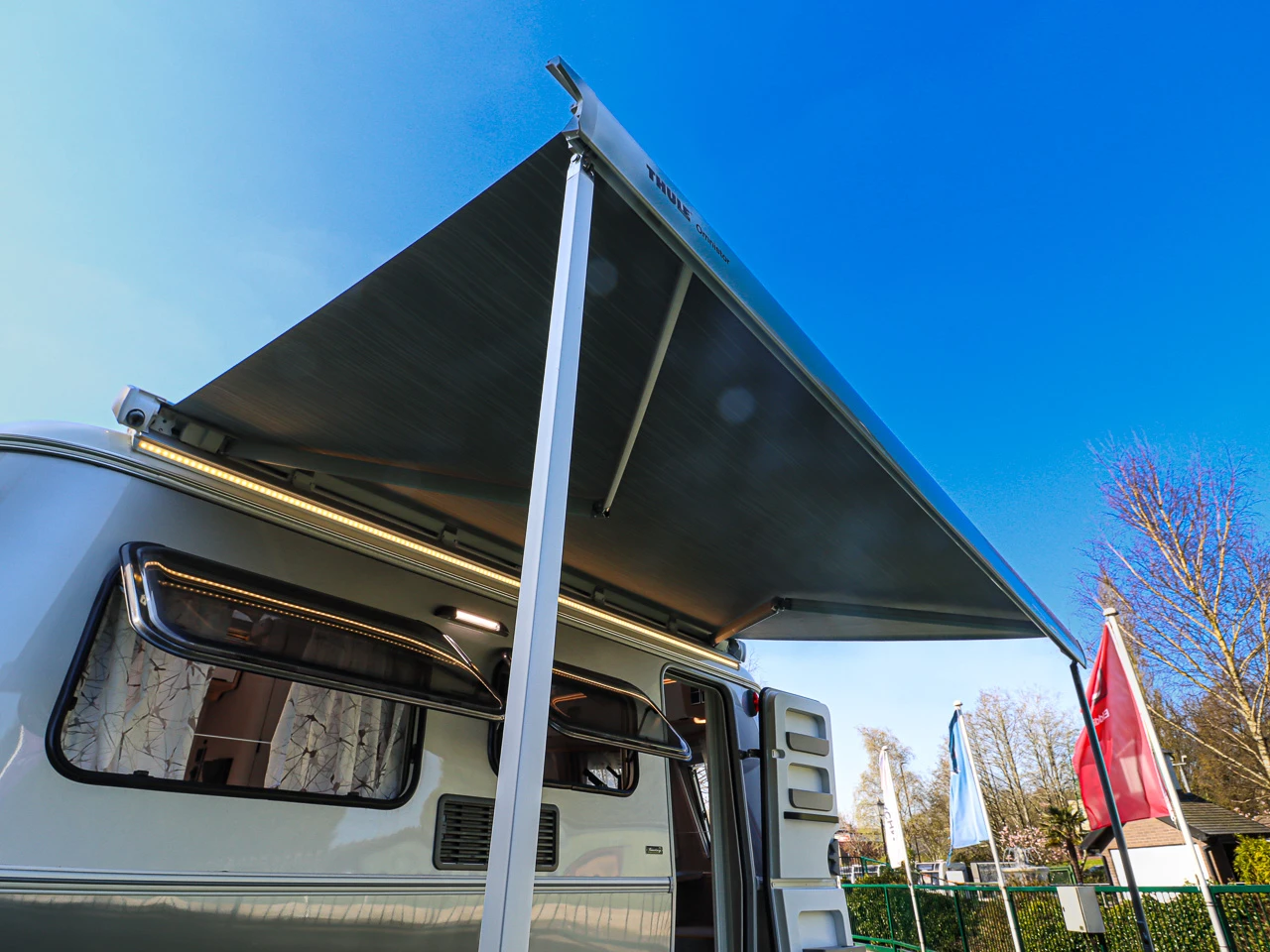 Thule Omnistor 6300 roof awning with integrated LED lighting, 280 x 200 cm, white housing - expandable with optional privacy panels and weather protection