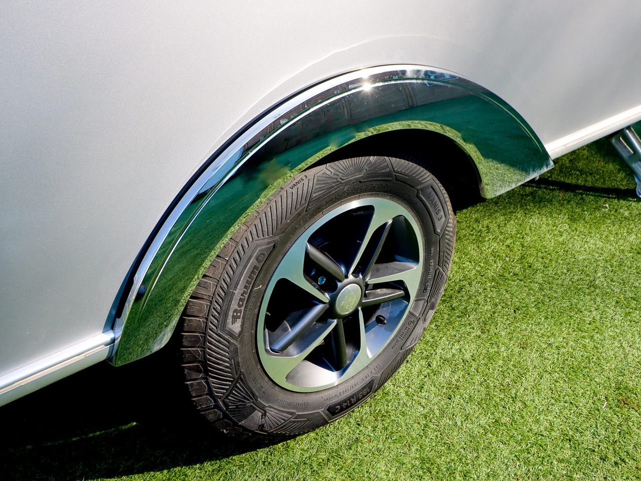 Design Package 1: Stone guard protection, chrome exterior detailing, anthracite ERIBA 5-star double spoke alloy rims, stainless steel bumper, and retro-style rear lights