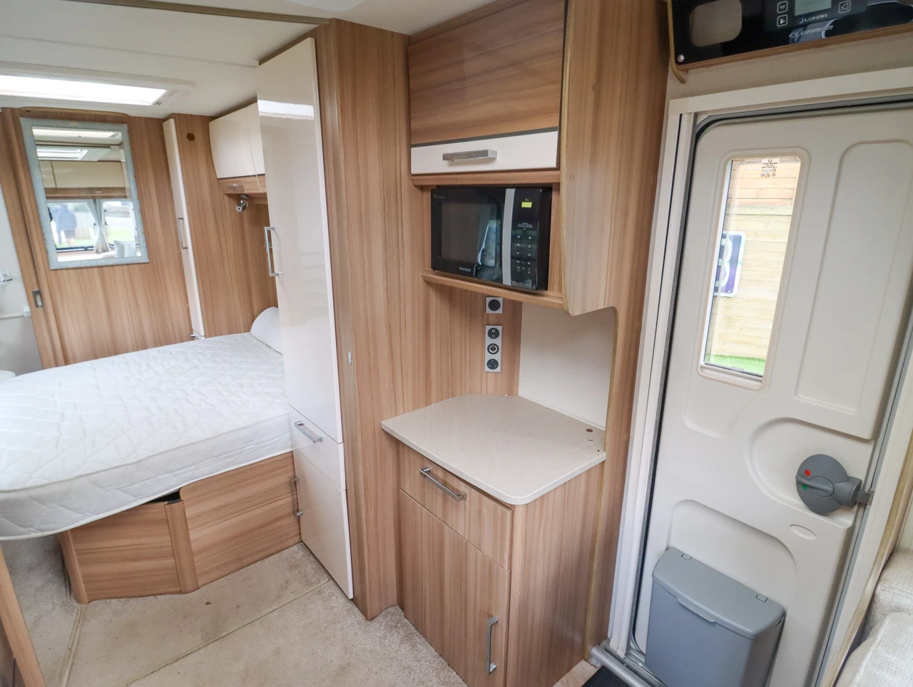 Well-equipped kitchen: Complete with a dual-fuel hob, oven, grill, microwave and fridge-freezer, the kitchen provides everything you need to prepare full meals on the go. Ample worktop space and clever storage make cooking both easy and enjoyable.