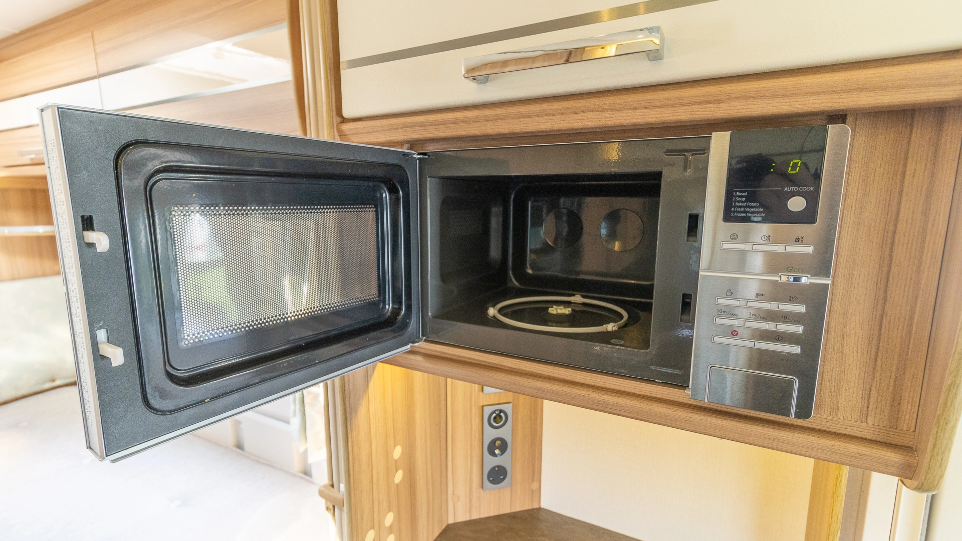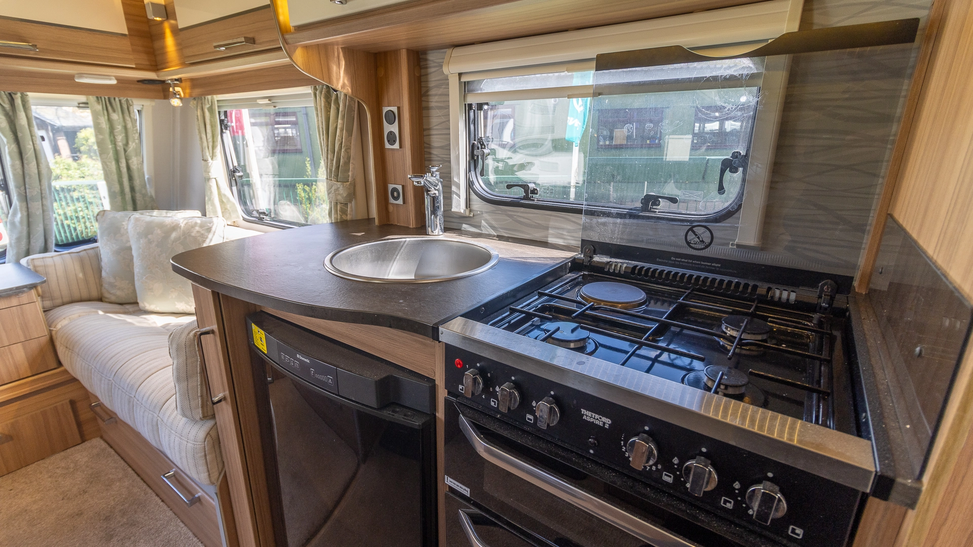 The kitchen comes with a microwave, hob, oven and grill, fridge‑freezer and plenty of worktop space, allowing you to prepare full meals on site.