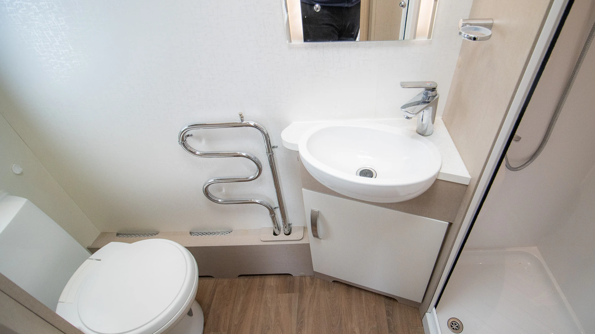 Compact End Washroom: The end washroom is cleverly designed to maximise space without compromising on functionality, offering all the amenities you need for a comfortable stay