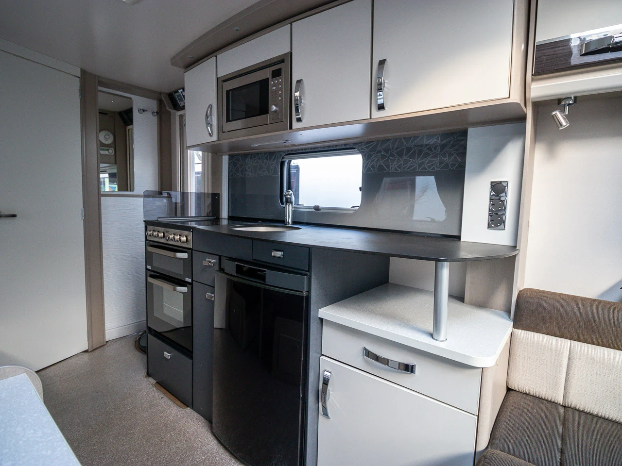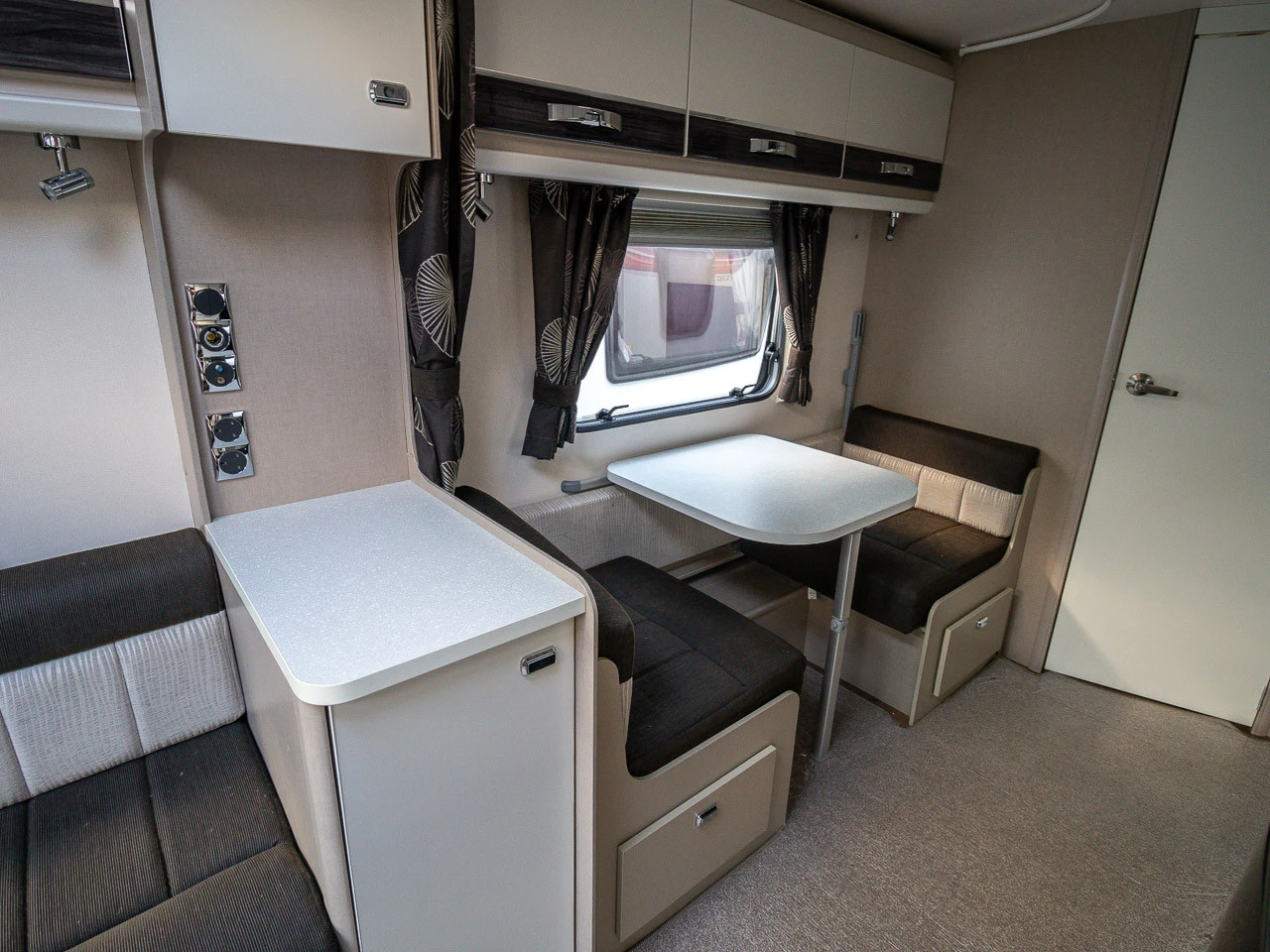 Weighing in at an unladen weight of 1434 and a maximum permissible weight of 1585, this caravan is both lightweight and robust