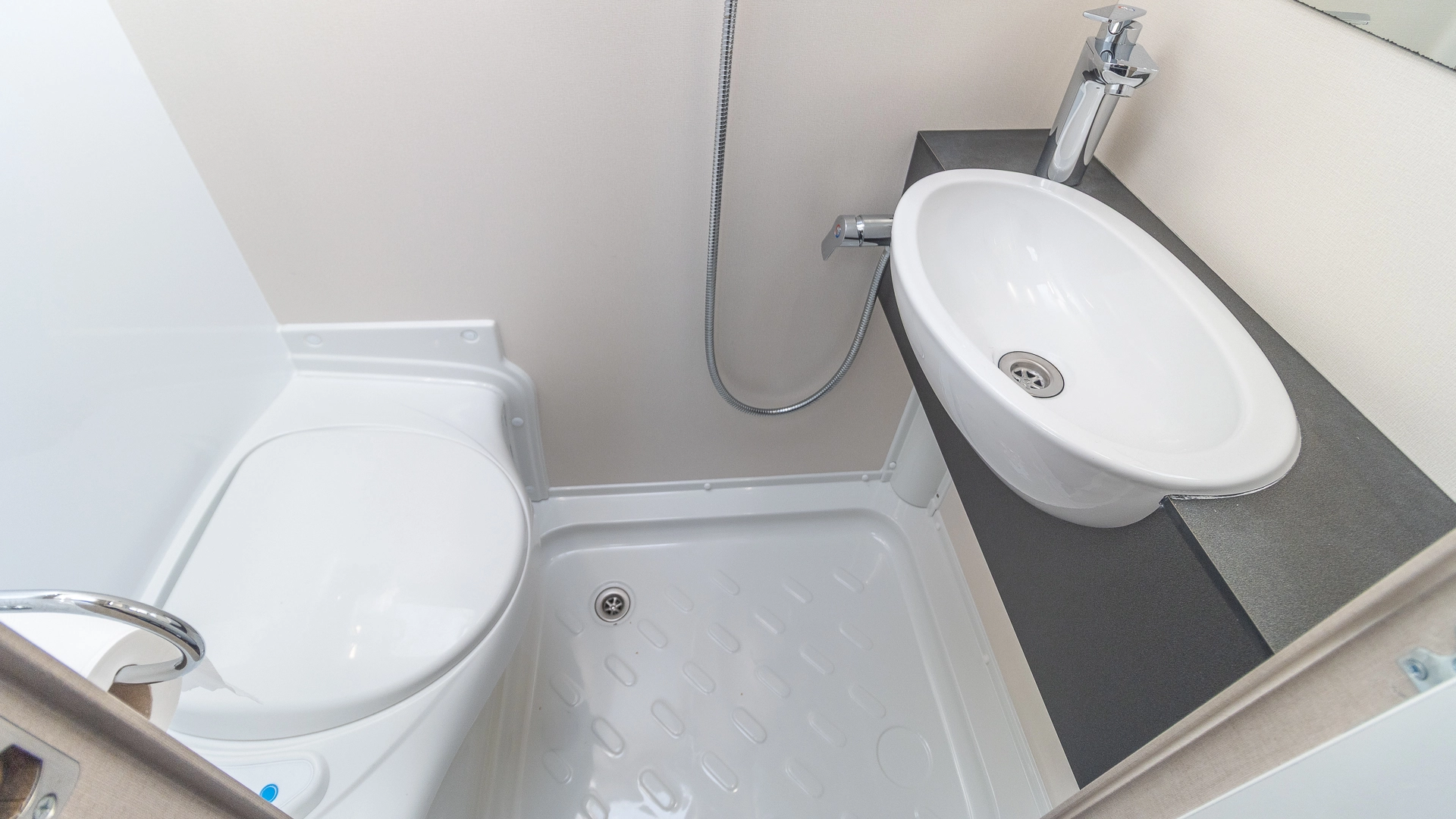 The external shower point adds a practical touch, especially after beach days or muddy walks, allowing to rinse off yourself or your gear without making a mess indoors.