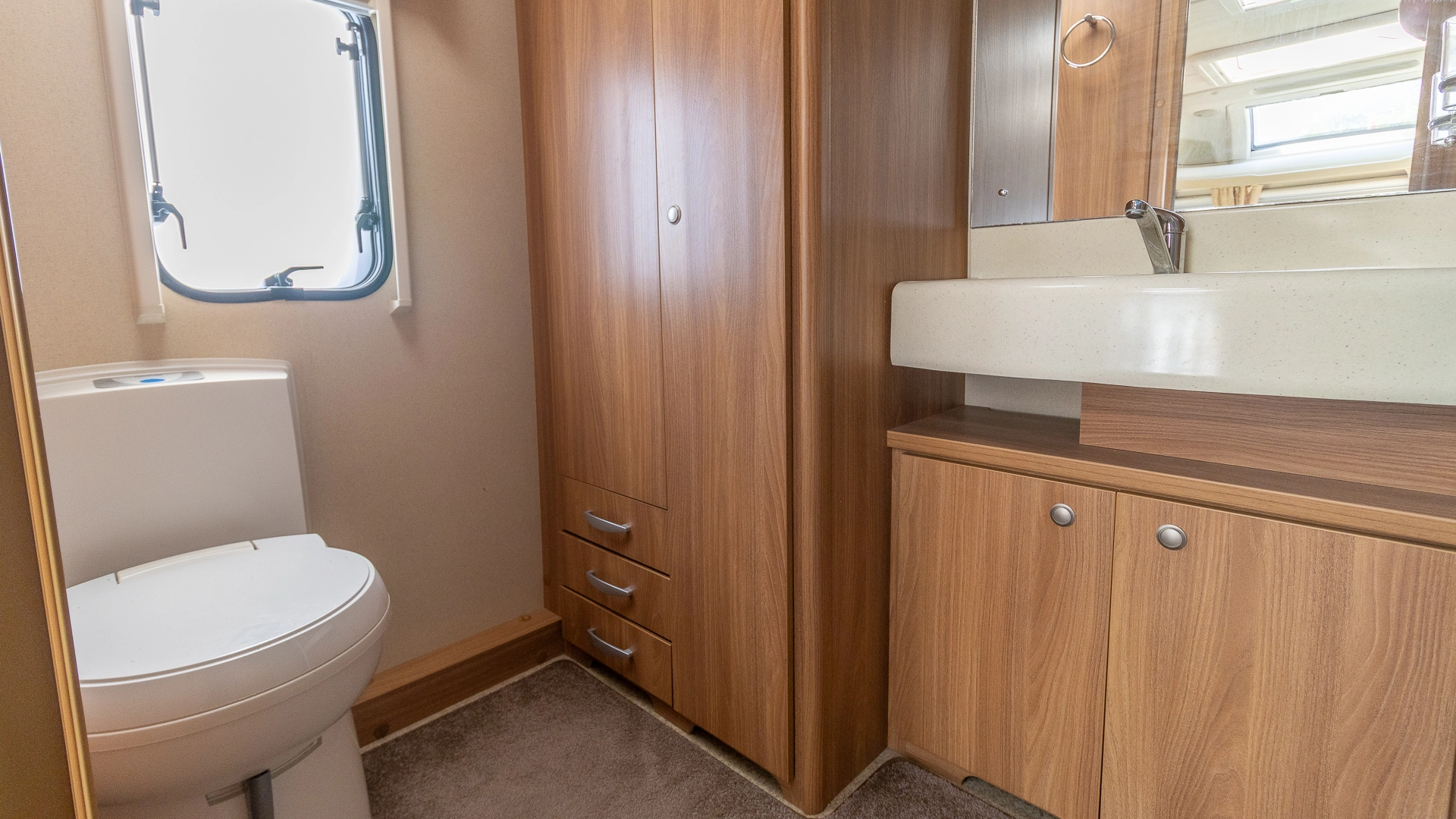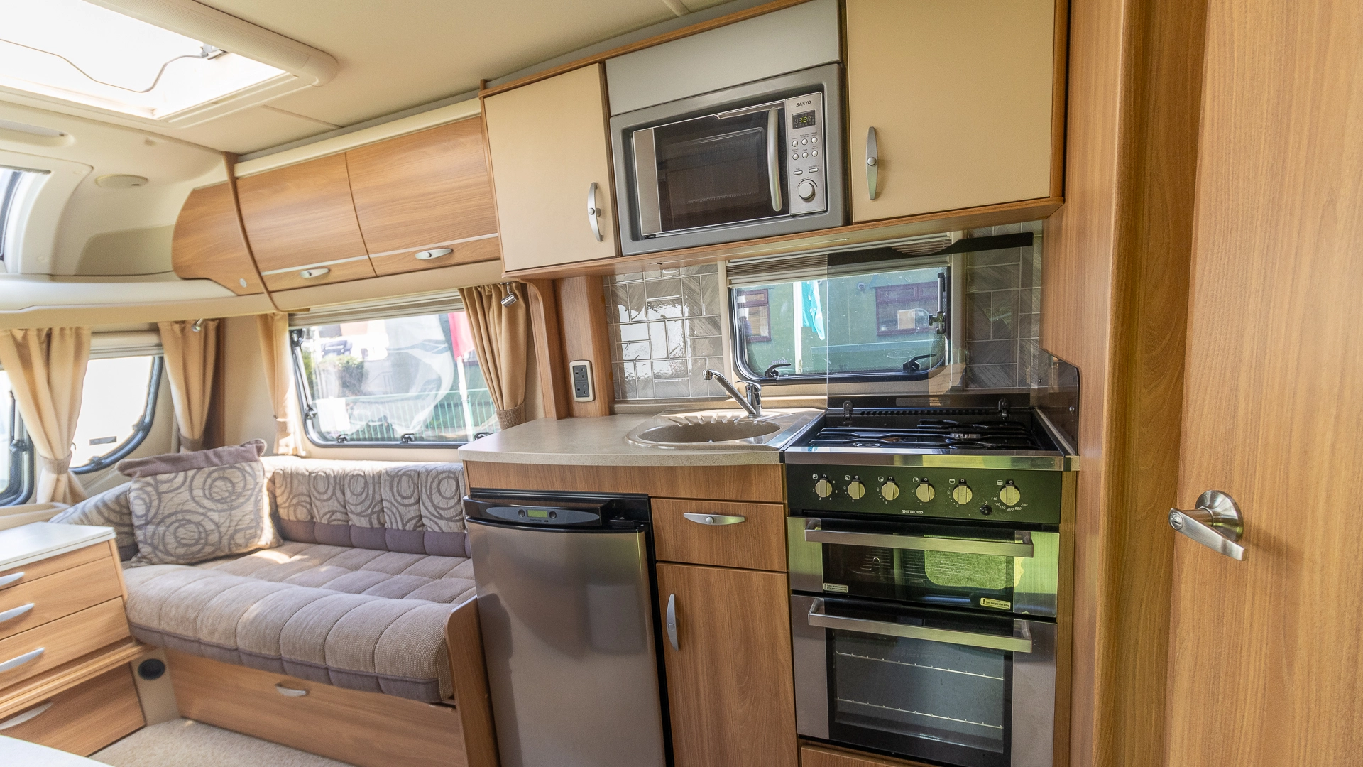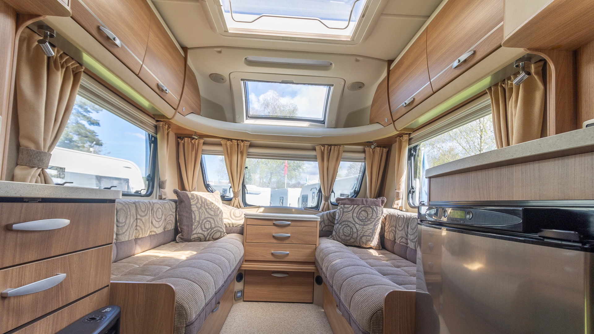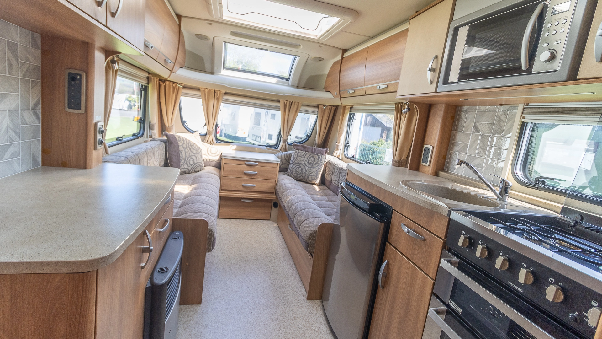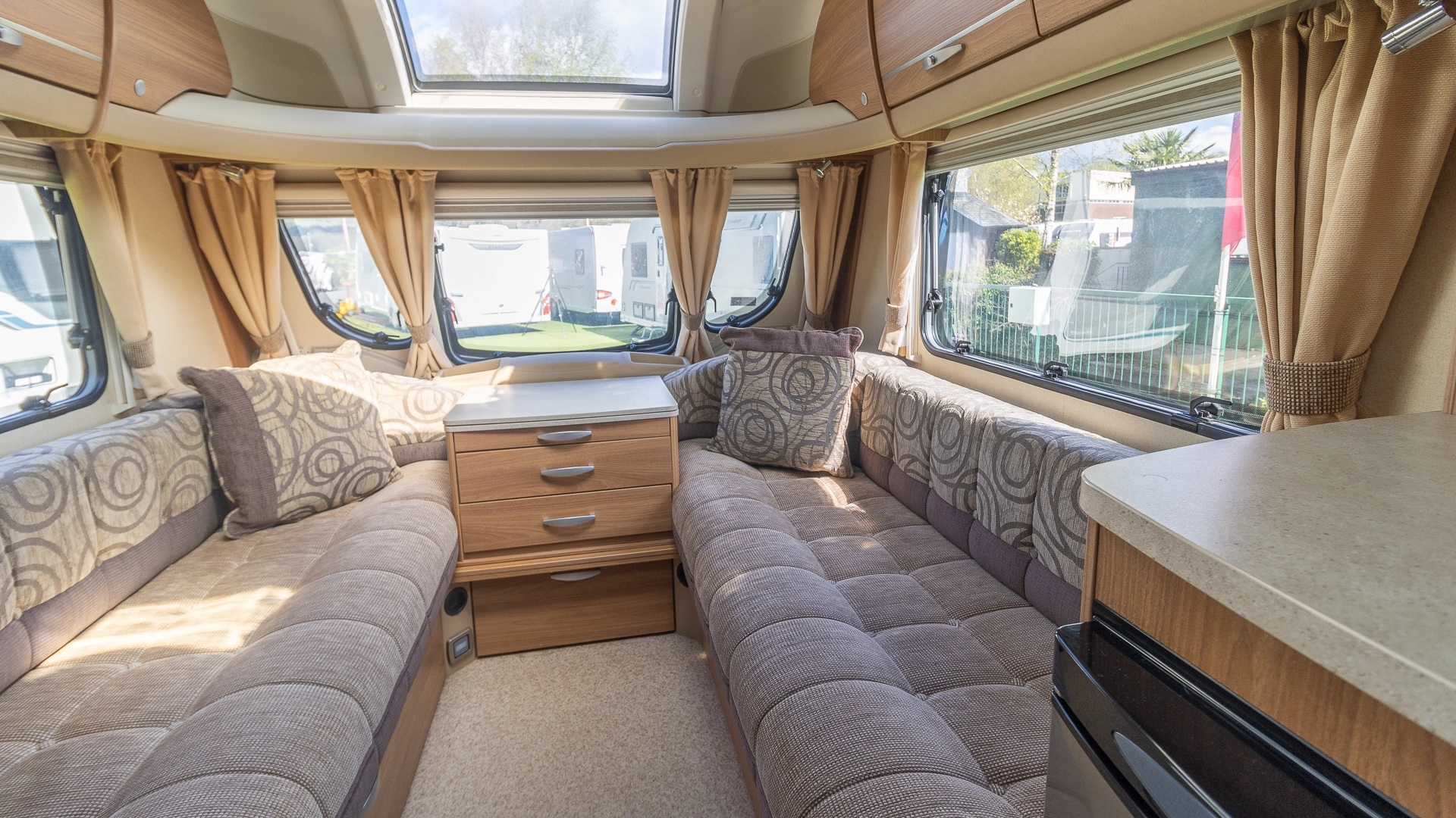 This caravan features a more compact usage of space, making the caravan easier to both tow on long journeys and navigate in narrower spaces on location.