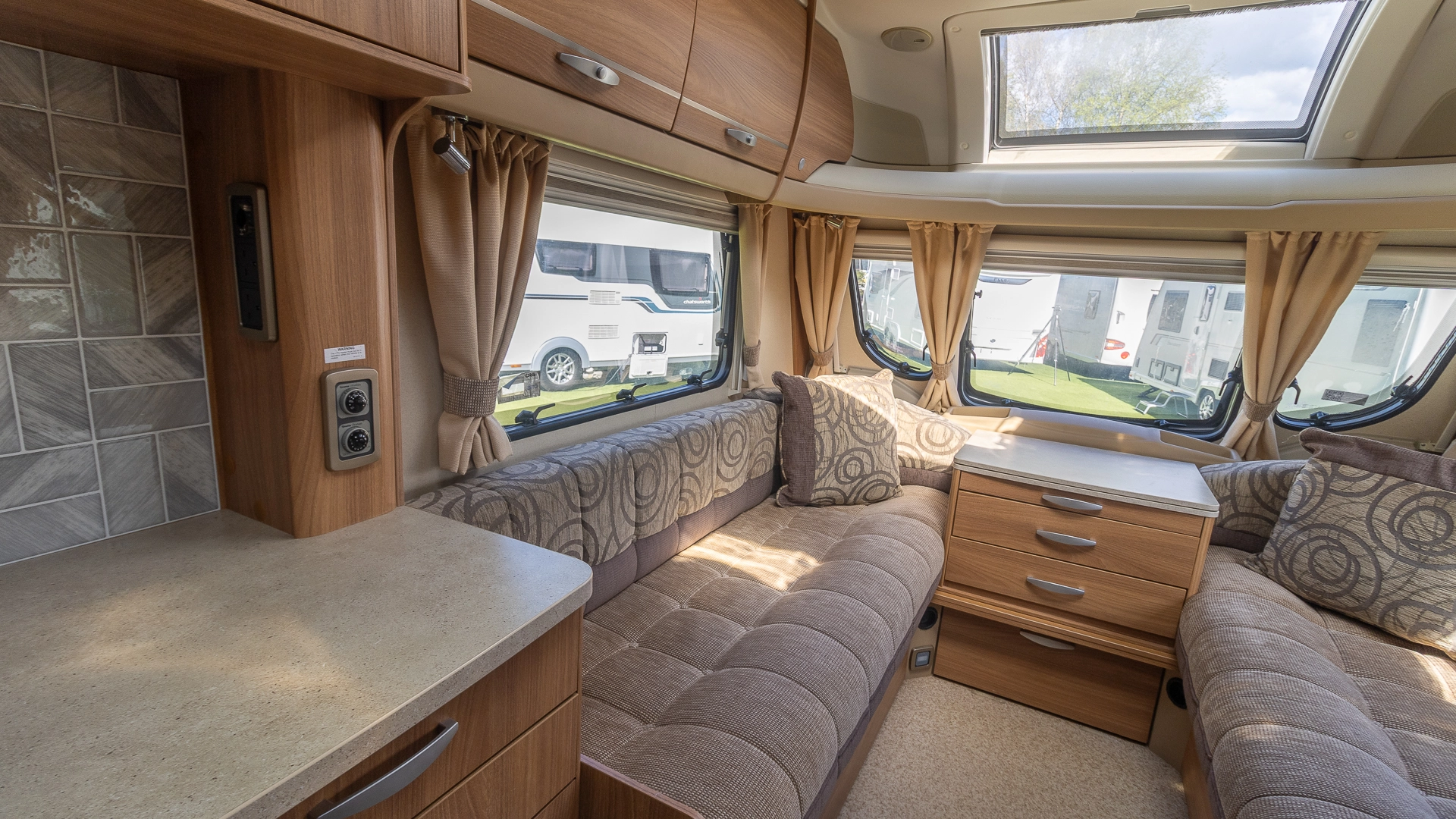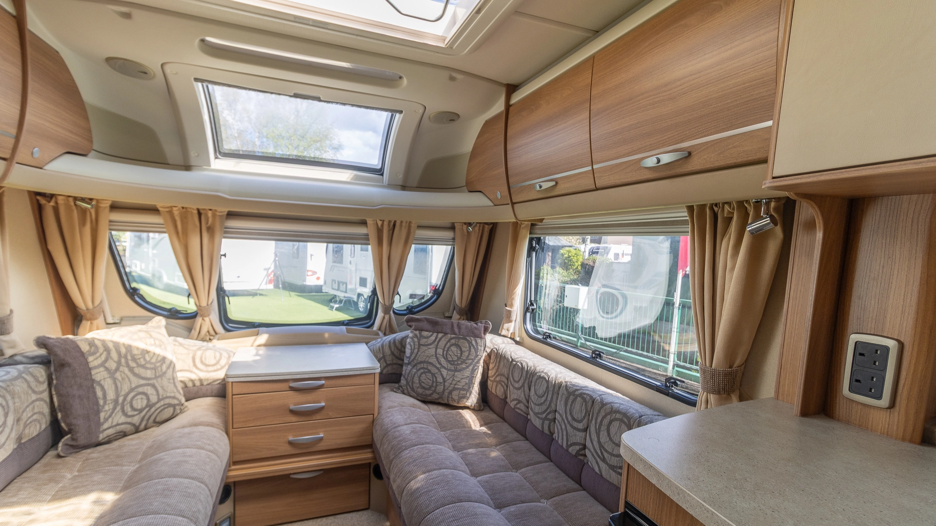 An external 240v mains socket gives you convenient power outside the caravan, whether you want to power outdoor lights or a kettle for tea under the awning.