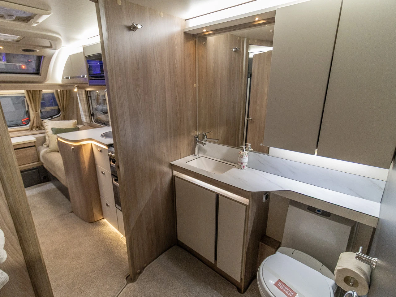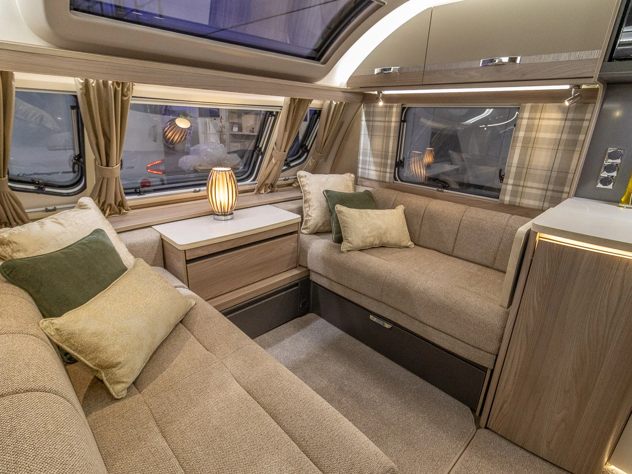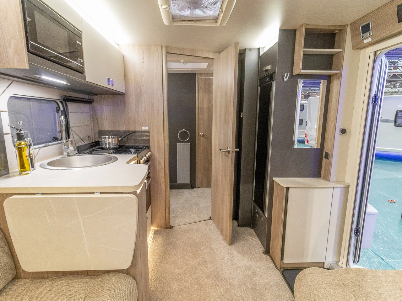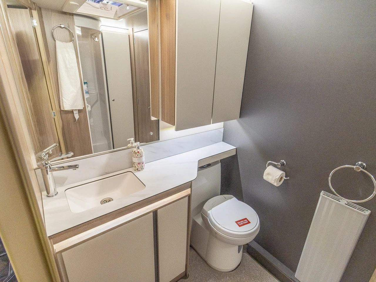 Experience the ultimate in leisure travel with the Swift Challenger Grande 635 Exclusive 2025, a caravan designed for those who crave adventure without compromising on luxury. This stunning twin-axle model effortlessly accommodates up to four guests, offering a spacious end bedroom with a transverse island bed that guarantees restful nights under the stars. The heart of this caravan features a parallel sofa lounge, perfect for cosy gatherings or relaxing after a day of exploration. Equipped with modern amenities, including a microwave, fridge, and oven, culinary enthusiasts will delight in preparing meals on the go. Enjoy the convenience of an integrated shower and cassette toilet, while thoughtful touches like blinds and fly screens enhance comfort. With its sleek GRP side panels and alloy wheels, this caravan not only promises style but also safety with an anti-theft tracker and hitch head stabiliser. A fantastic opportunity to embark on unforgettable journeys!