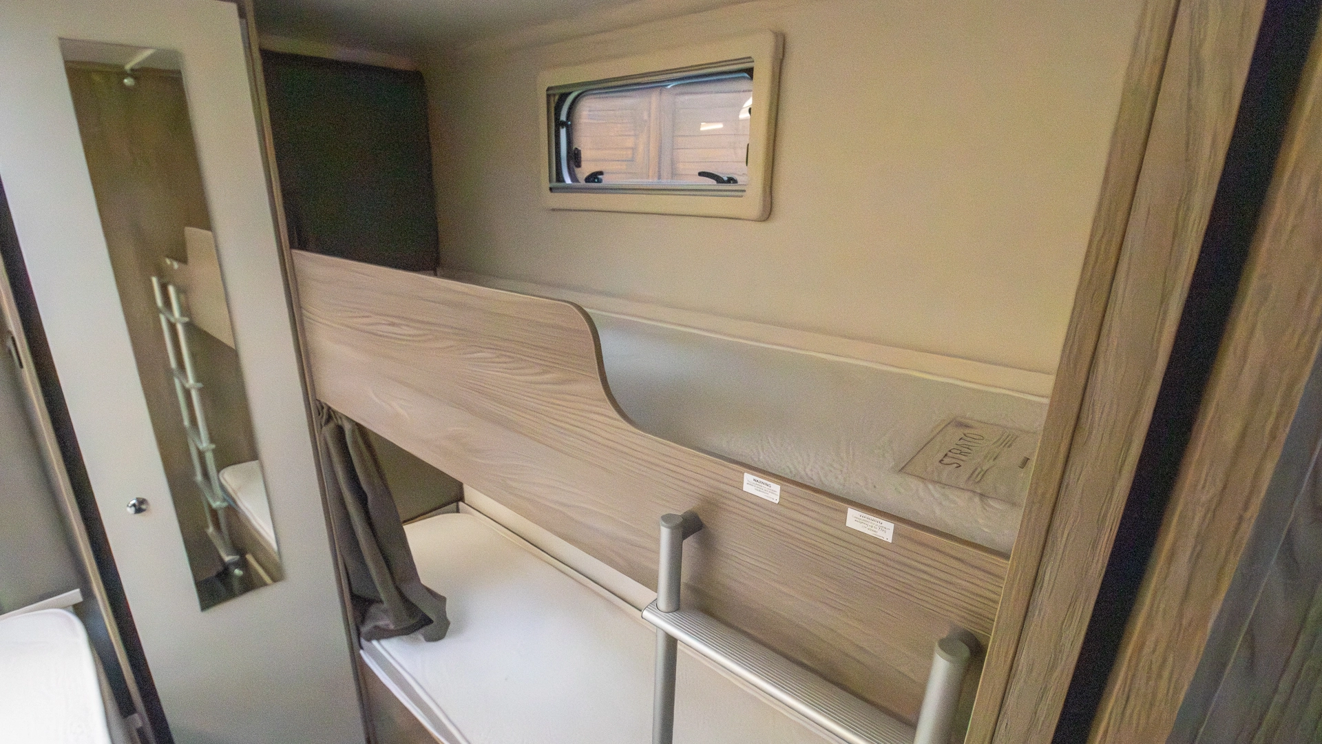 Positioned at the rear of the caravan is a bunk bed, providing additional, convenient sleeping space without the hassle of converting your living area between day and night hours.