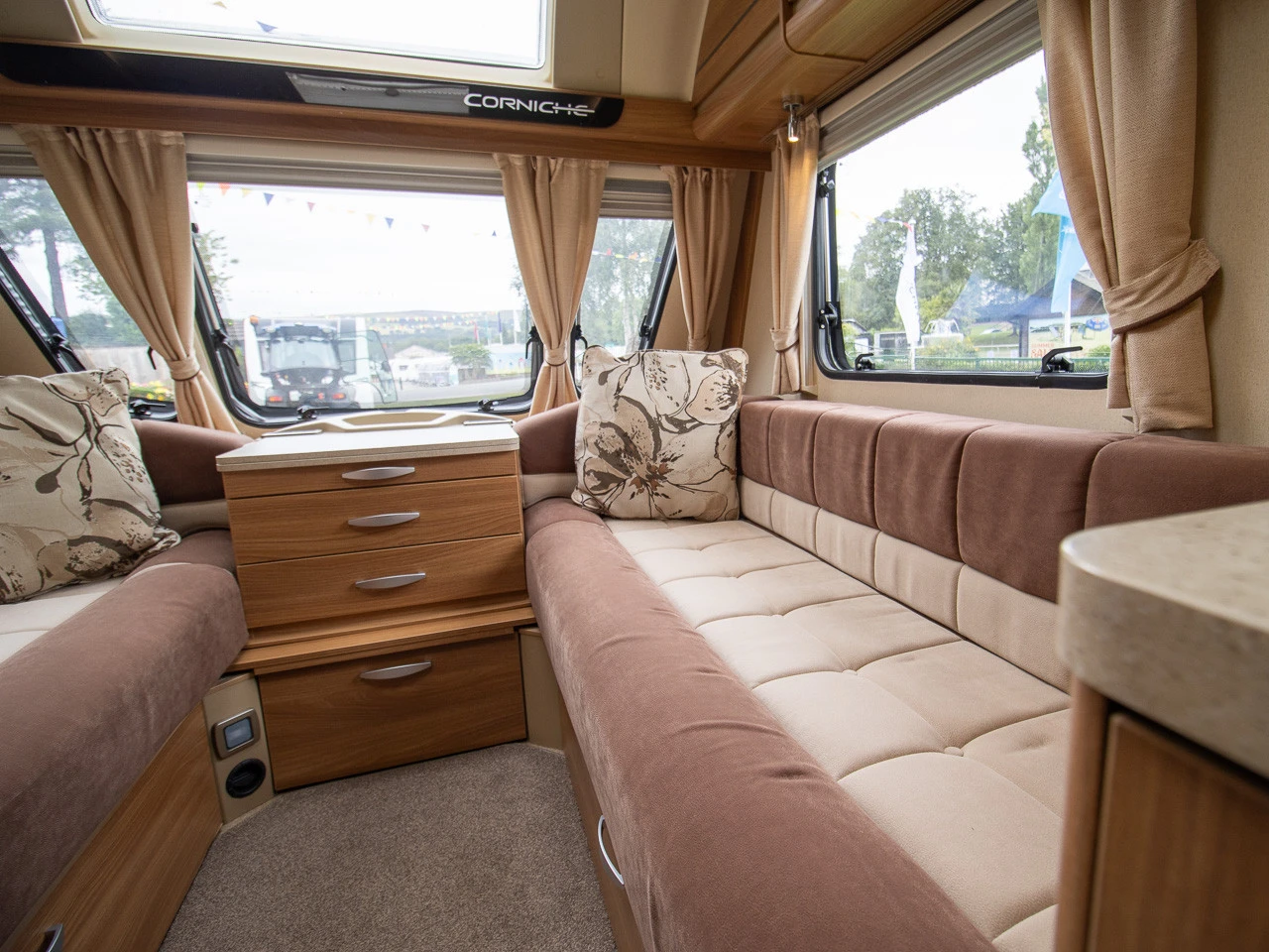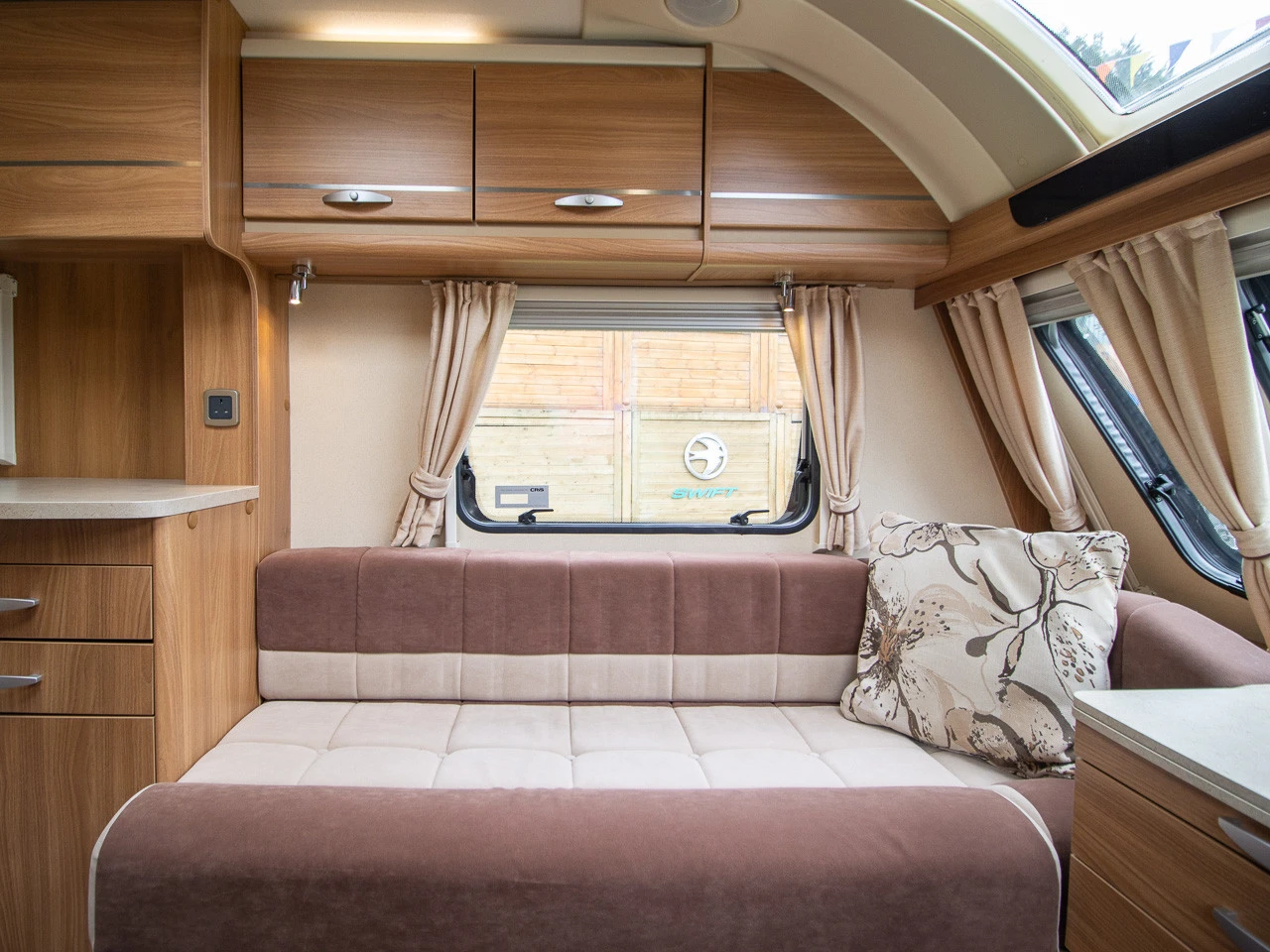 Experience the freedom of adventure with the Swift Corniche 17/4 2013, an epitome of leisure on wheels! This charming caravan, now available at a fantastic sale price of £11,166—saving you £1,400 off the RRP—offers a perfect blend of comfort and practicality. Designed for families or small groups, it accommodates up to four people with ease. Weighing in at an unladen weight of just 1284 kg, this single axle unit ensures smooth towing and effortless handling on the road. The spacious awning size of 9680 provides ample room for outdoor relaxation and entertainment. With a maximum technically permissible laden mass (MTPLM) of 1434 kg, this caravan is ready for all your adventures without compromising on safety or performance. Don't miss the chance to own a well-maintained used caravan that invites spontaneity and exploration—your next journey awaits!
