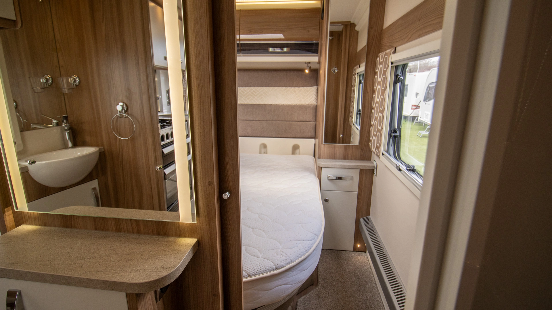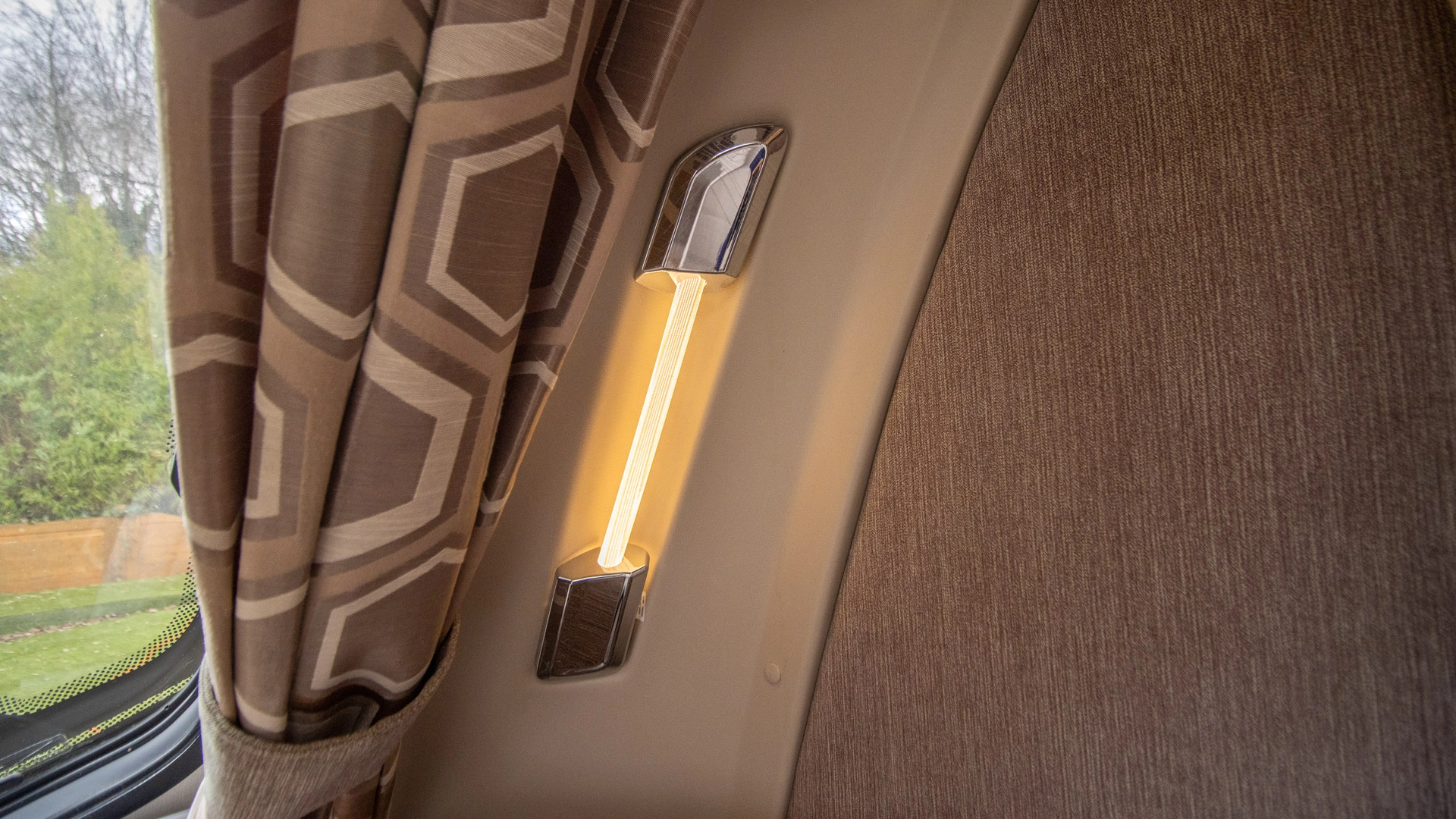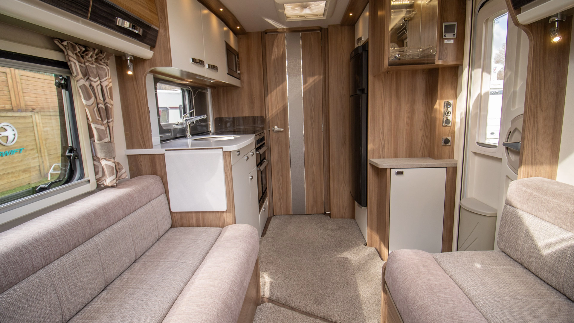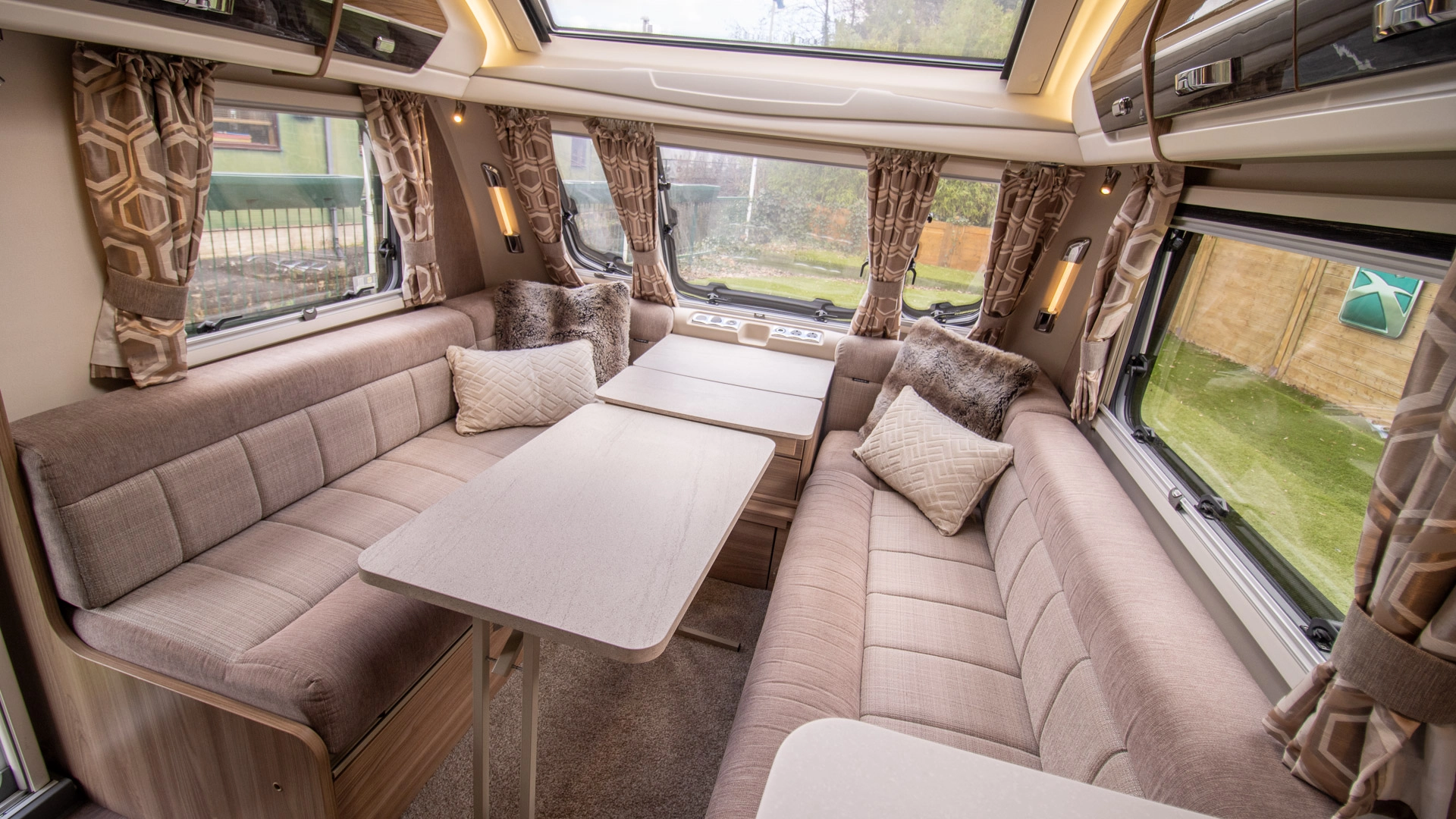 Parallel Seating Bed The front lounge features twin sofas that create a bright, sociable living area during the day, and can convert into a comfortable double bed at night