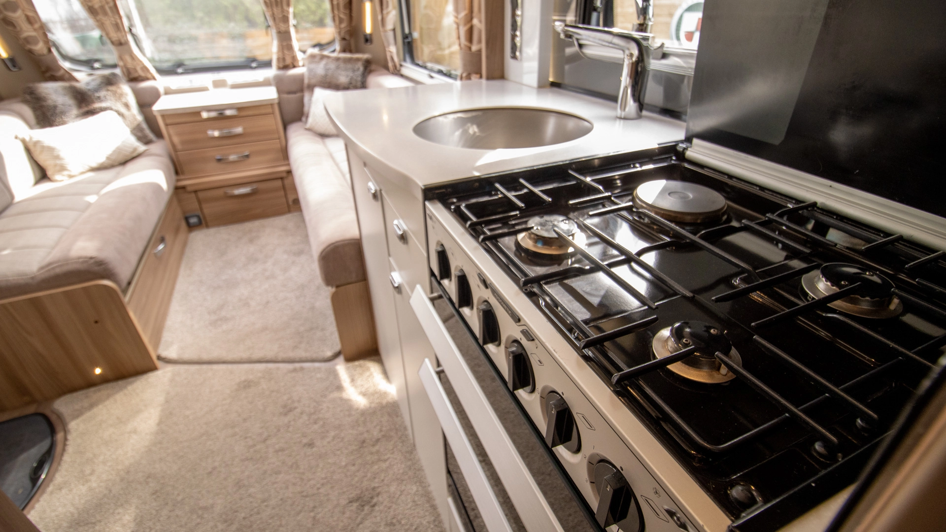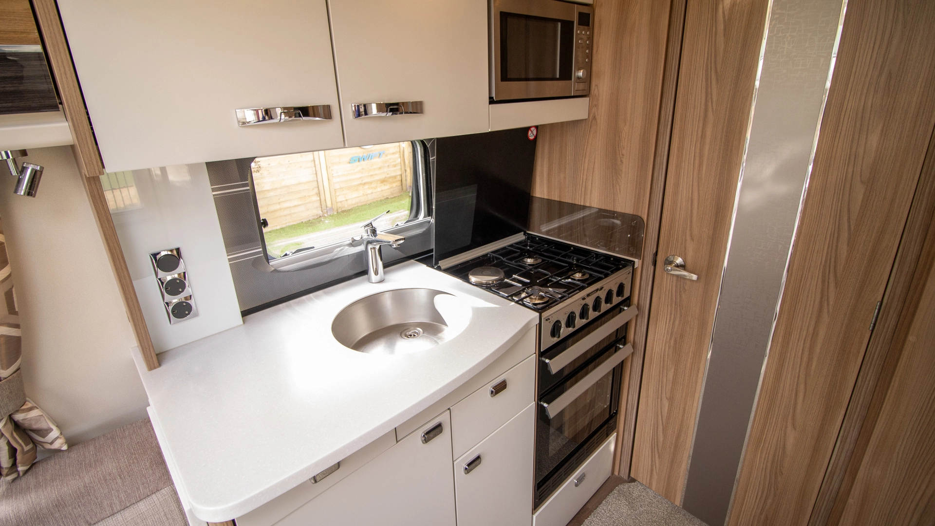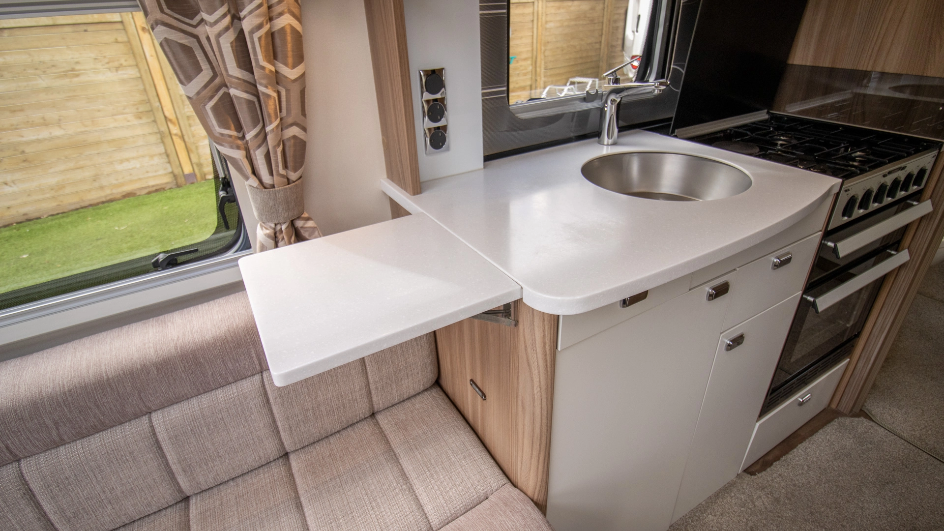 Extractor Fan Fitted above the cooking area, the extractor fan maintains the caravan’s fresh atmosphere by efficiently removing cooking odours from the kitchen