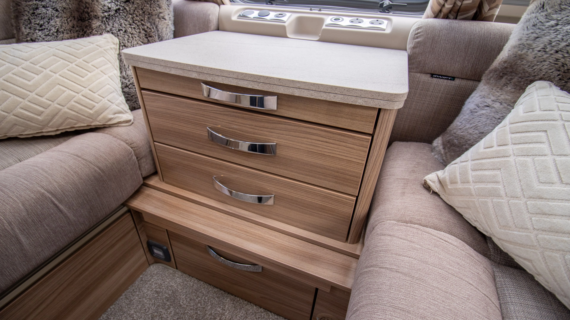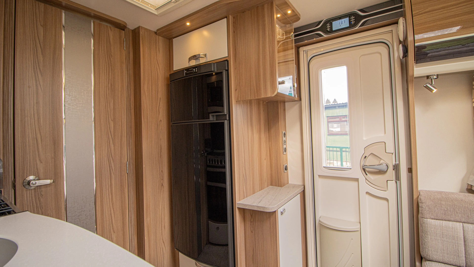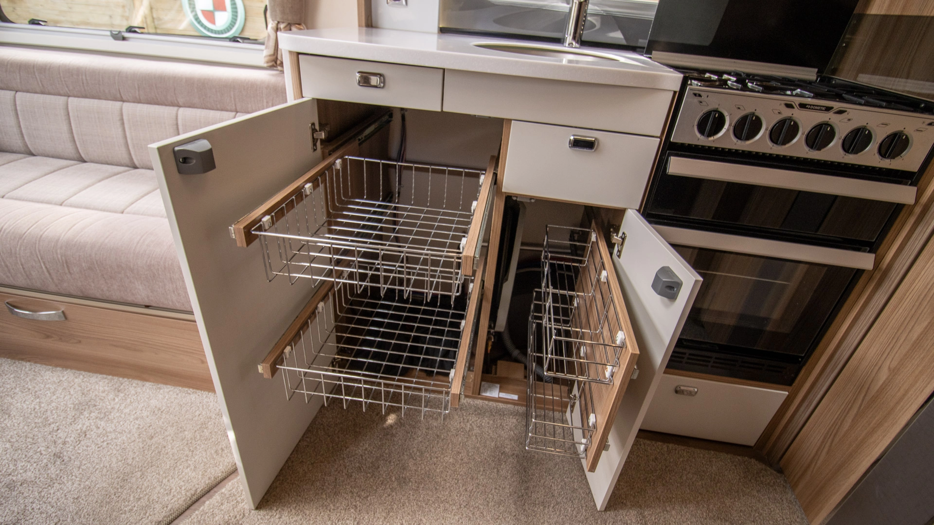 Extractor Fan Fitted above the cooking area, the extractor fan maintains the caravan’s fresh atmosphere by efficiently removing cooking odours from the kitchen