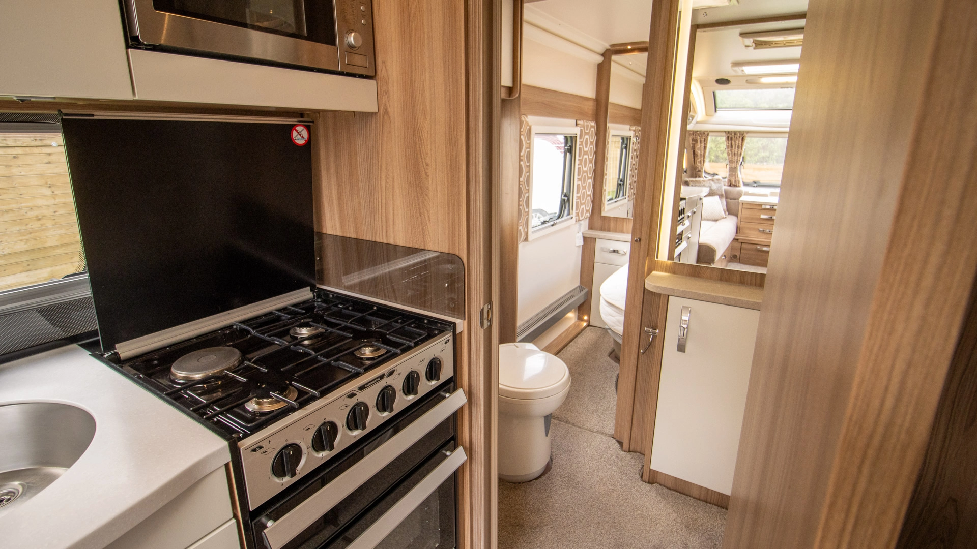 With its full-spec kitchen and extractor fan, flexible living and sleeping areas, wet central heating, centre washroom, durable GRP construction, and external BBQ, shower and mains points, this caravan delivers year-round comfort