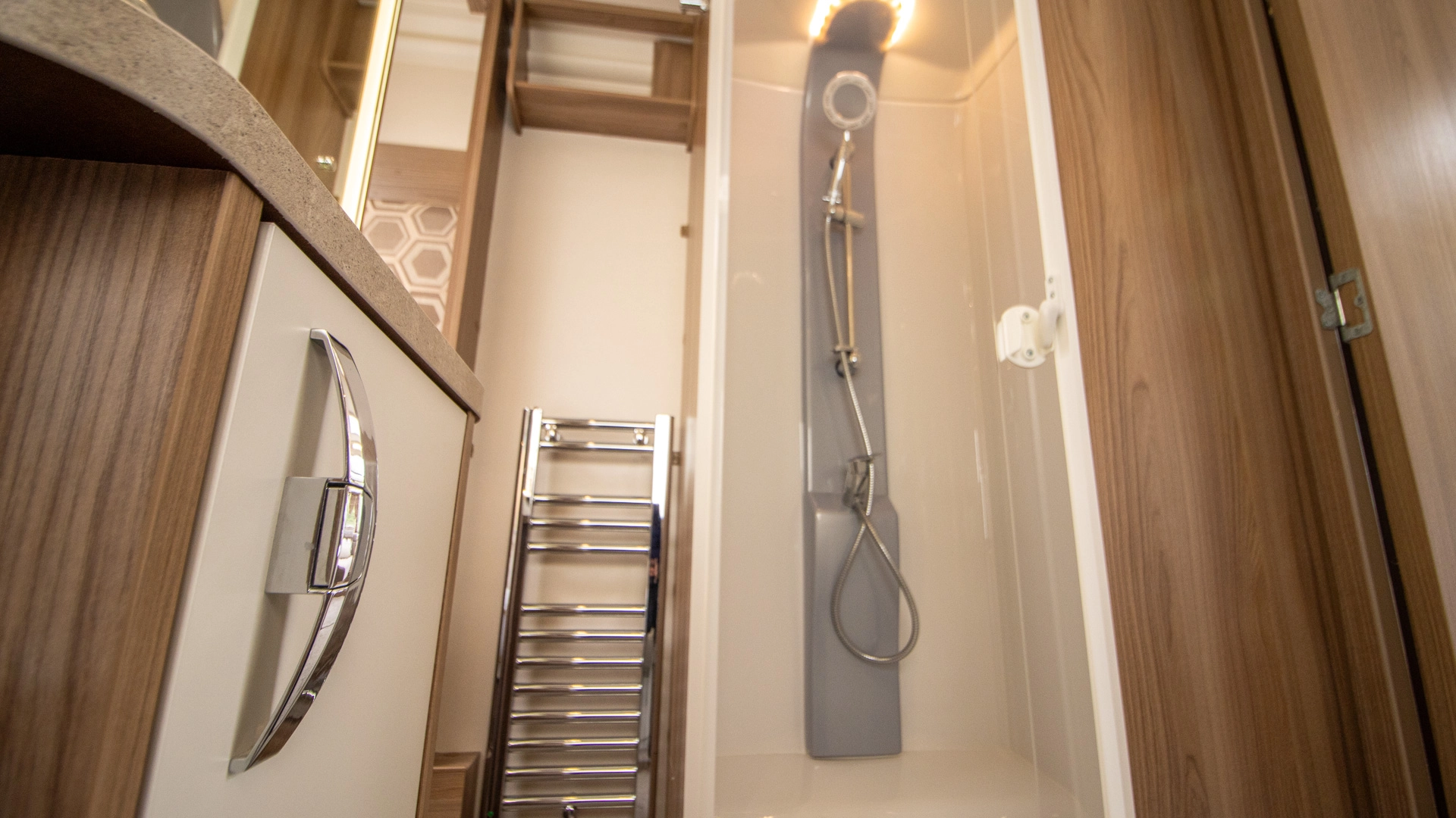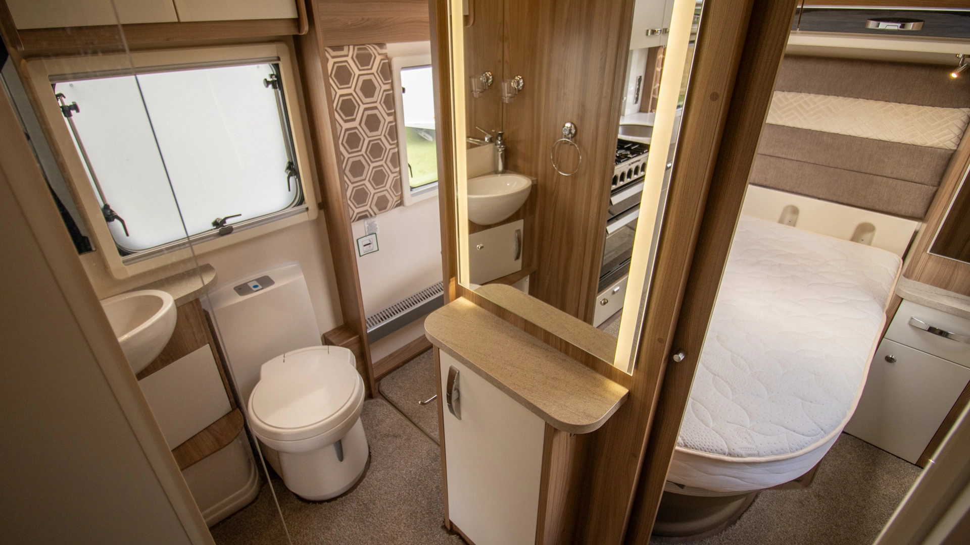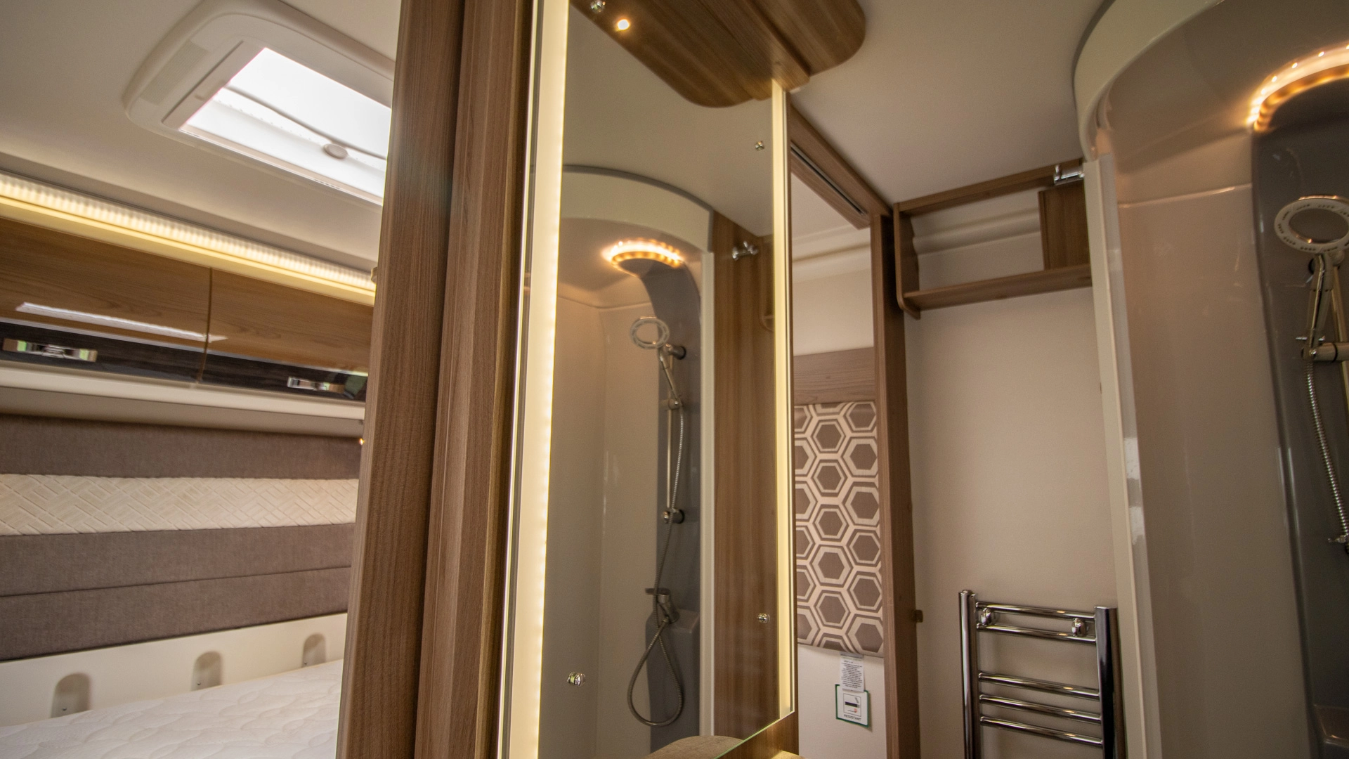 Centre Washroom The centre washroom features a dedicated shower, toilet and basin while separating the living and sleeping areas, offering both convenience and privacy